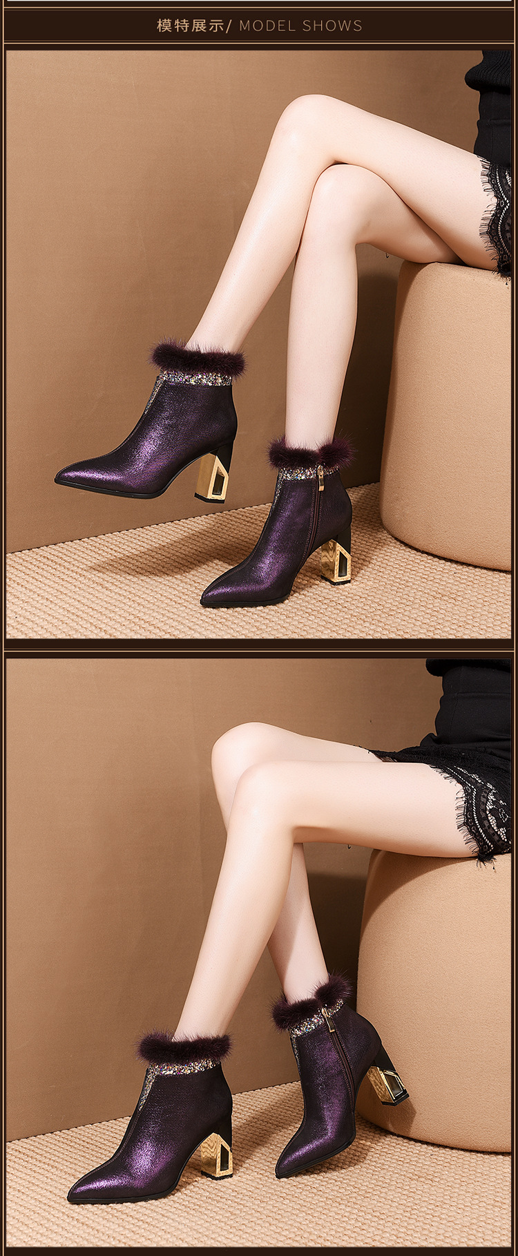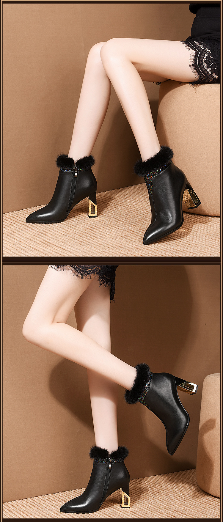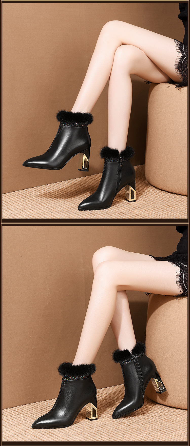SZZ-冬季新款高跟加绒真貂毛真皮女靴