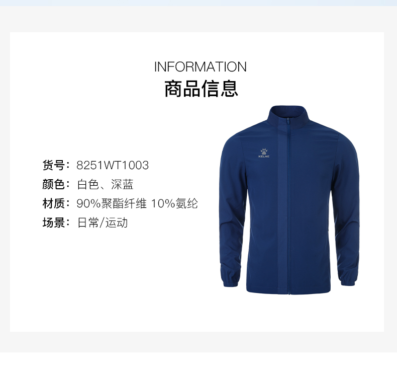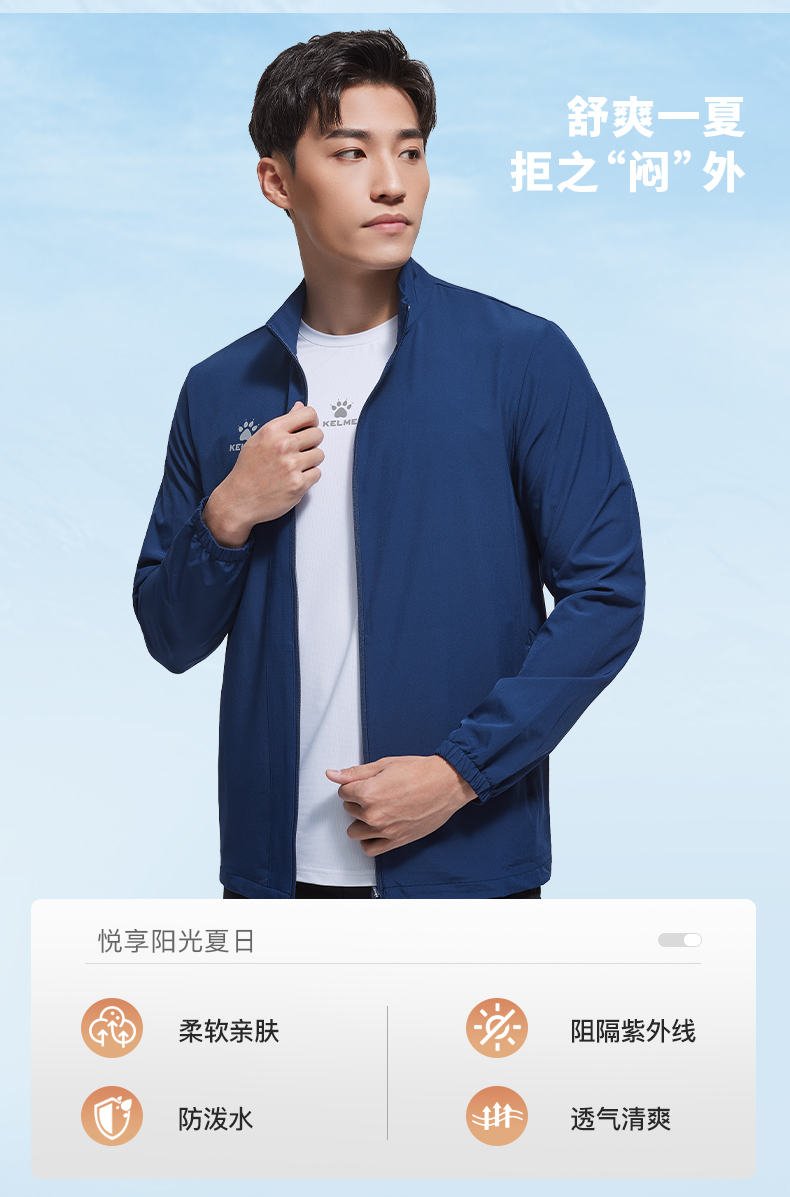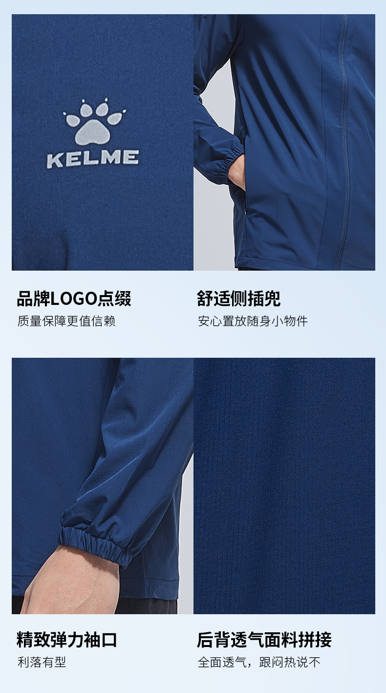 卡尔美训练风衣男2022春新款透气跑步健身防风运动外套开衫