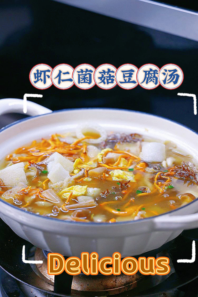 夏日来一口鲜汤 鲜香低卡的虾仁菌菇豆腐汤菌菇鲜甜,汤头鲜美,豆腐嫩滑,吸收了汤汁的煎蛋也格外美味食材。