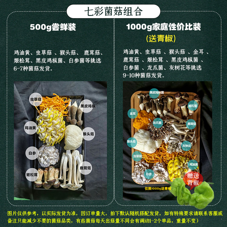 吃菌子的快乐!【新鲜云南七彩菌菇组合】云南人的专属快乐 500g甄选6-7种新鲜菌菇!1000g甄选9-10种新鲜菌菇!刺身、蒸炒涮煮炖,怎么吃都好吃~