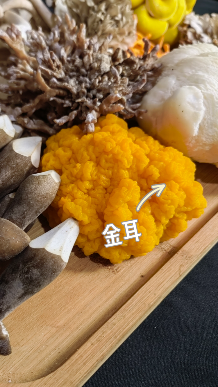 金耳是真菌植物门真菌,颜色金黄,口感嫩滑软糯,胶质丰富,含有丰富脂肪,蛋白质和磷、硫、锰、铁、镁、钙、钾等微量元素,是一种营养滋补品。