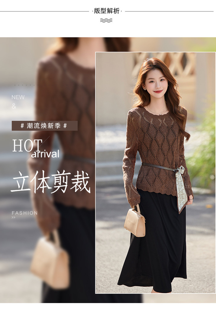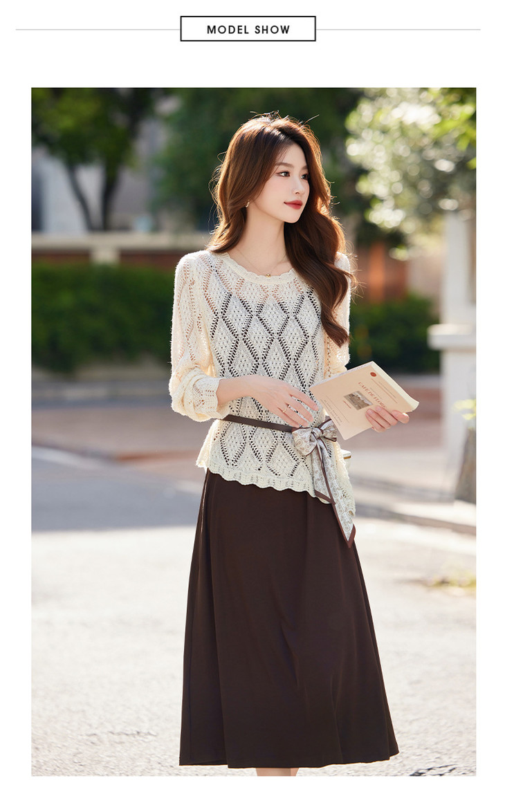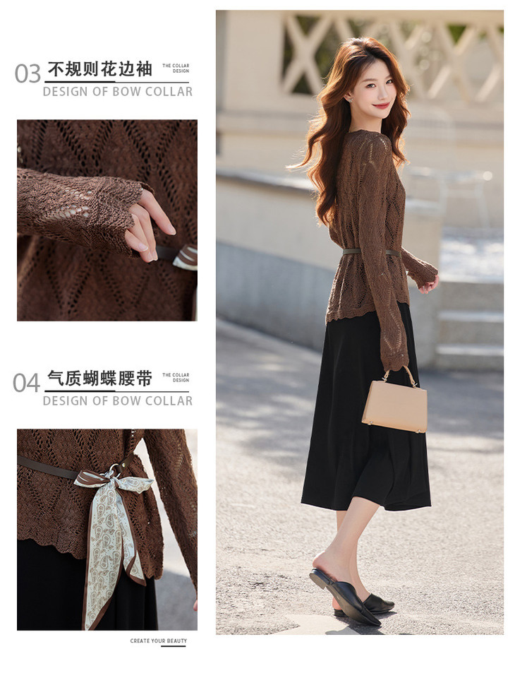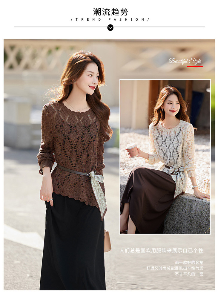 优雅风镂空针织罩衫套装裙,系带收腰吊带裙两件套HR-ABS25128 商品图2