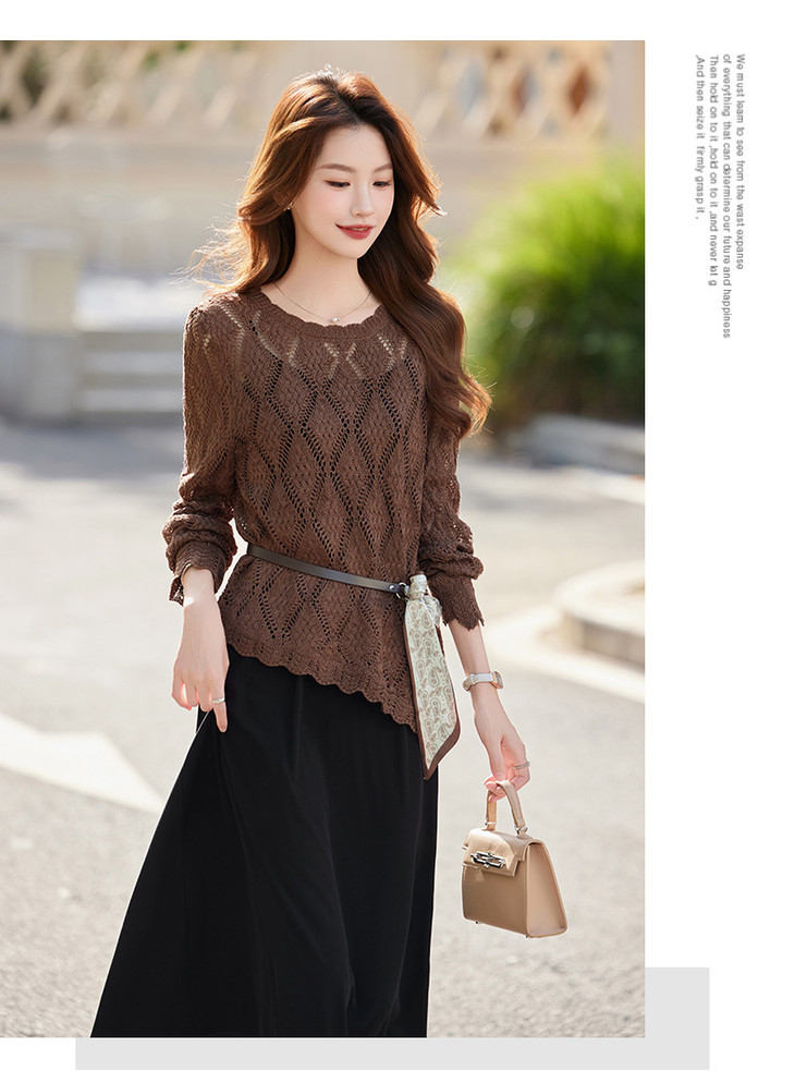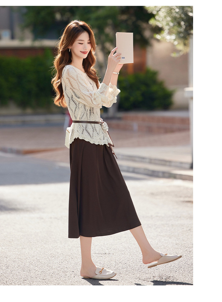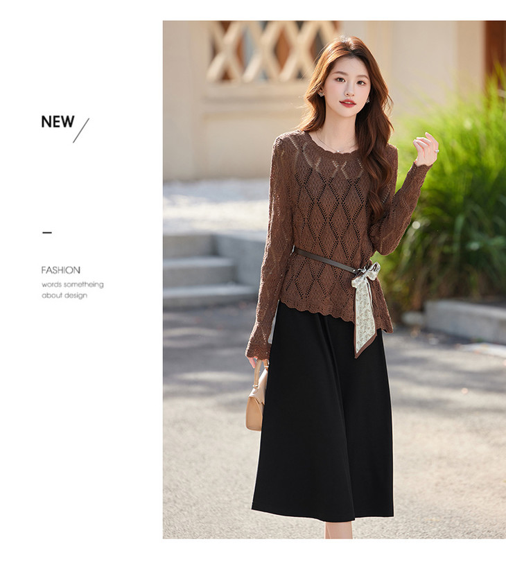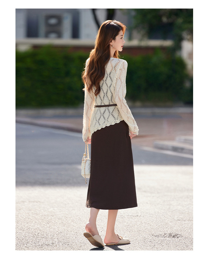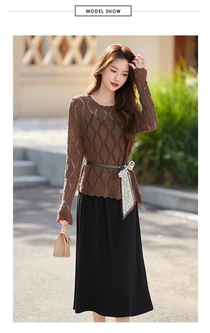 优雅风镂空针织罩衫套装裙,系带收腰吊带裙两件套HR-ABS25128 商品图2