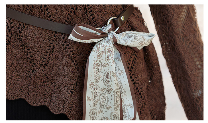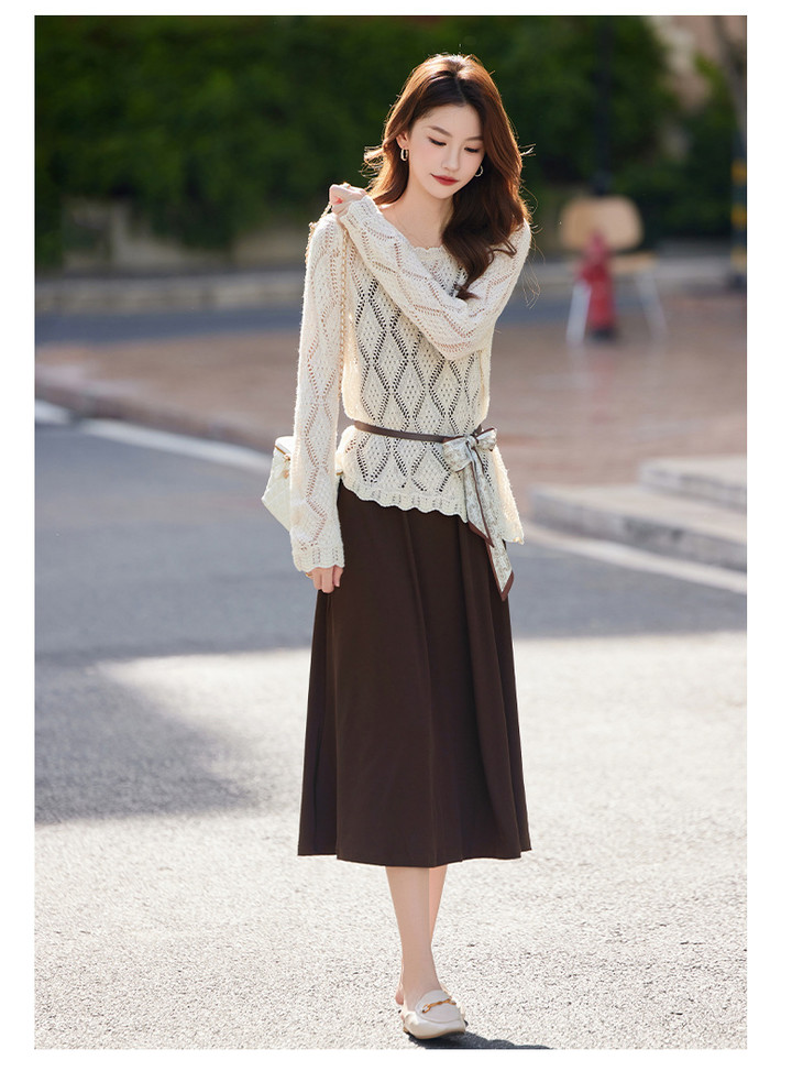 优雅风镂空针织罩衫套装裙,系带收腰吊带裙两件套HR-ABS25128 商品图4