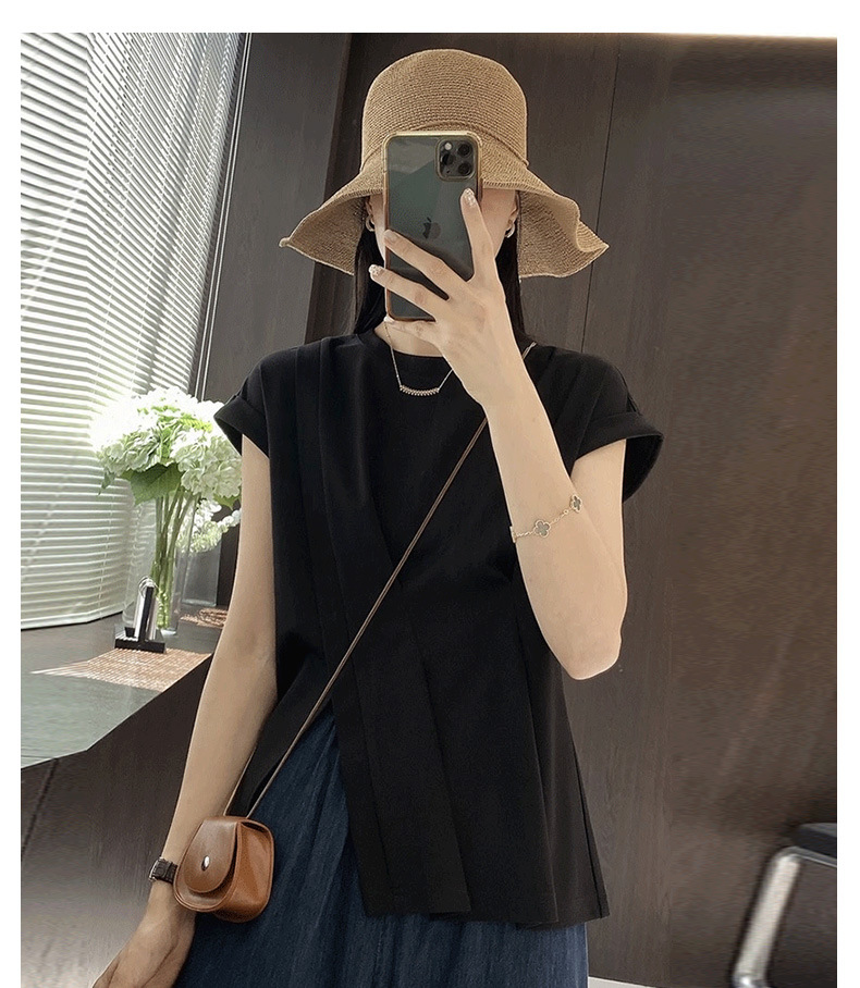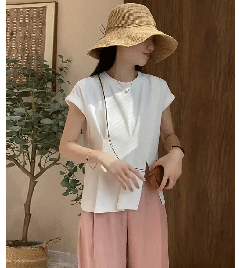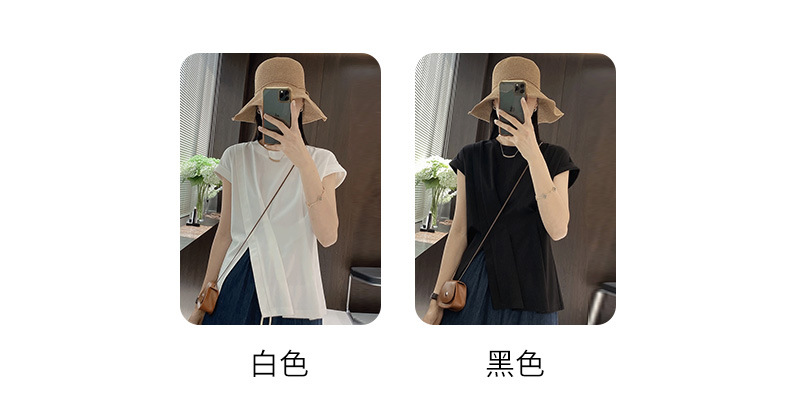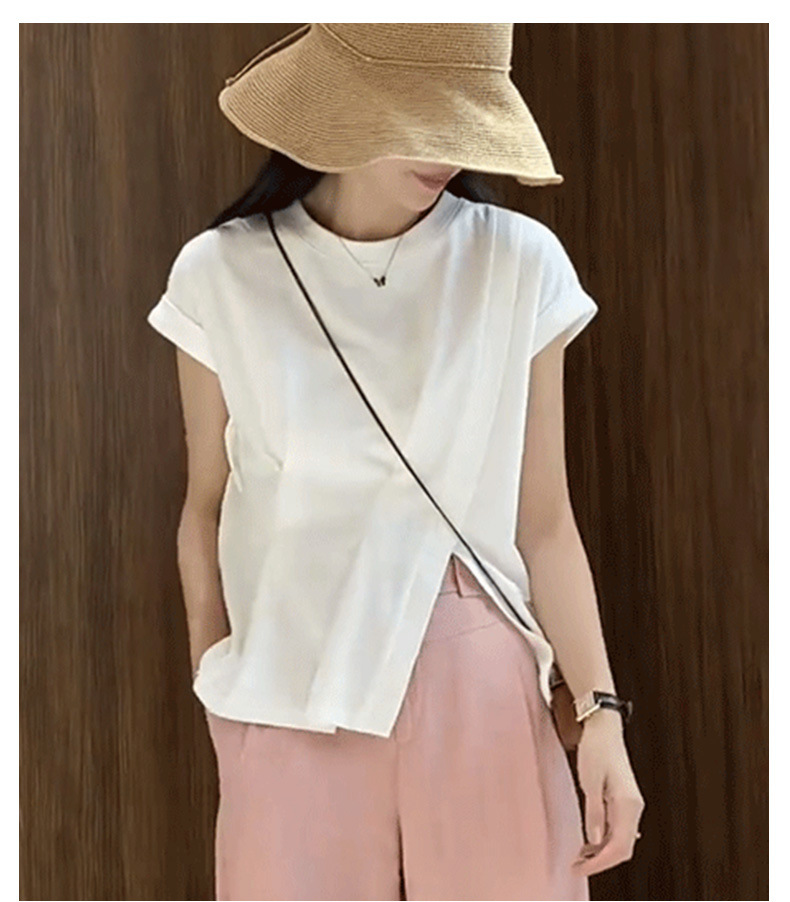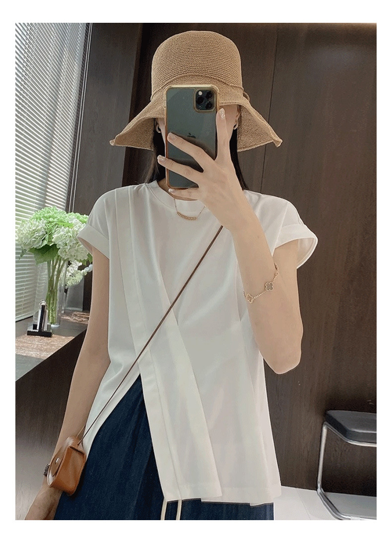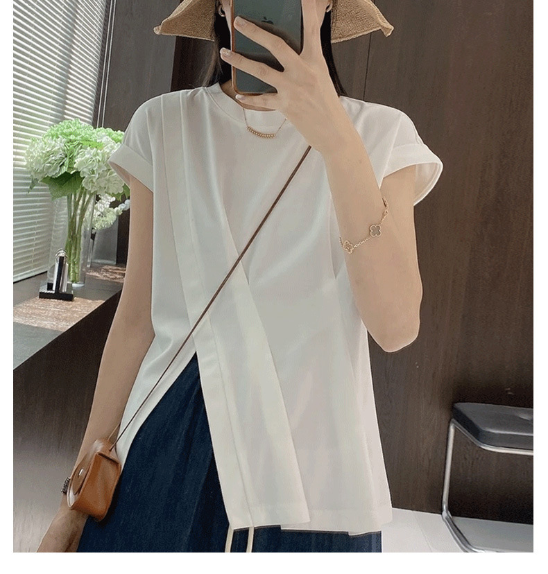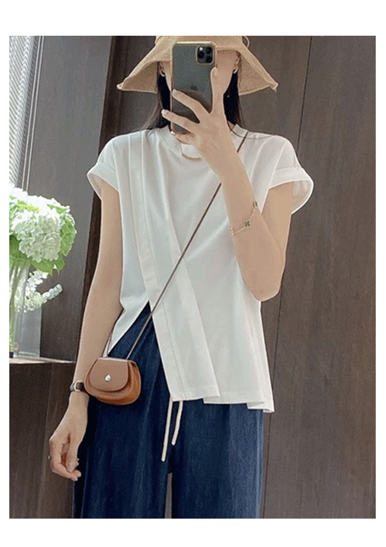雀说下摆开叉短袖衬衫新款通勤薄款小个子休闲上衣AL45084