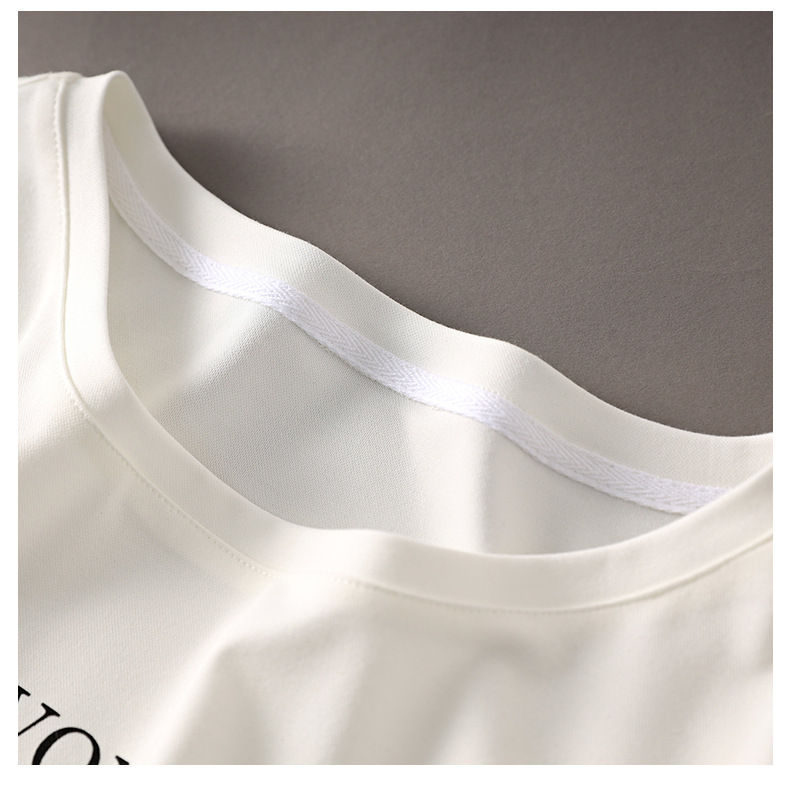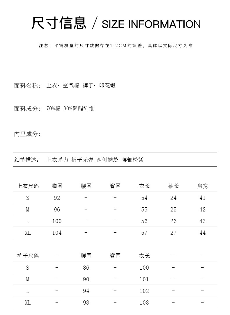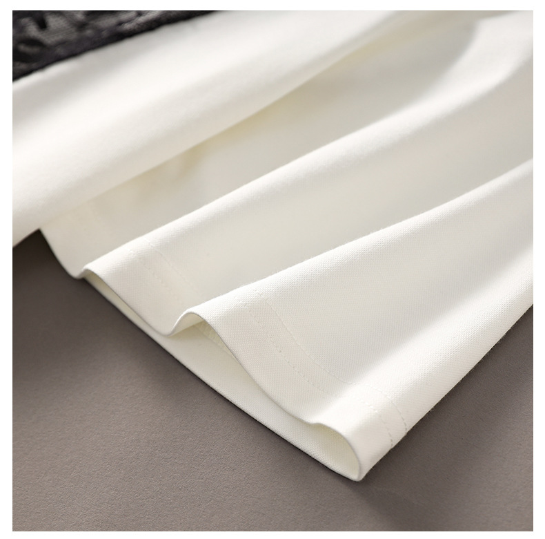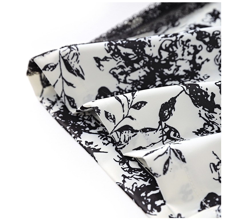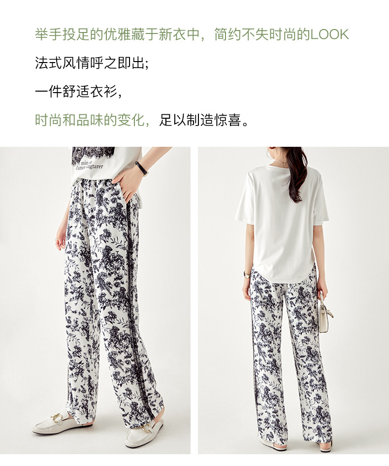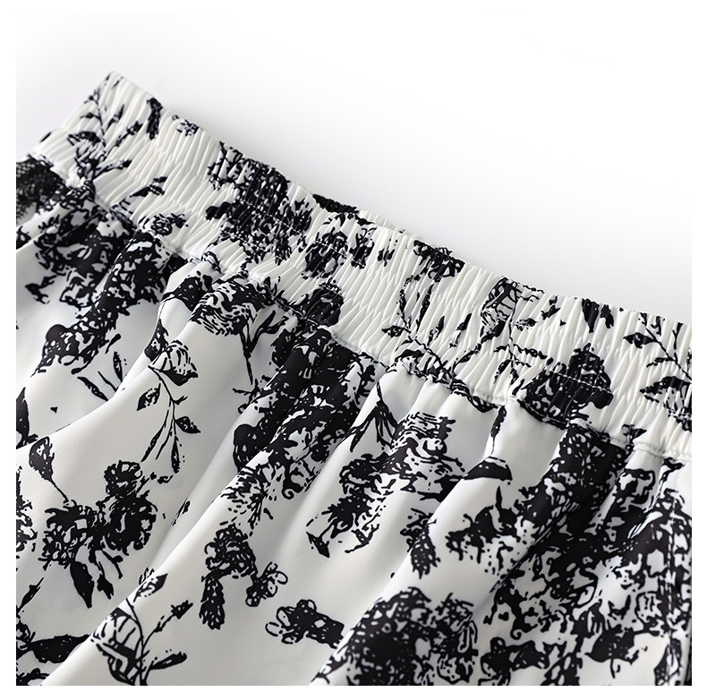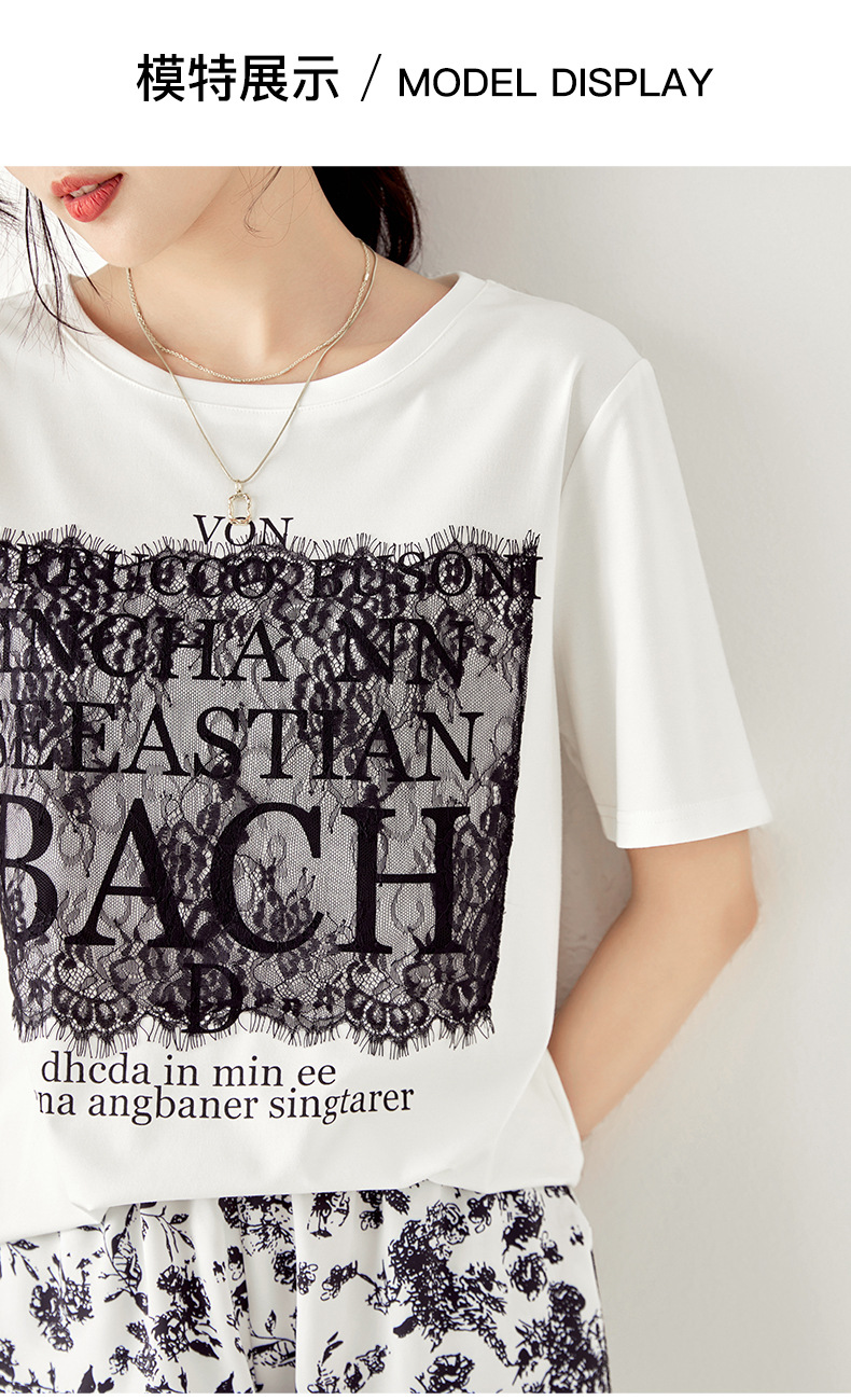 运动休闲,通勤蕾丝拼接短袖+黑白印花缎面休闲裤两件套WLZD-2305209
