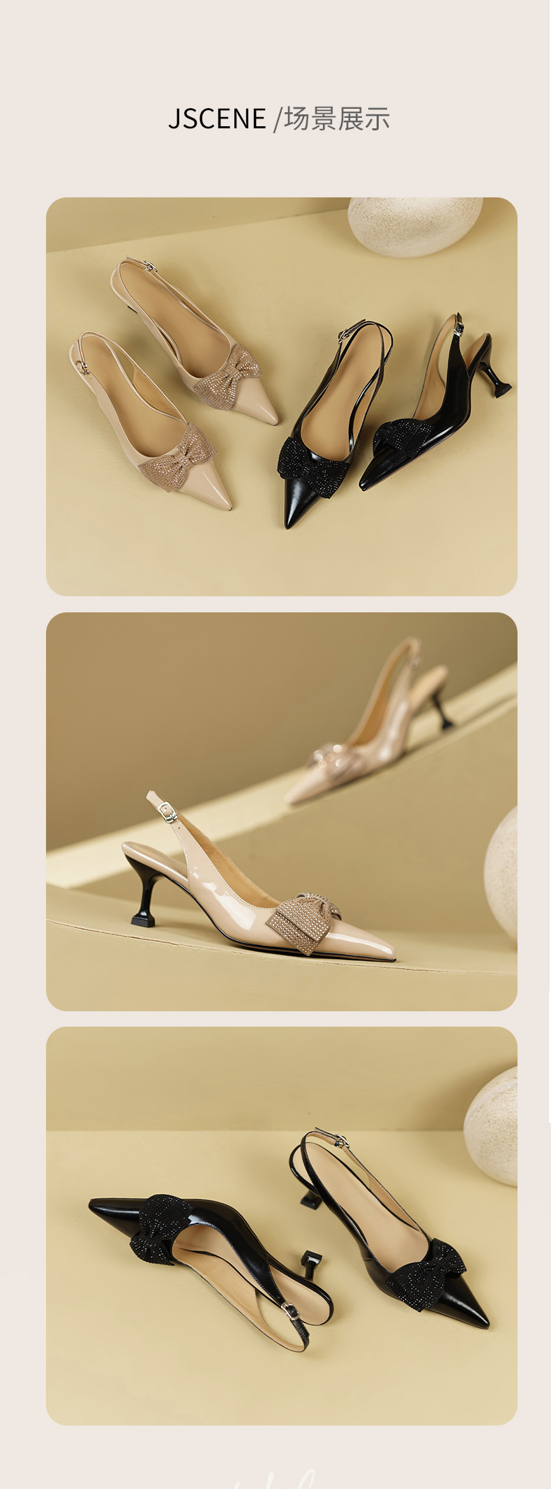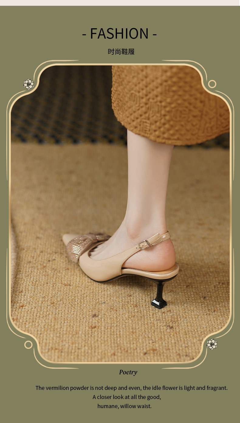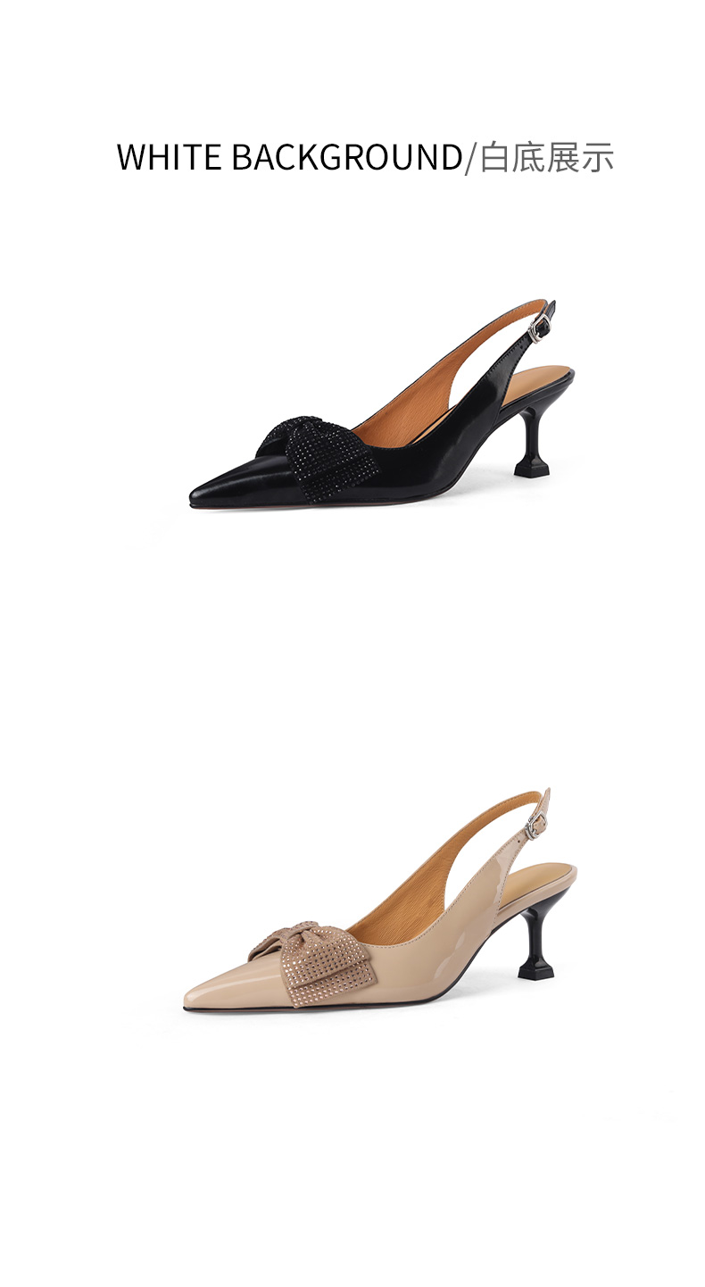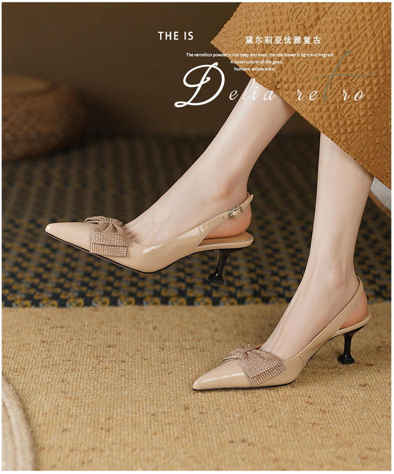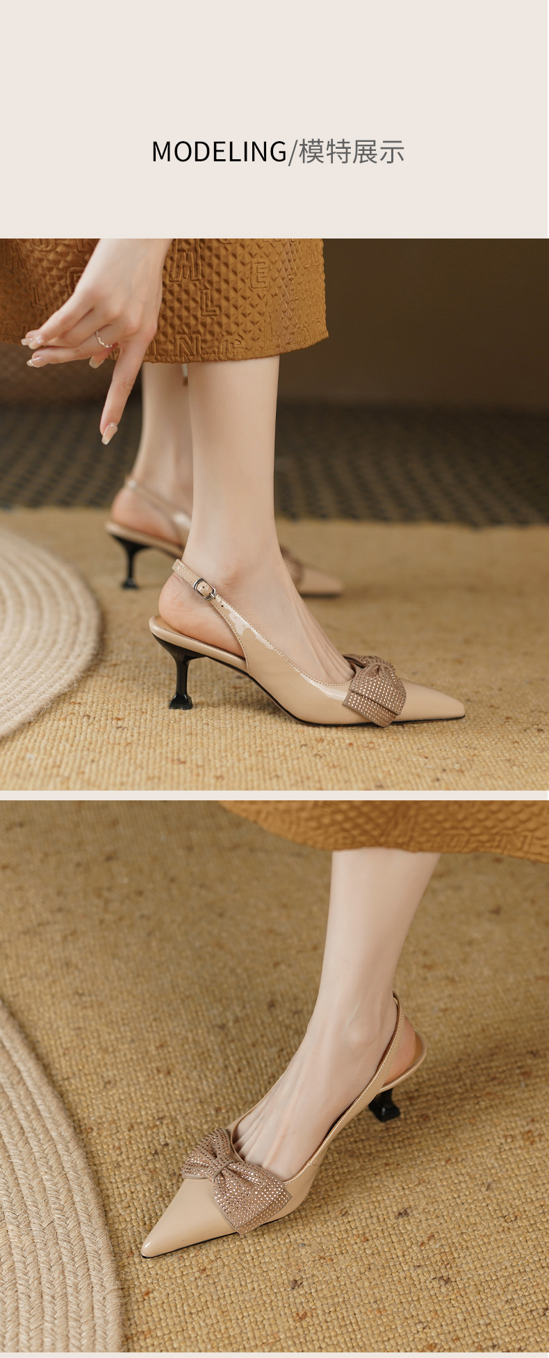 夏季新款,流行钻复古里外全皮尖头后空高跟凉鞋YD-F351