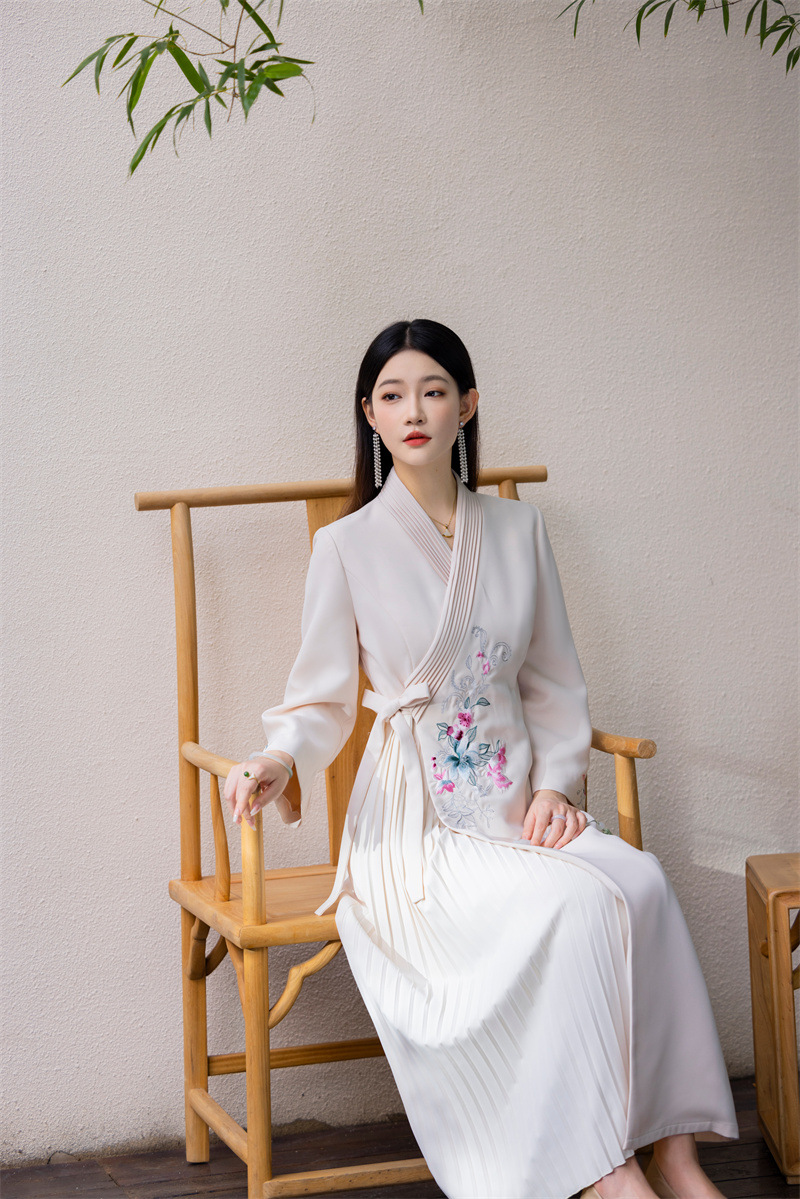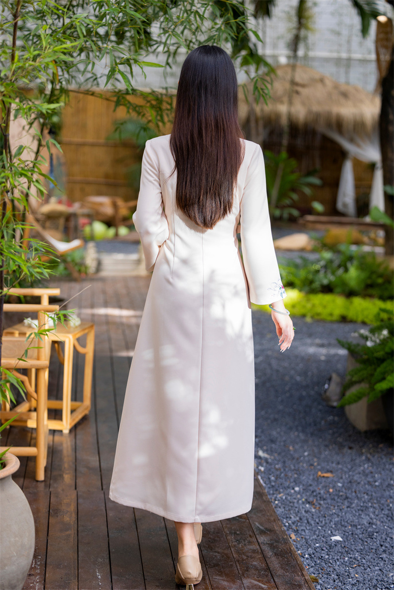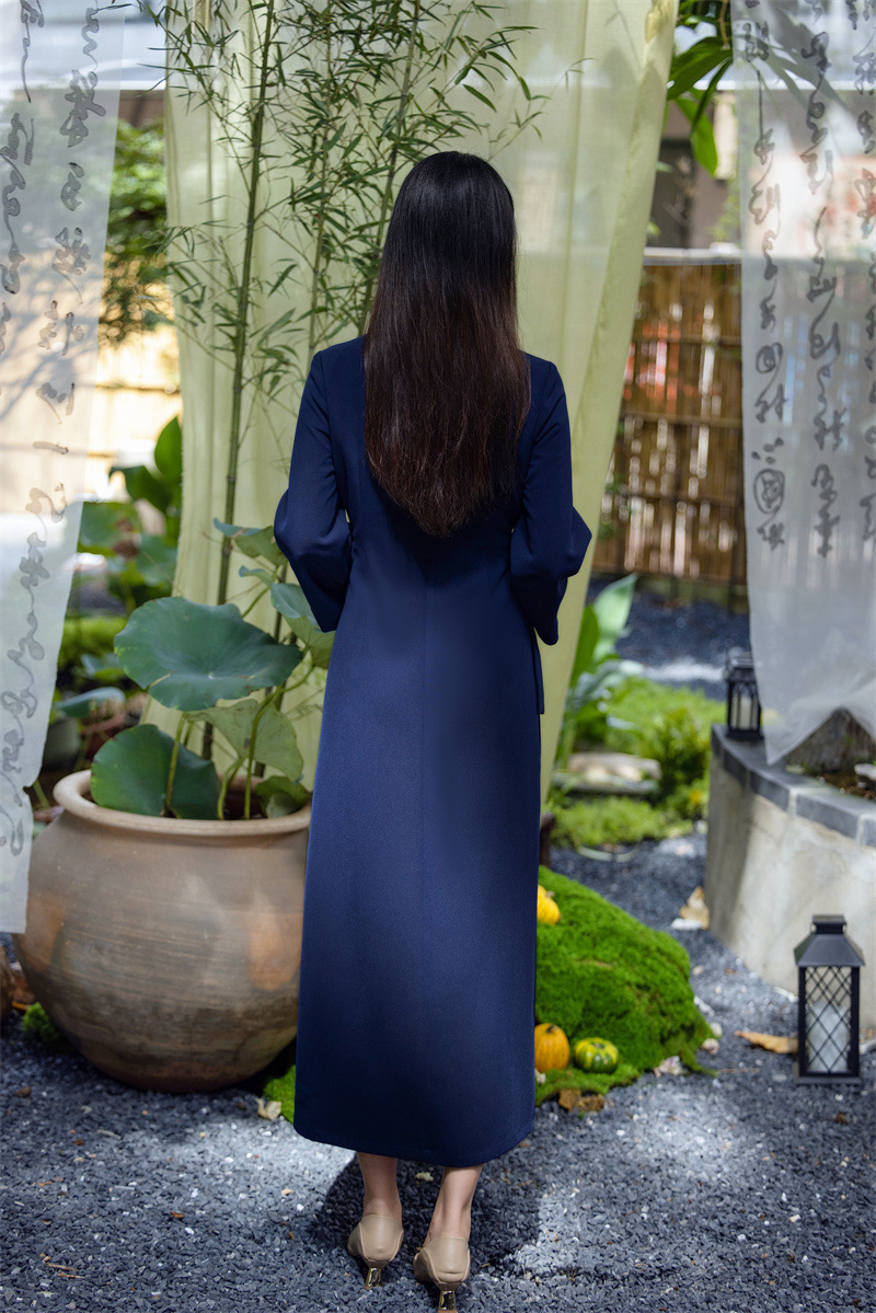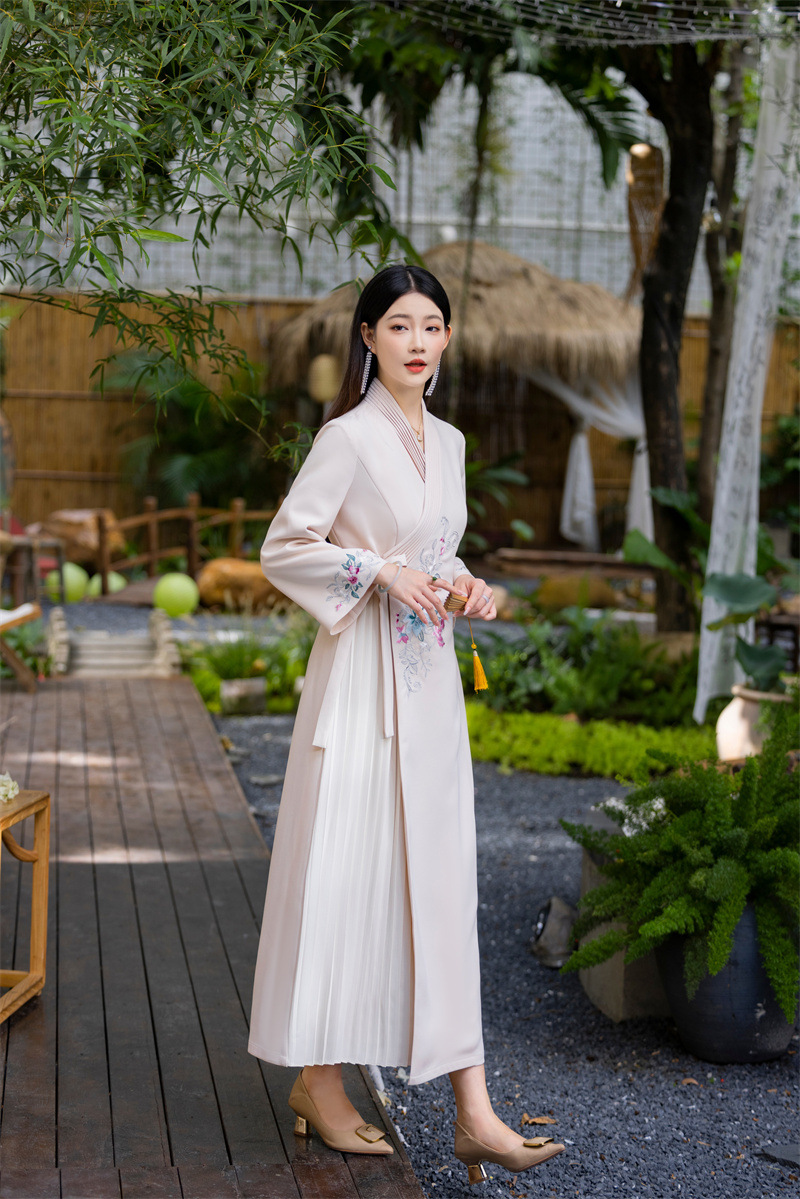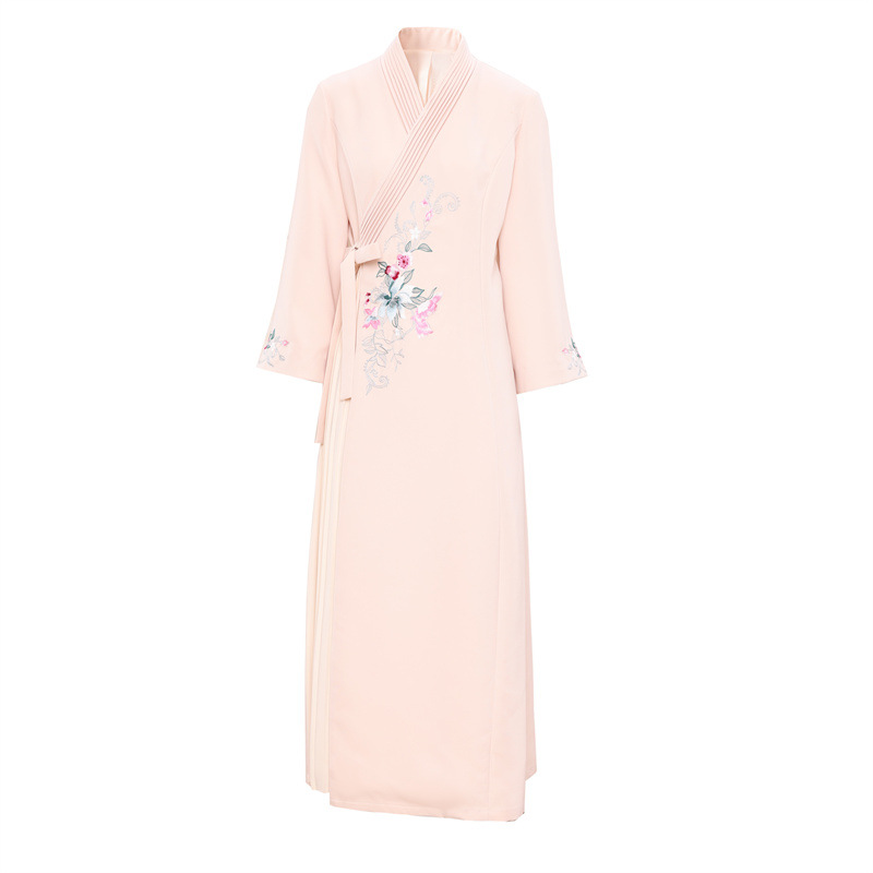 秋冬修身旗袍国风,复古中式连衣裙改良版刺绣压褶裙FL-23158