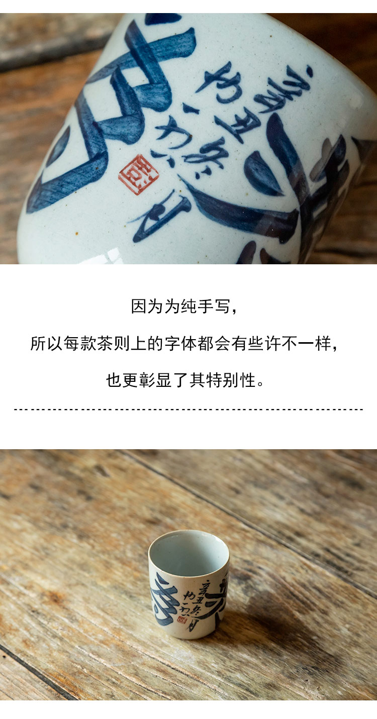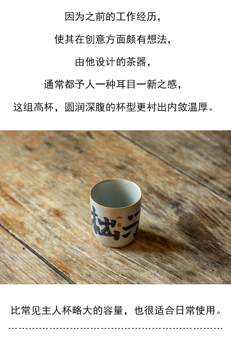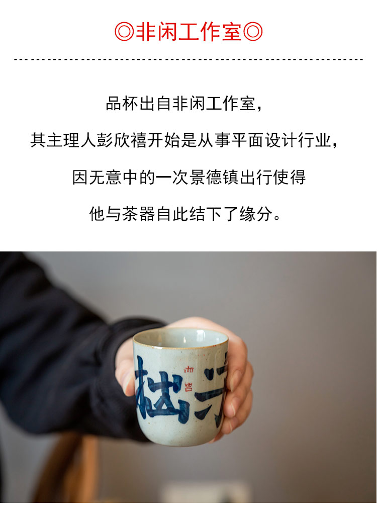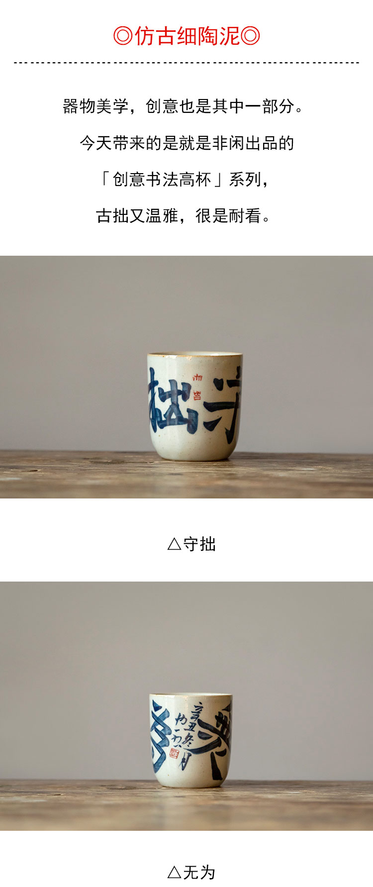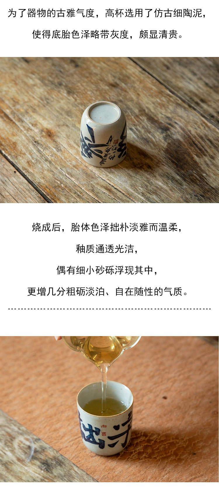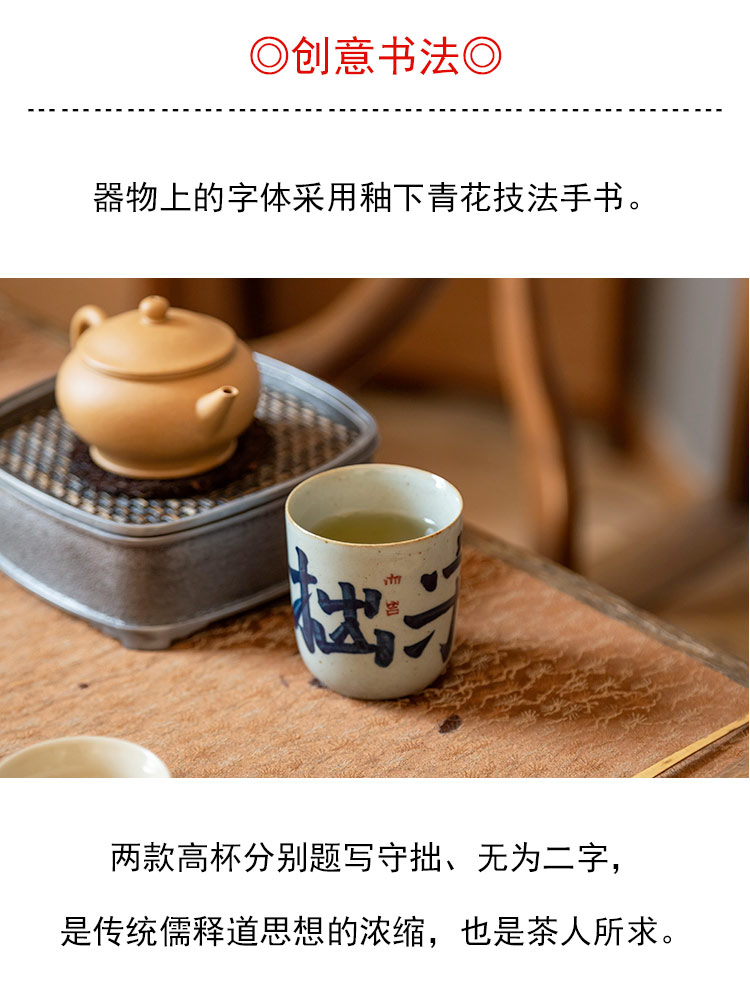 茶香记 景德镇非闲仿古细陶泥创意书法高杯110ml无为守拙陶瓷品杯