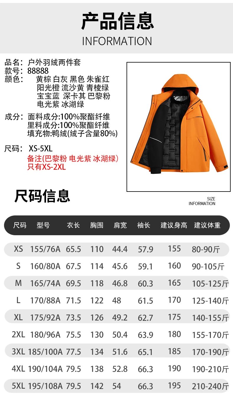运动多巴胺色系三合一羽绒服防寒外套】一衣三穿,防泼水防风 外套单穿/两层叠穿/羽绒内胆