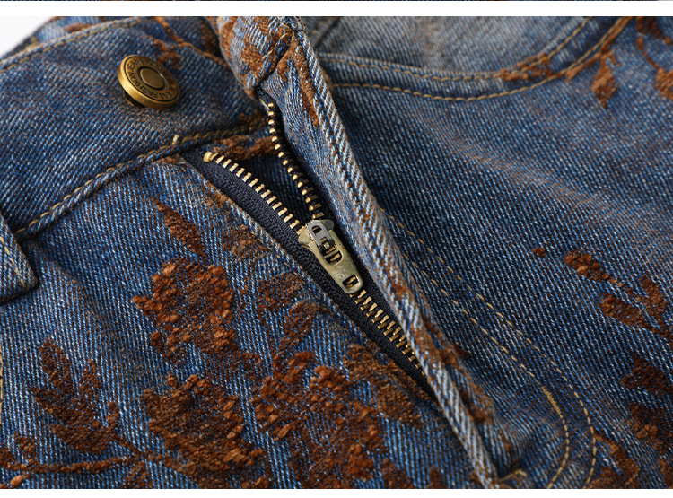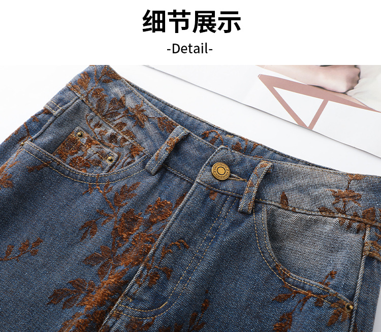 YM 6622-76雪尼尔提花直筒牛仔裤时髦洋气高腰显瘦阔腿裤 商品图4