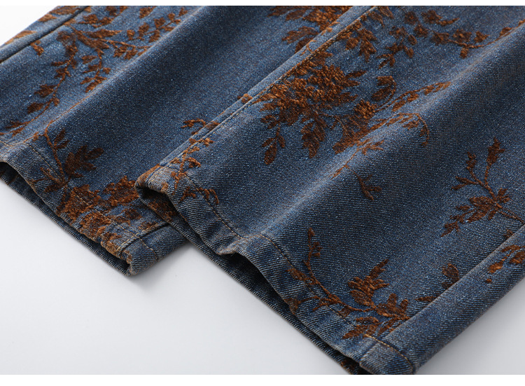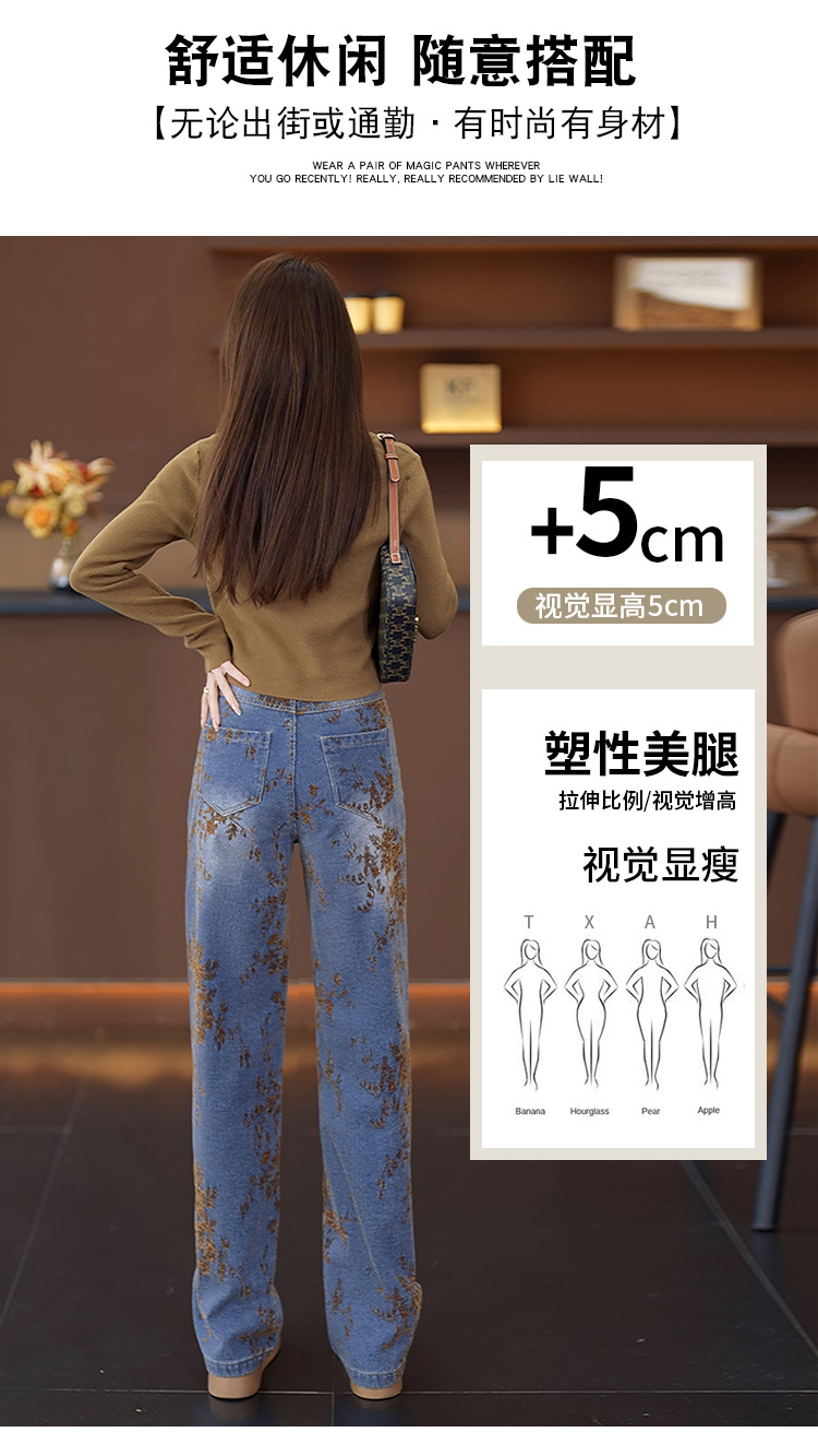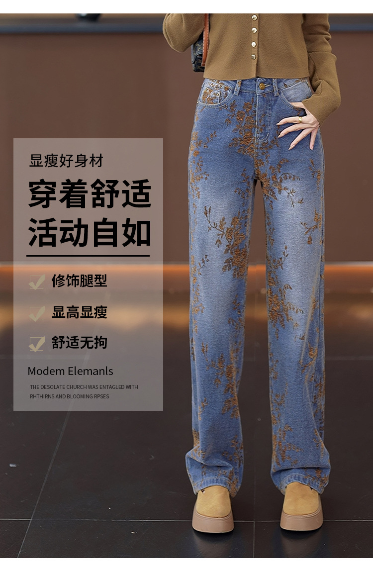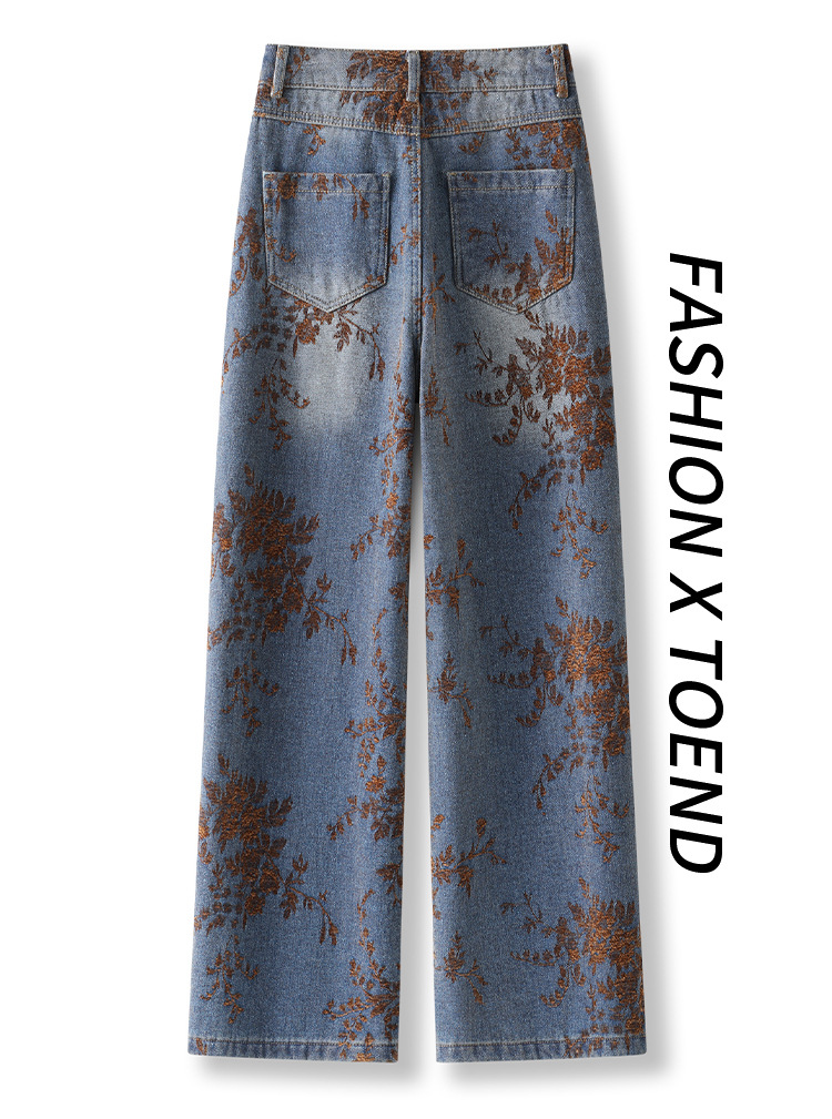 YM 6622-76雪尼尔提花直筒牛仔裤时髦洋气高腰显瘦阔腿裤 商品图0