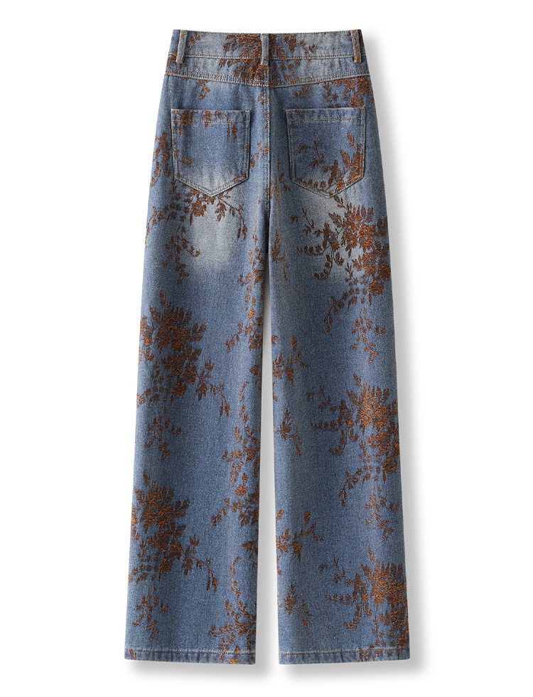 YM 6622-76雪尼尔提花直筒牛仔裤时髦洋气高腰显瘦阔腿裤