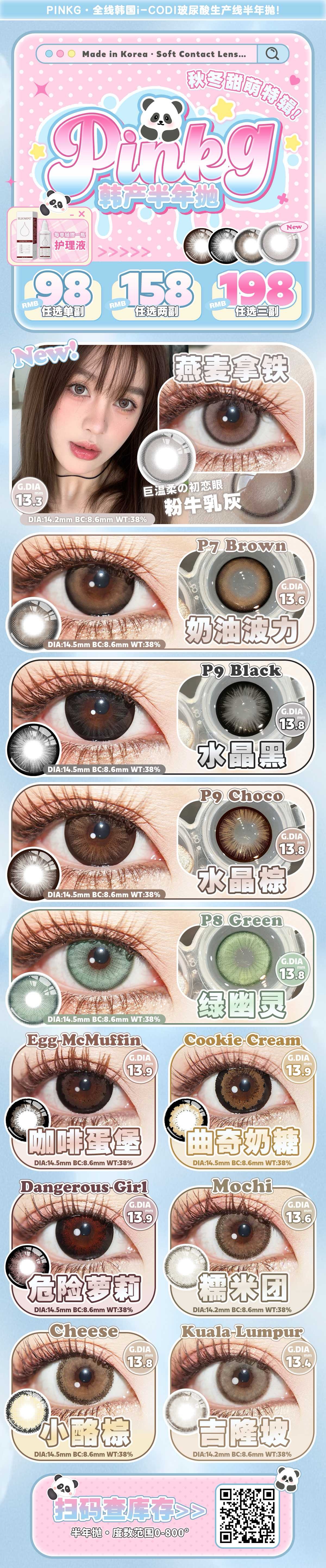 【本月活动】PINKG美瞳半年抛,单副98,2副158