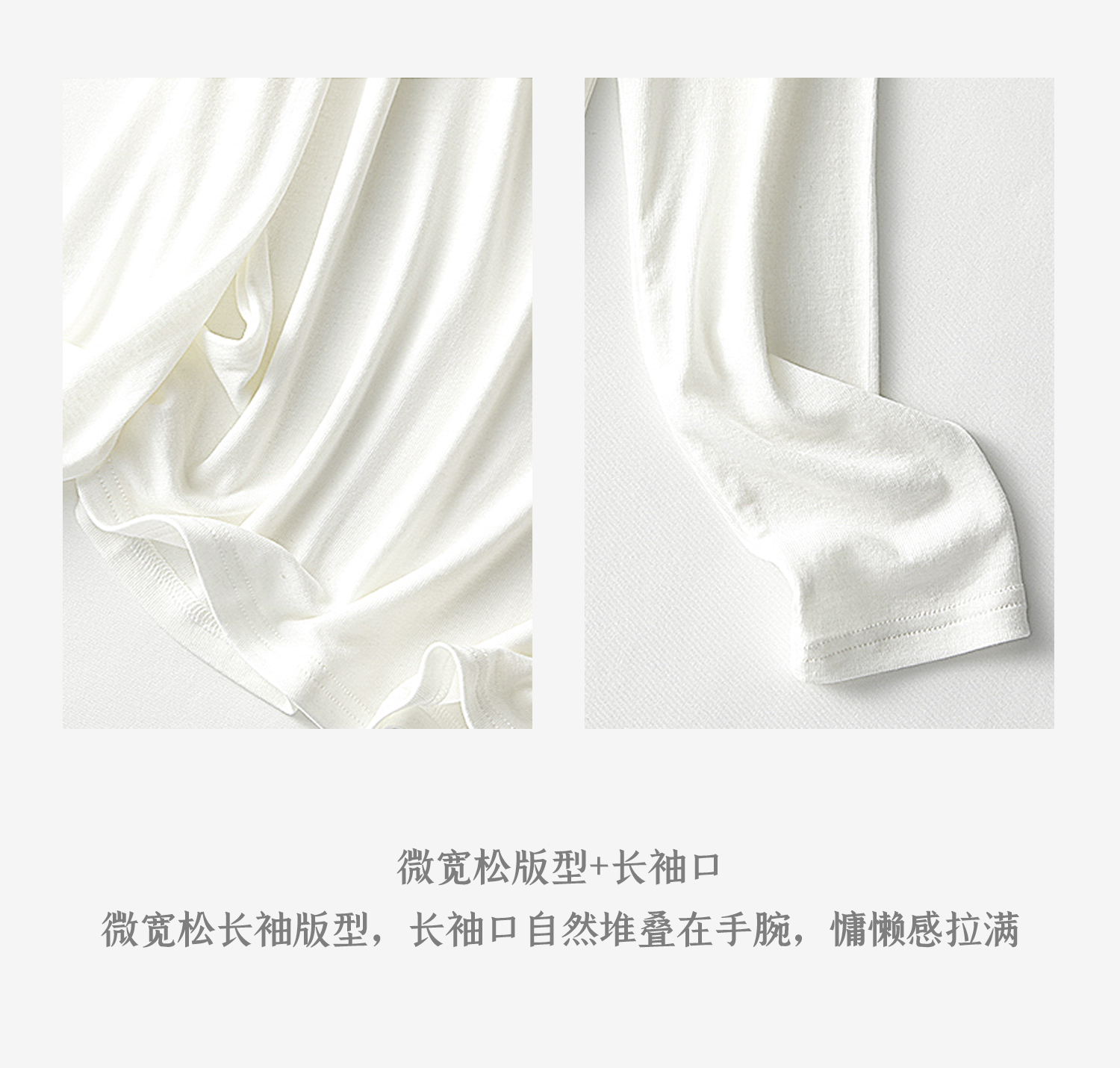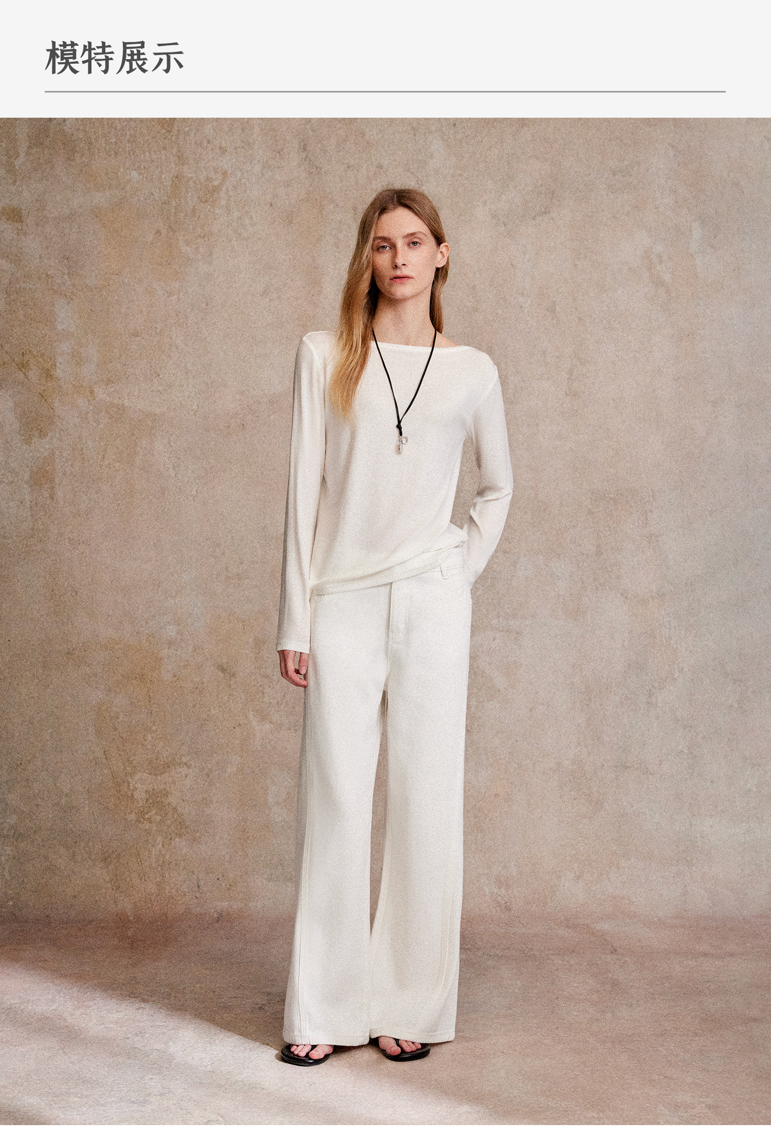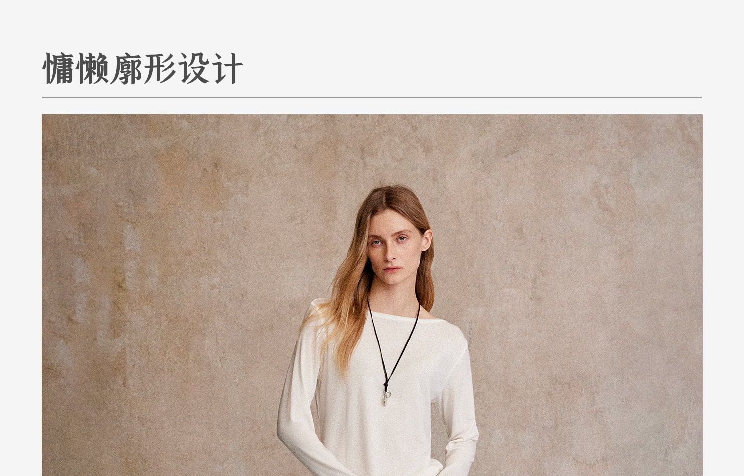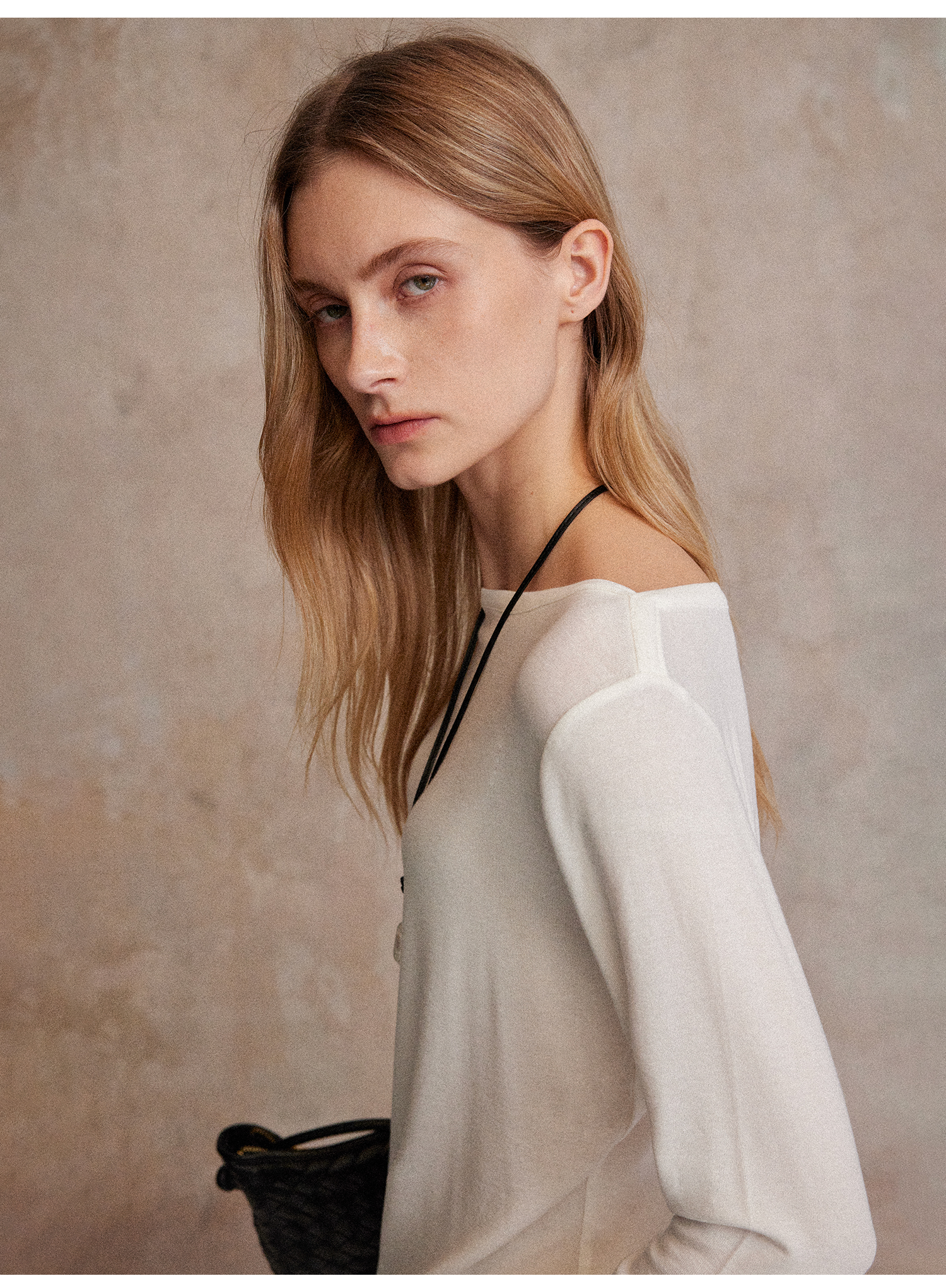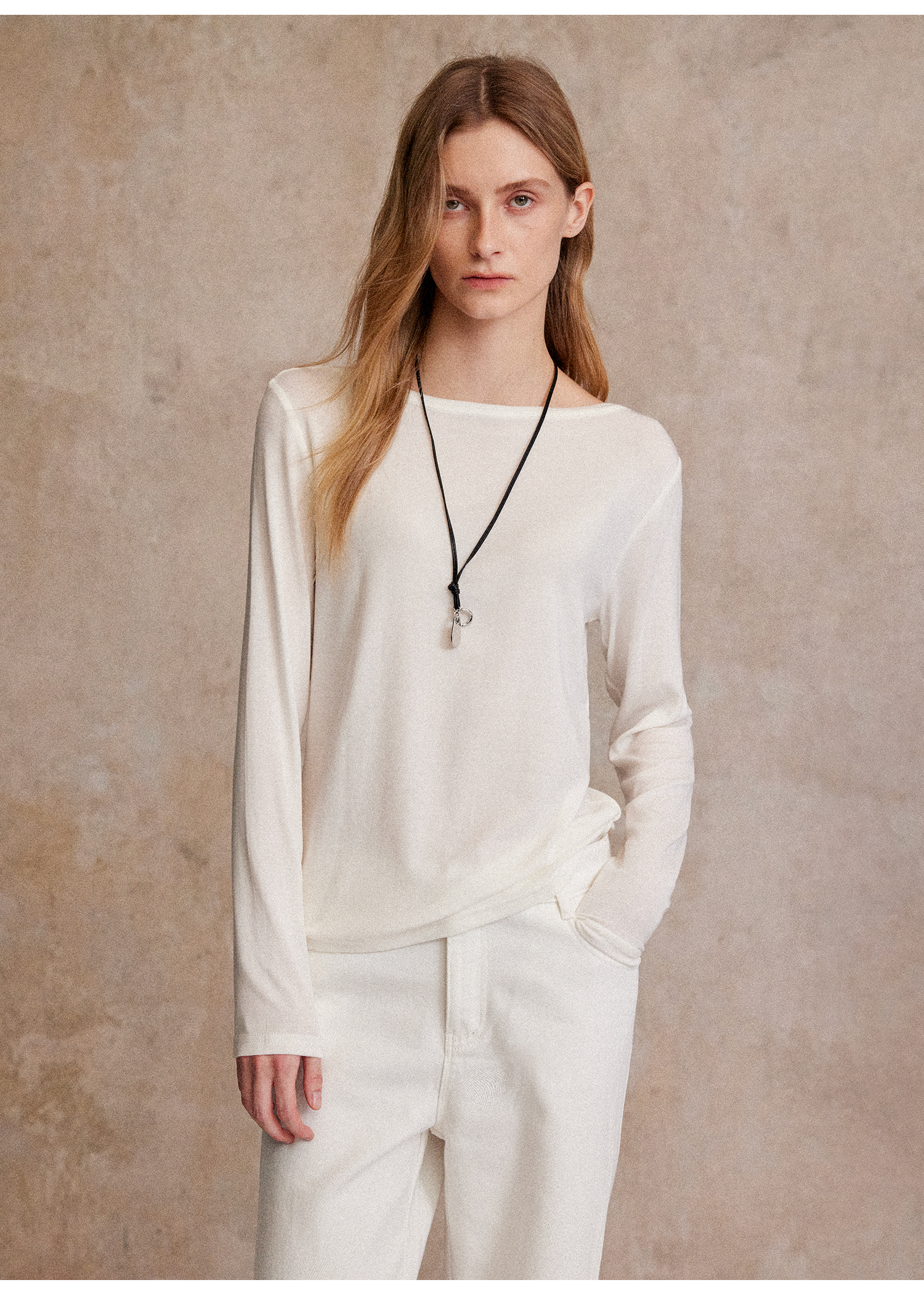 一字领宽松天丝羊毛慵懒纸片人长袖T恤T2503048