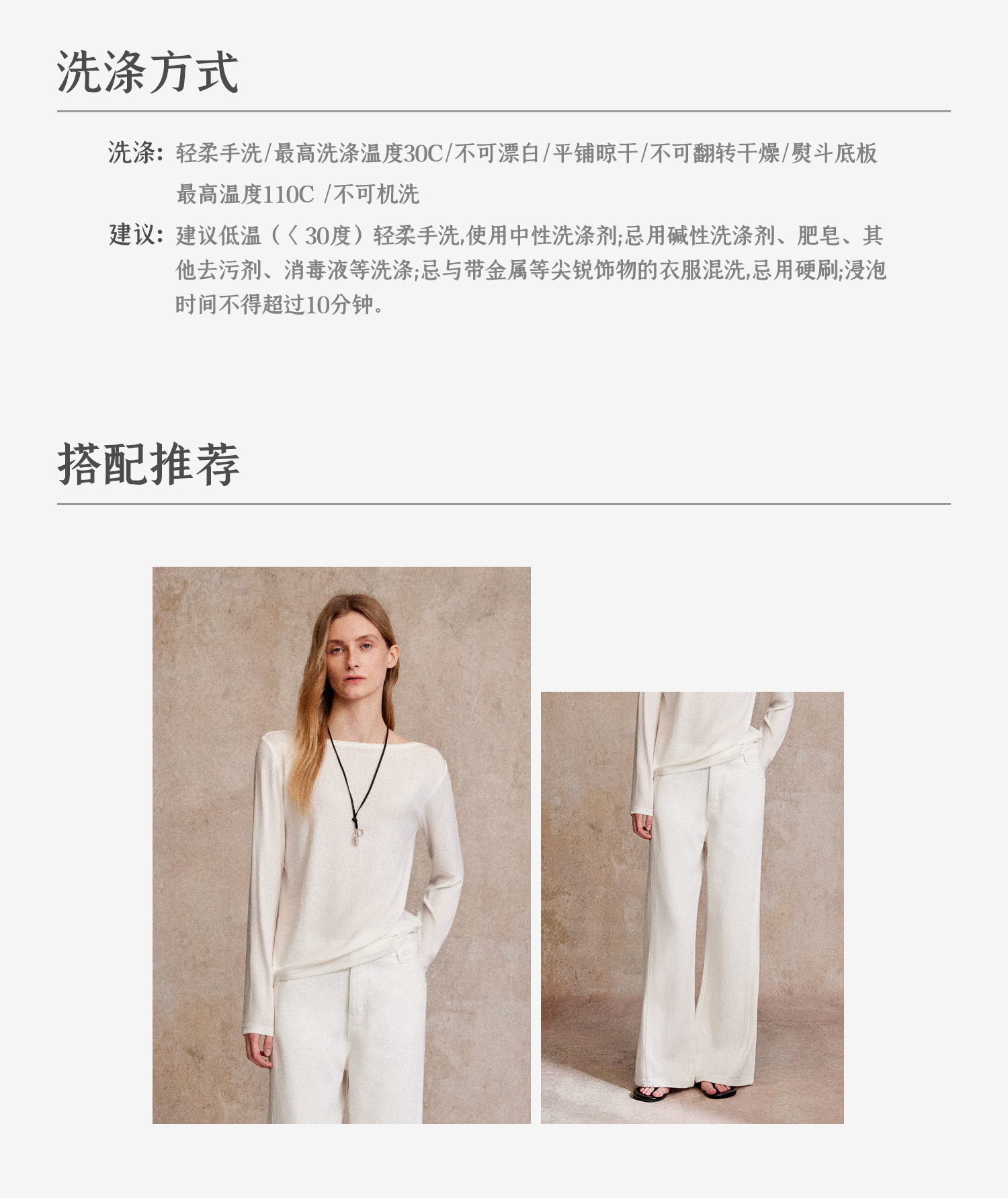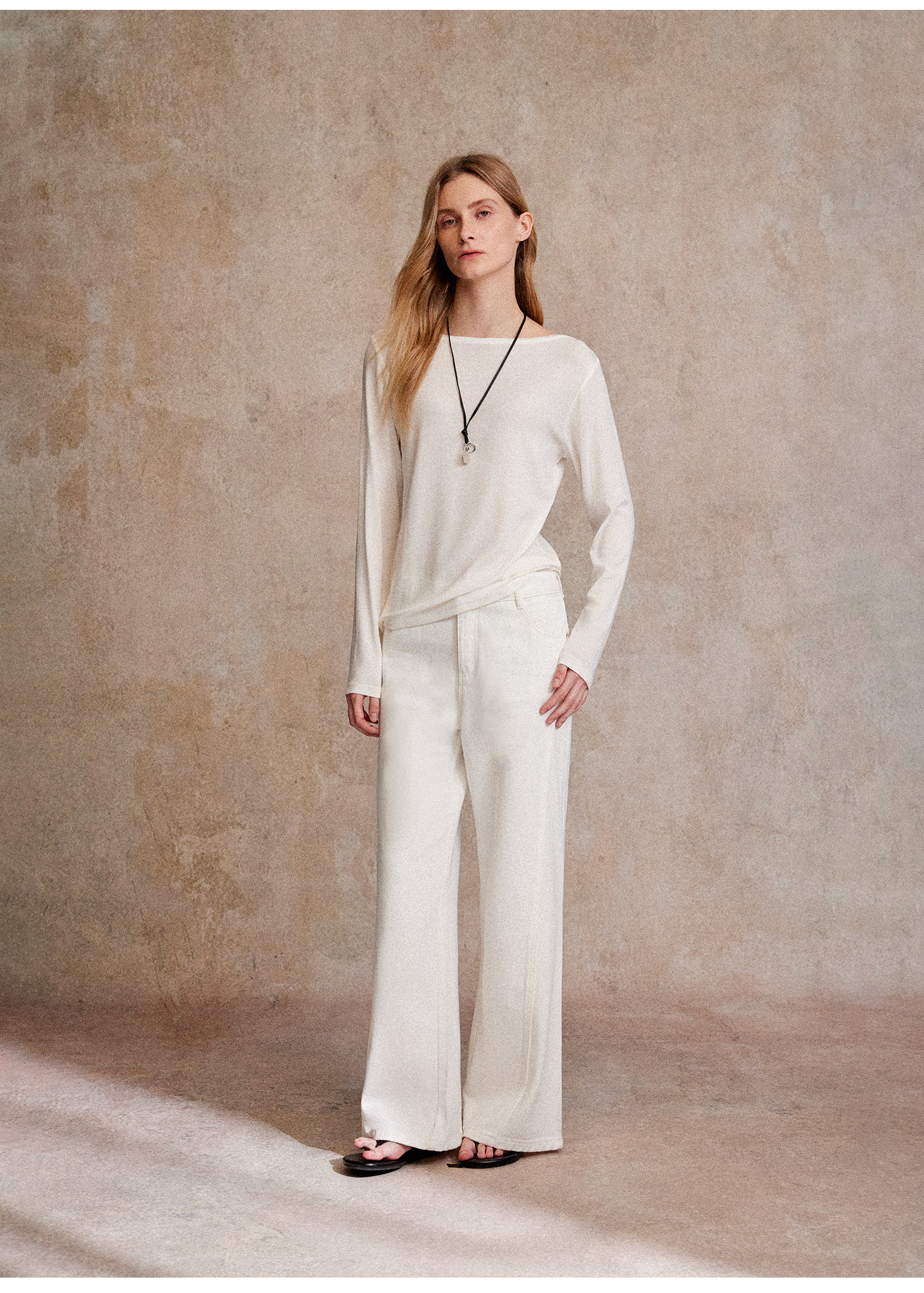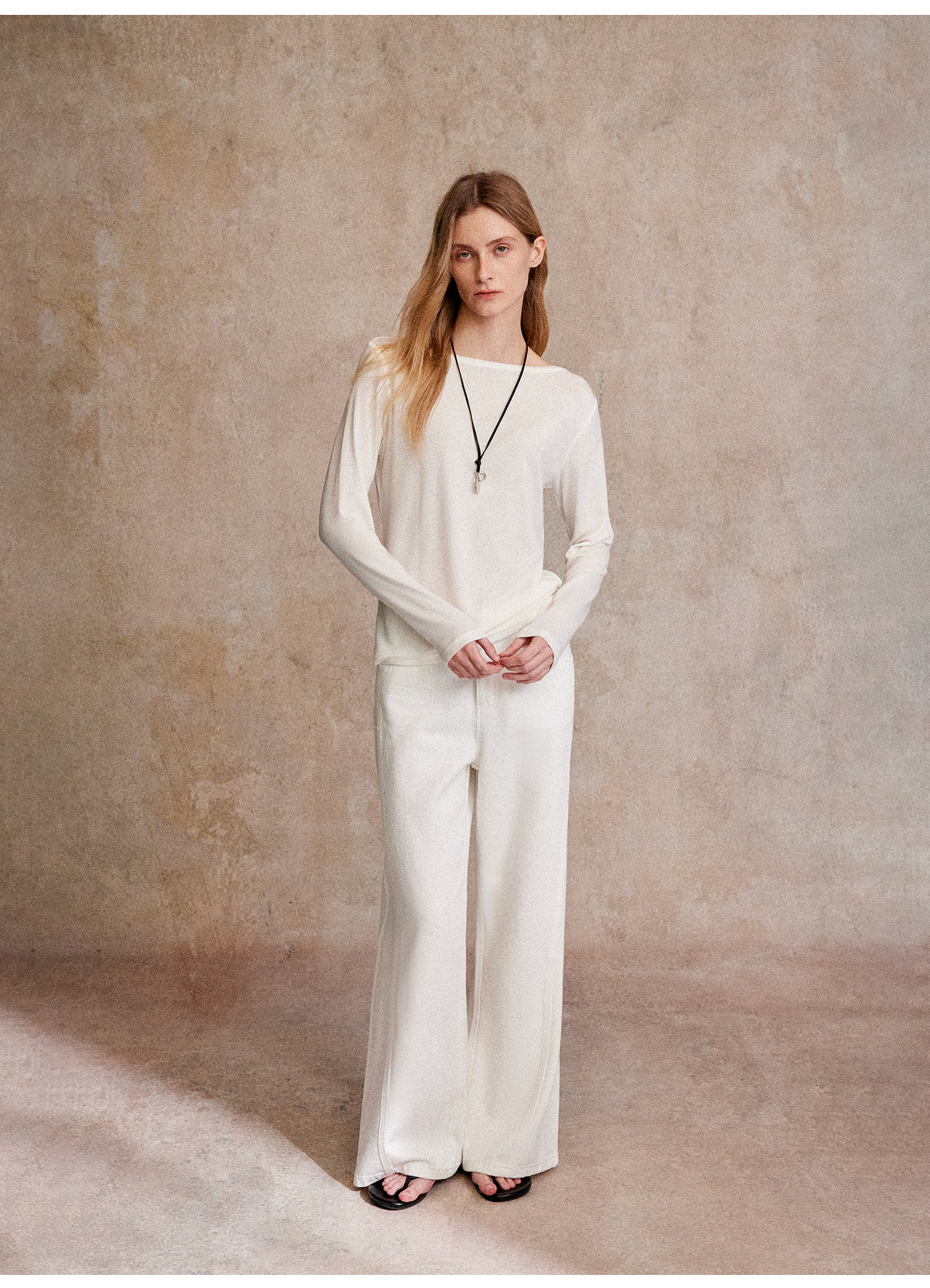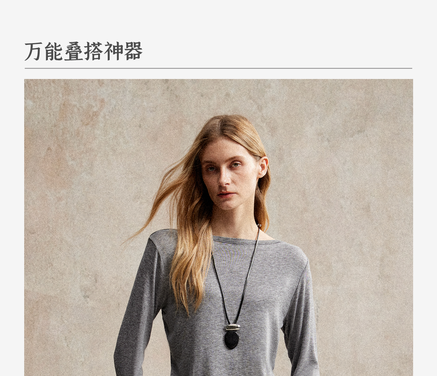 一字领宽松天丝羊毛慵懒纸片人长袖T恤T2503048