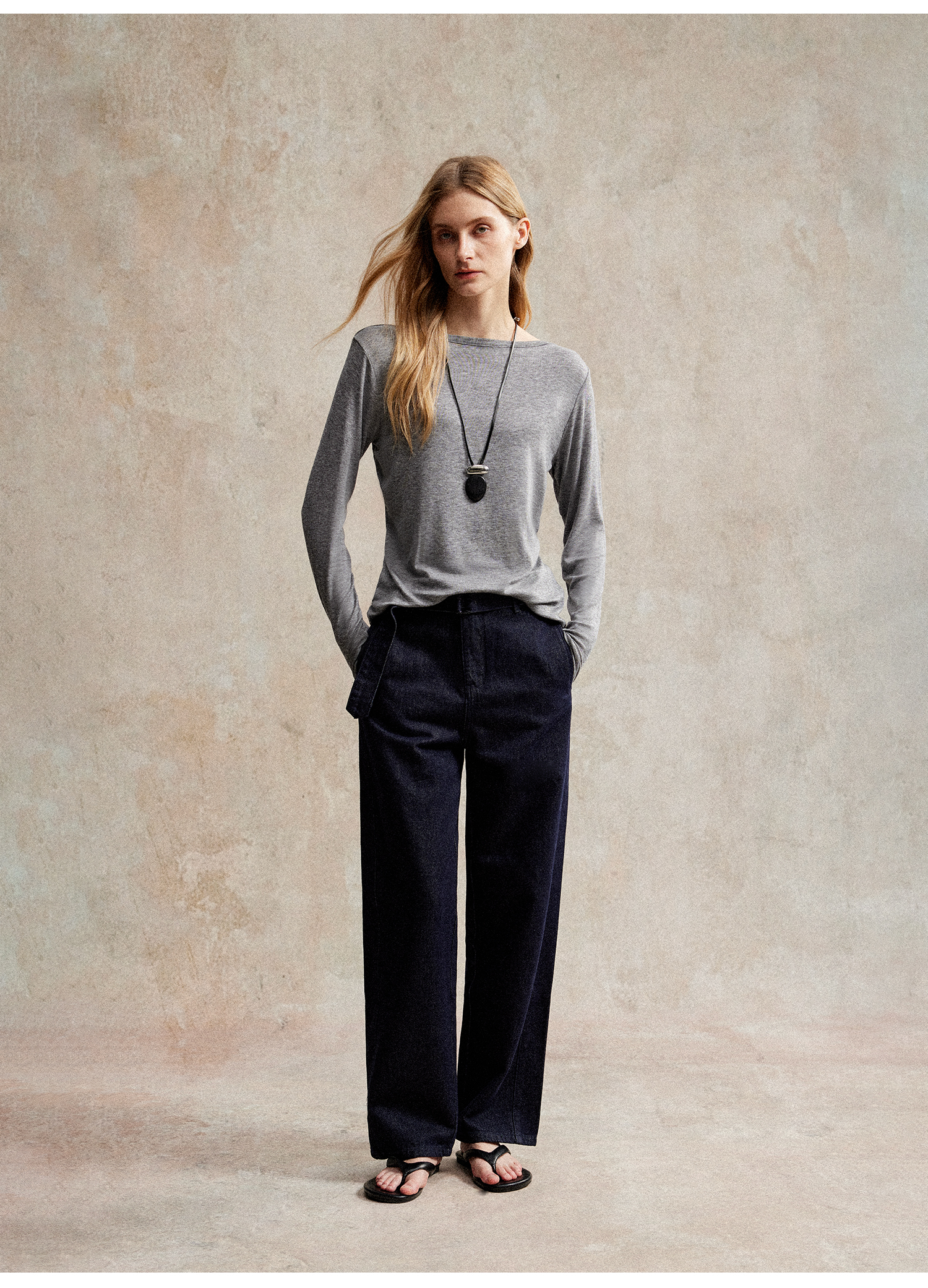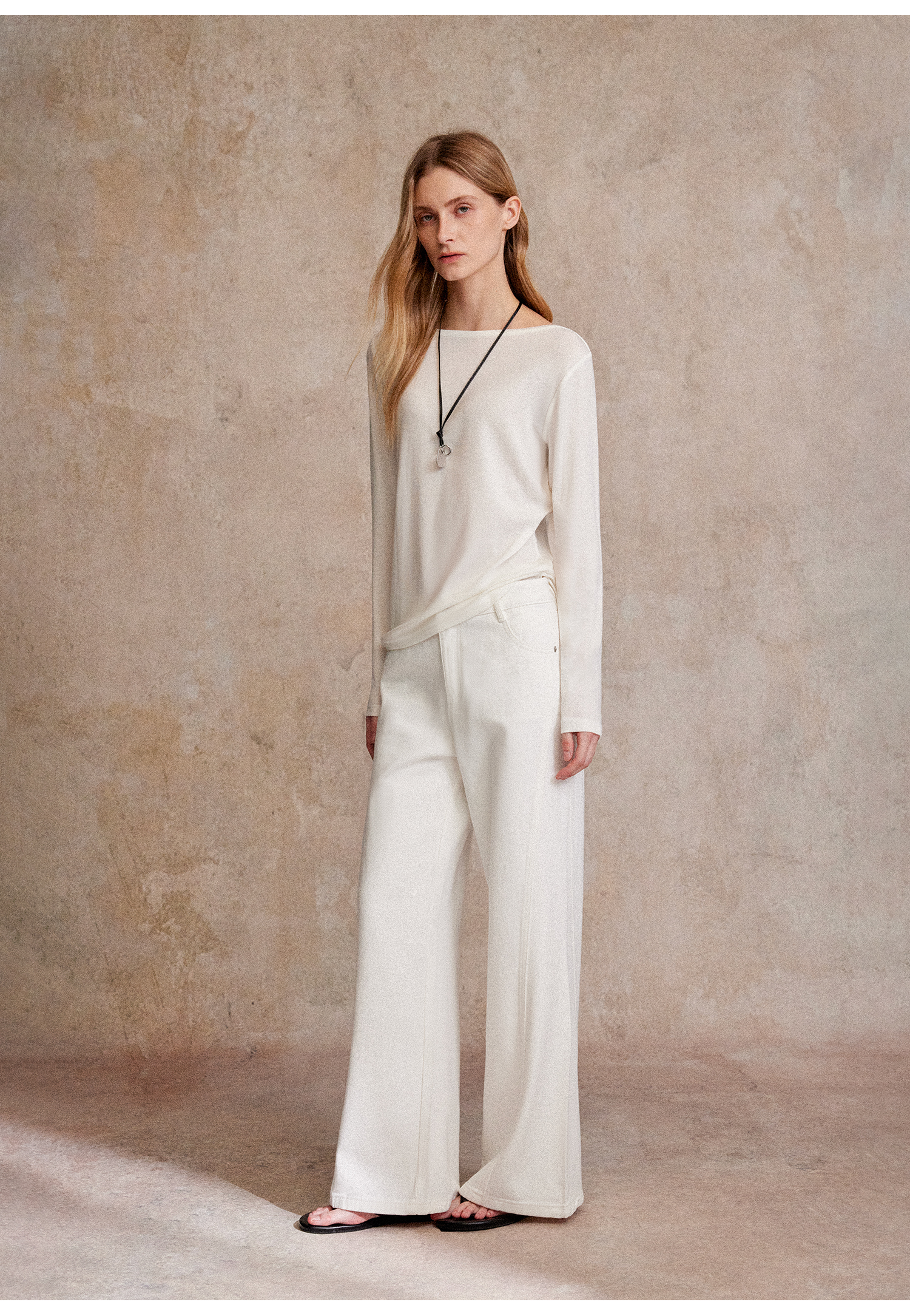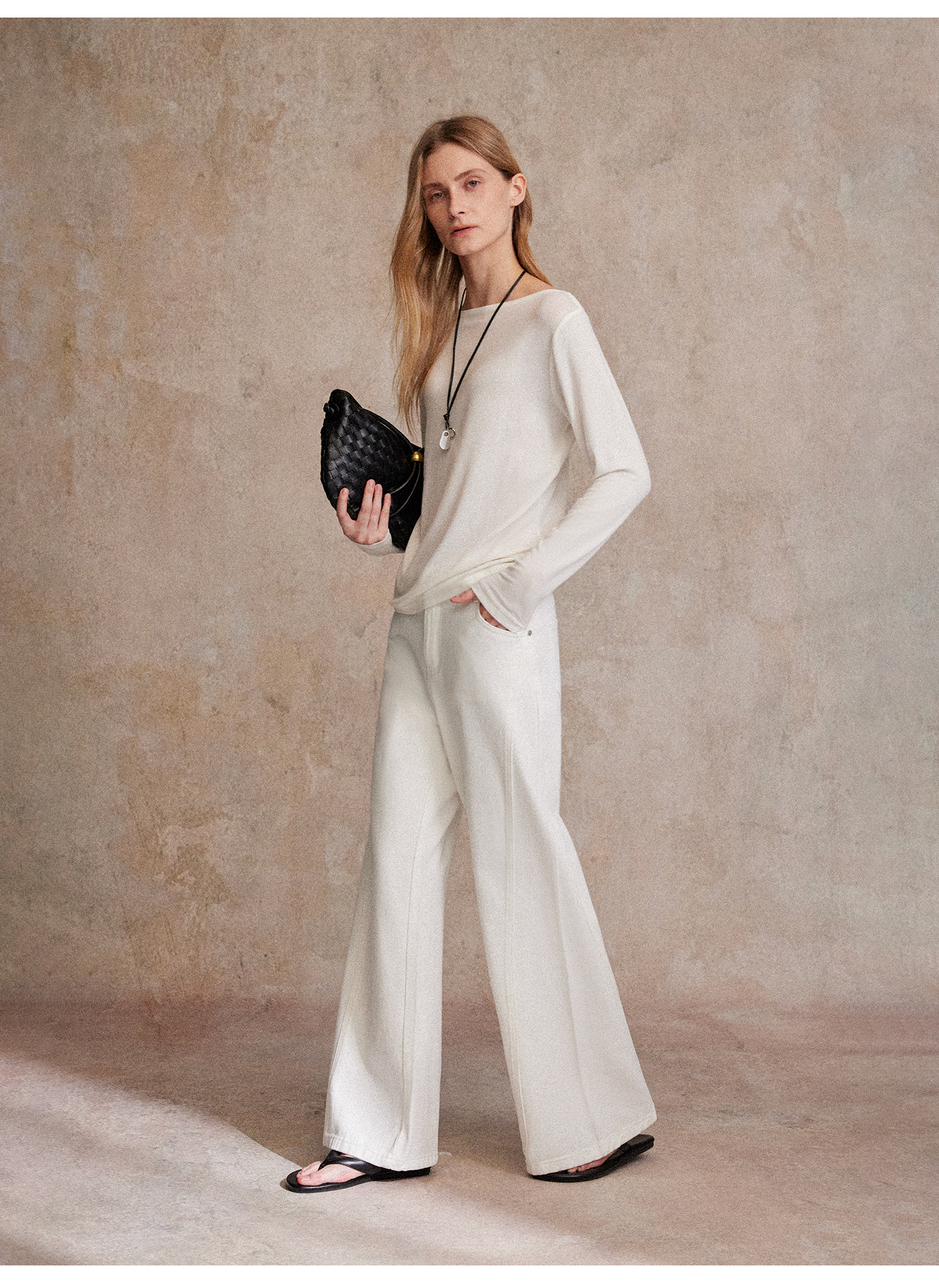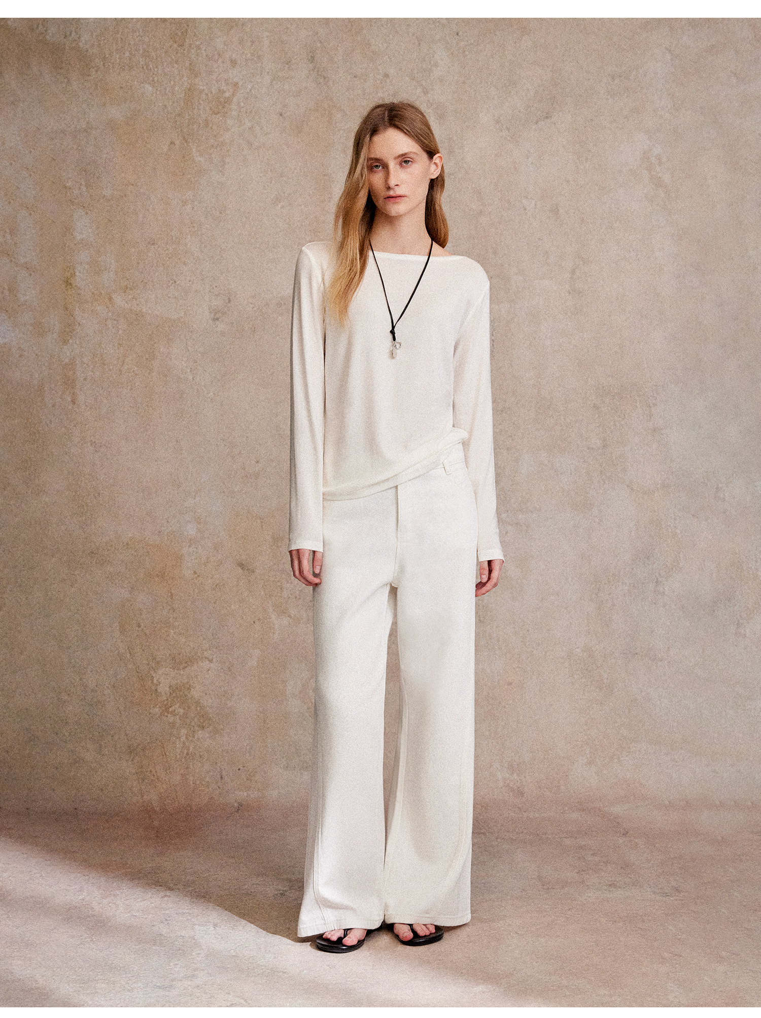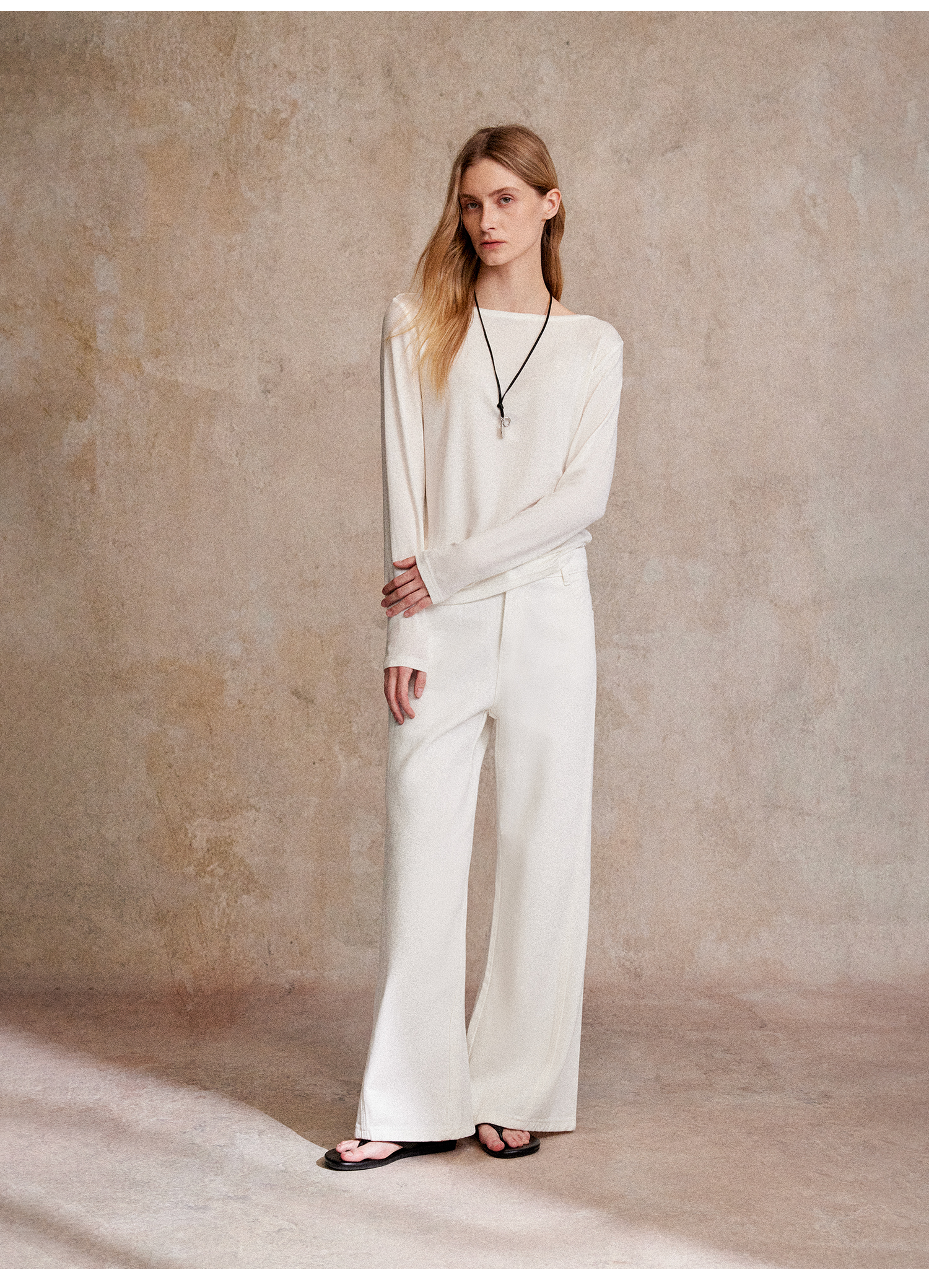 一字领宽松天丝羊毛慵懒纸片人长袖T恤T2503048
