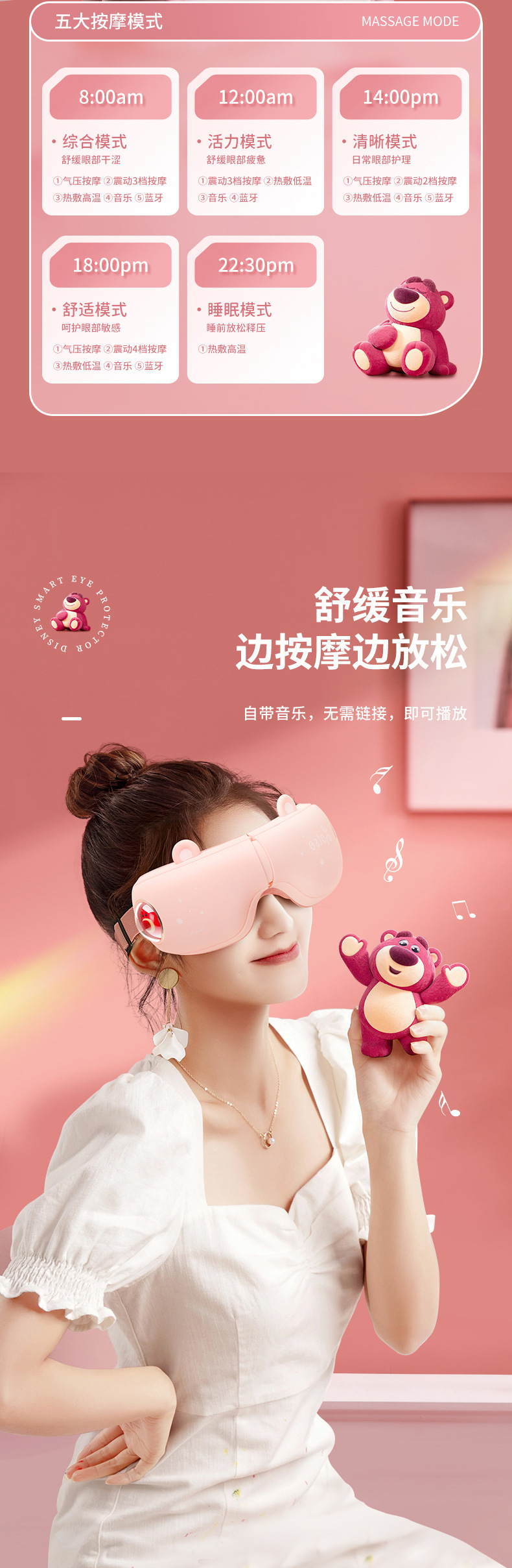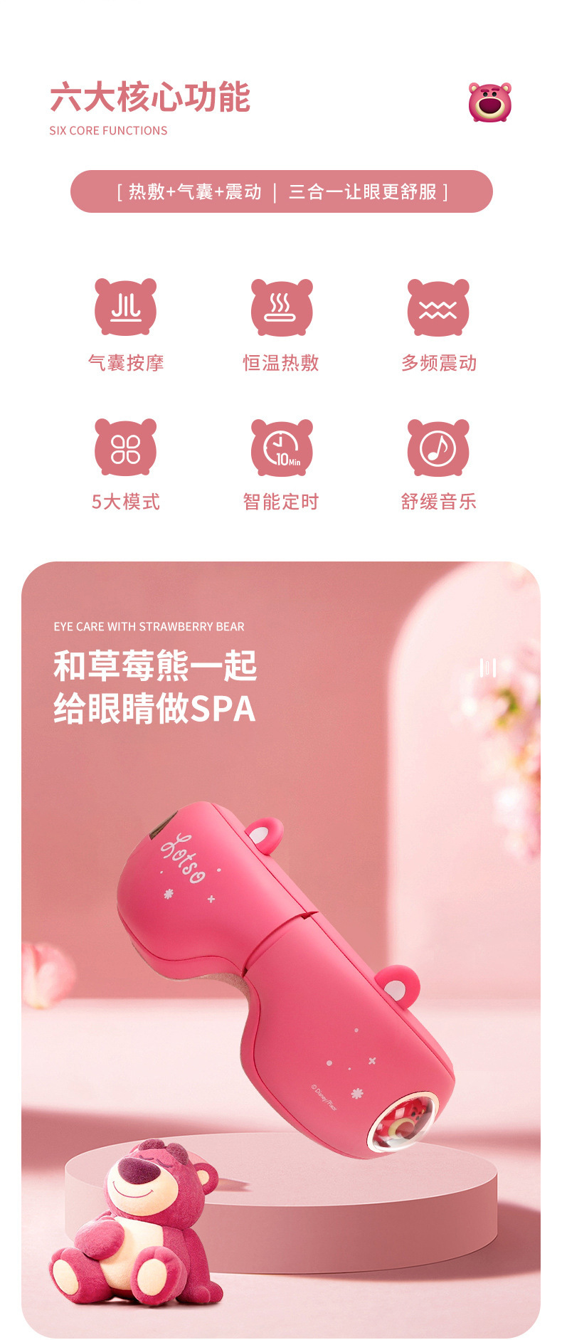 【呵护双眼好视力,舒缓眼疲劳!】草莓熊眼按摩器,护眼仪,放松眼部肌肉,祛除疲劳。气囊按摩,智能护眼,减轻压力。稳坐沙发,看剧不累。一起给眼睛做SPA!七夕情人节礼物