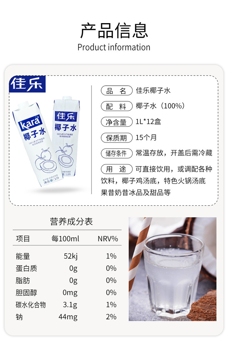 【送活力】1L佳乐COCO椰子水鲜甜可口 冷热皆宜