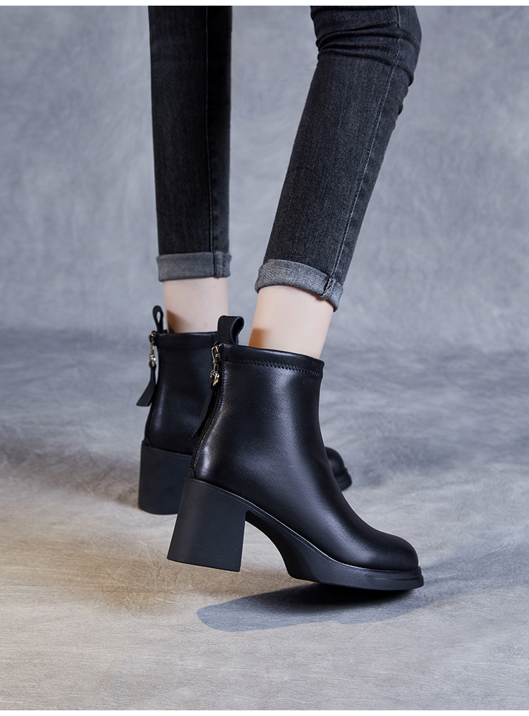 ZM 233523真皮粗高跟时装马丁靴及踝靴瘦瘦靴短靴
