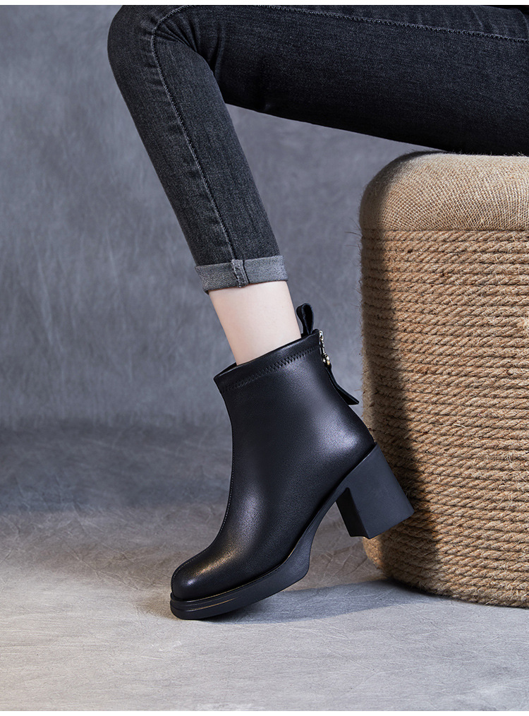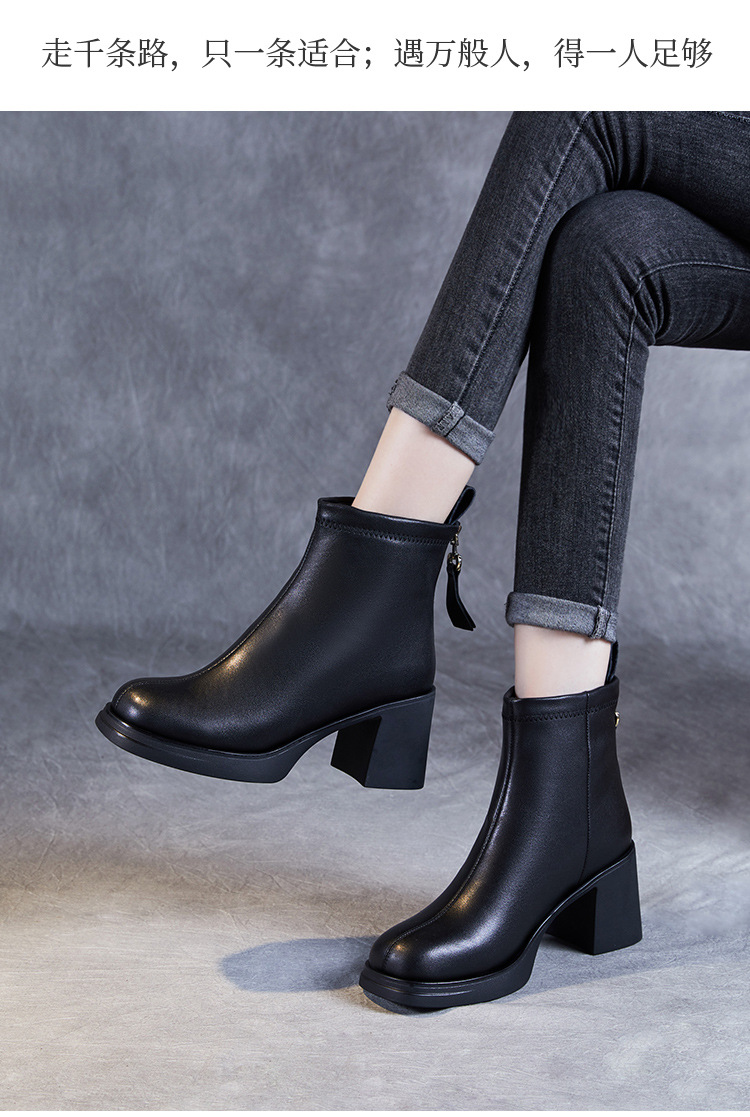 ZM 233523真皮粗高跟时装马丁靴及踝靴瘦瘦靴短靴 商品图1