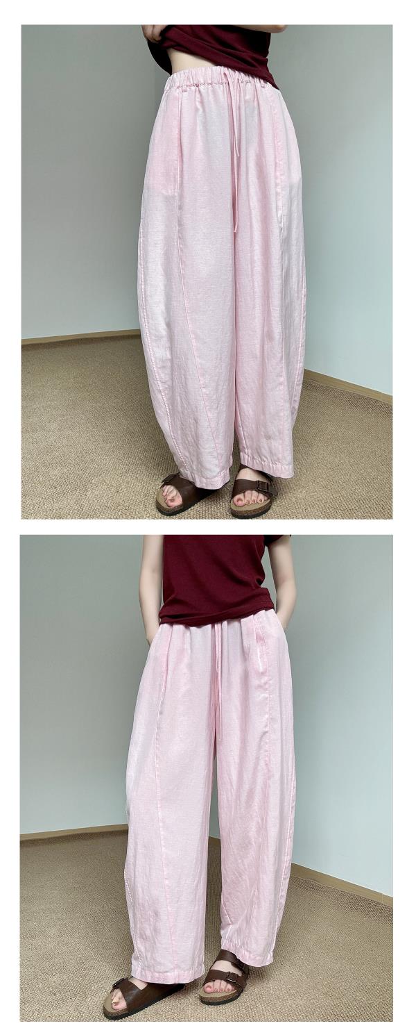 奥篇日系亚麻裤 休闲松紧腰立体空气香蕉裤