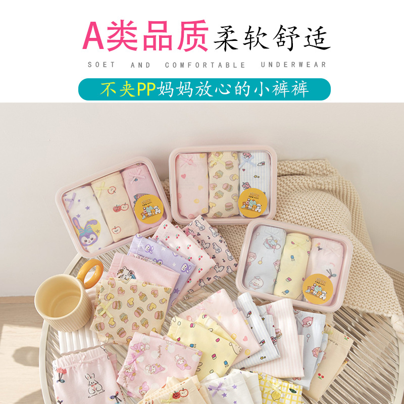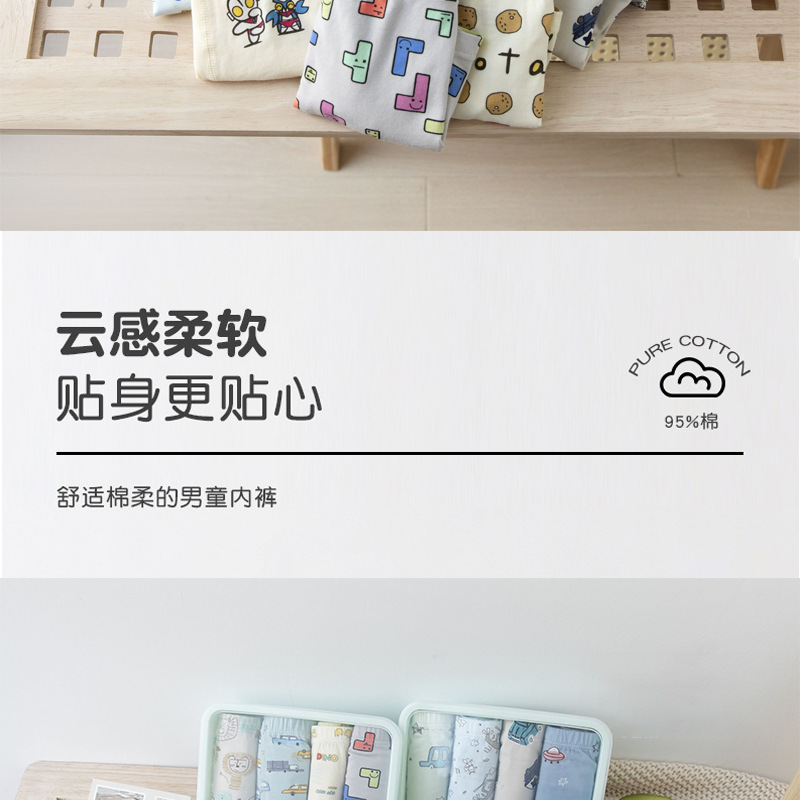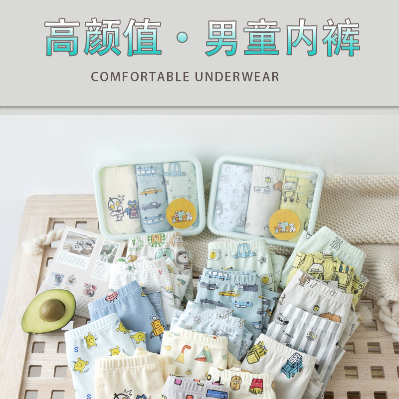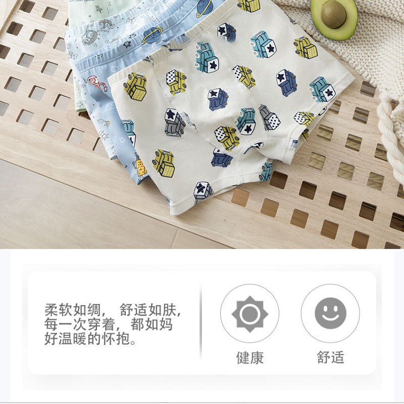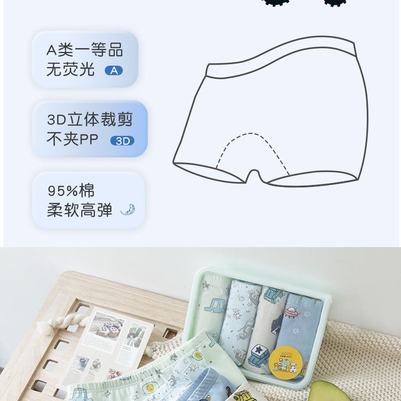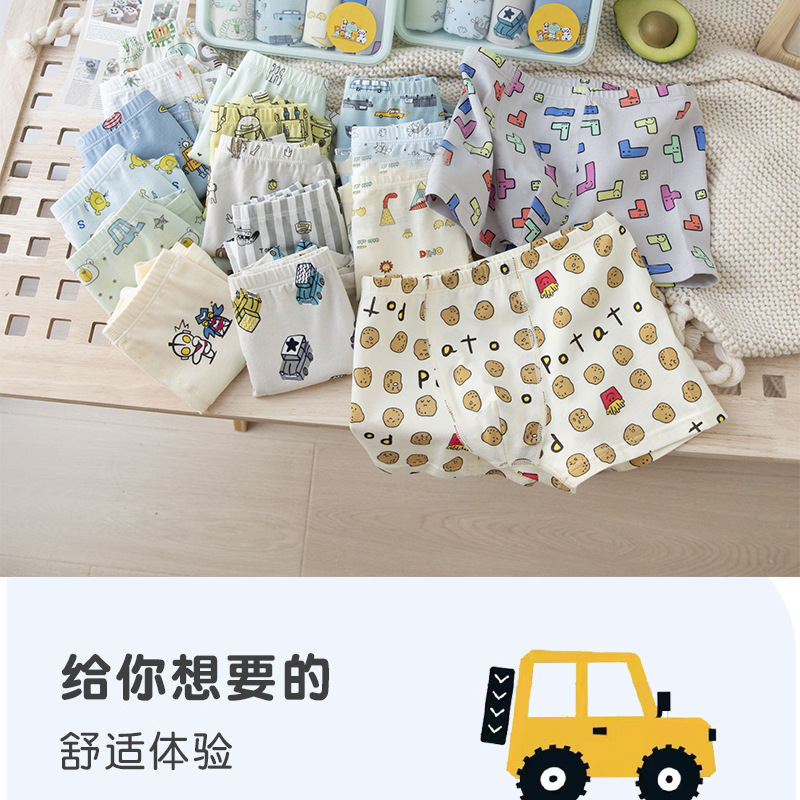 【高品质不夹屁屁,妈妈放心的小裤裤】4条装儿童内裤 女童男童纯棉a类 图案随机 平角卡通中大童短裤 便当盒装学生棉内裤-QQ