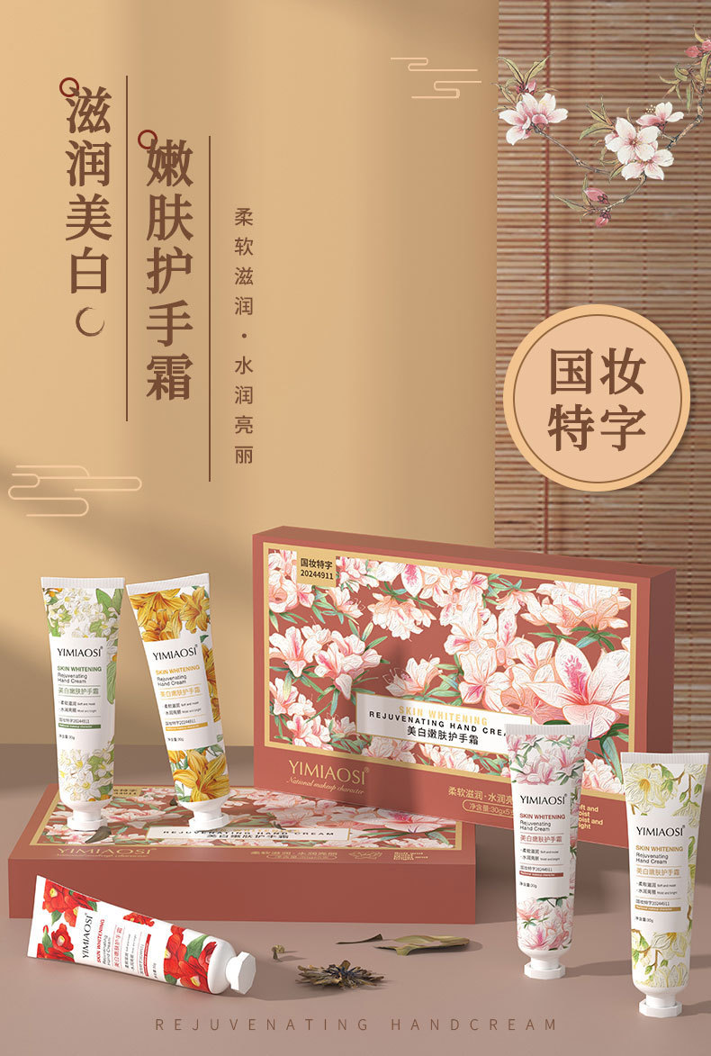 秋冬季【美白嫩肤护手霜30g】滋润保湿花香护手霜30g *5支礼盒套装