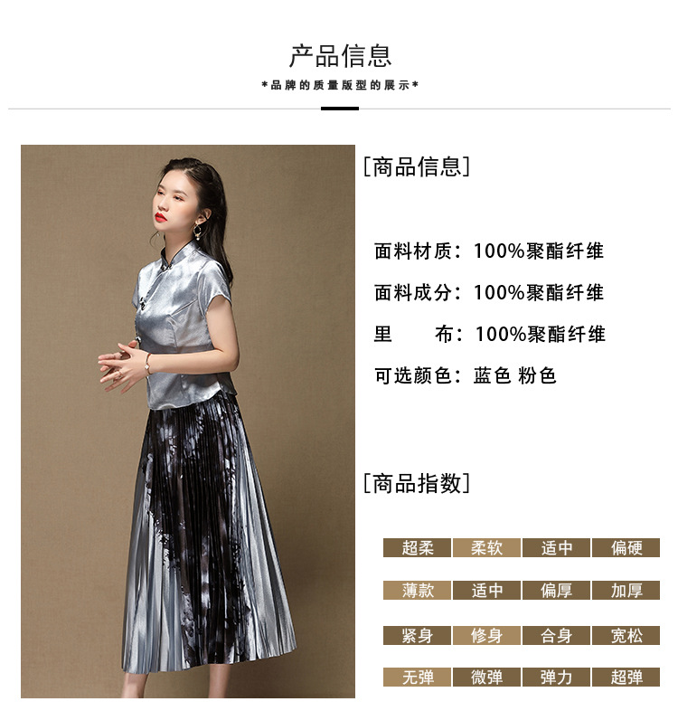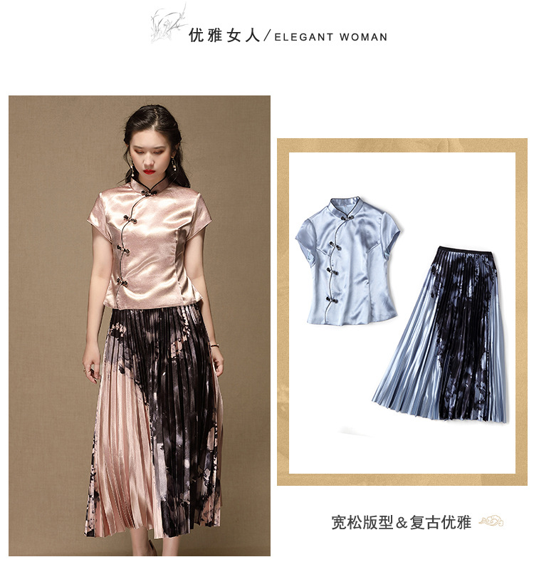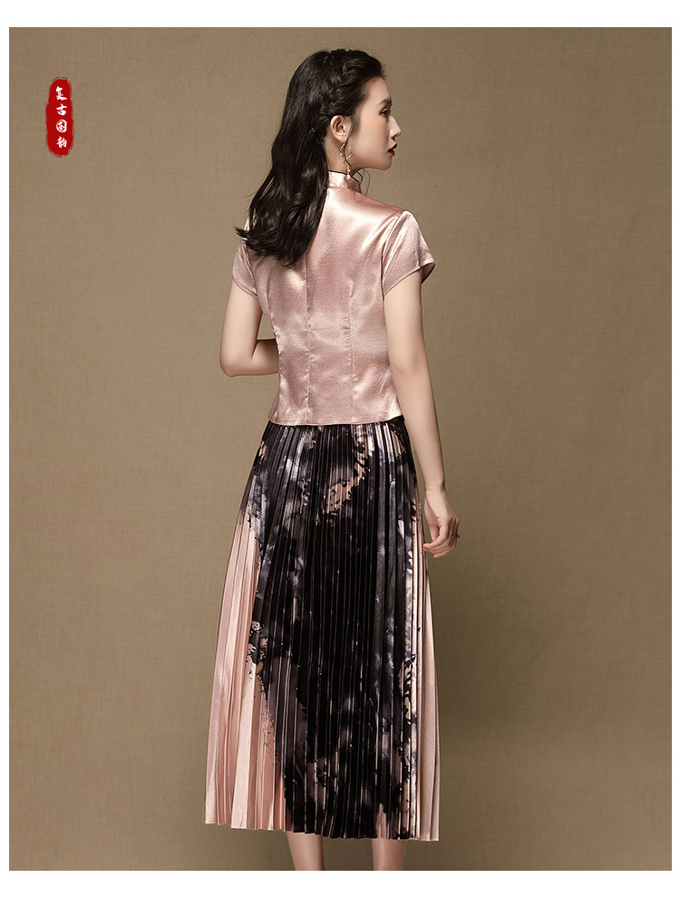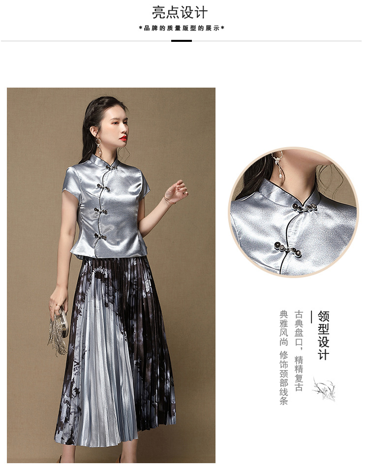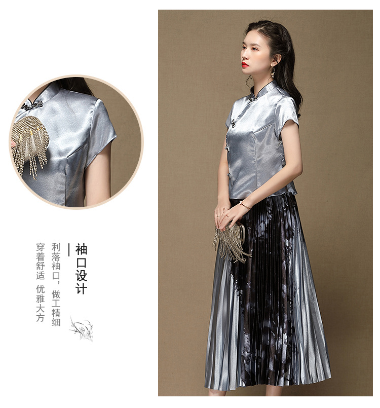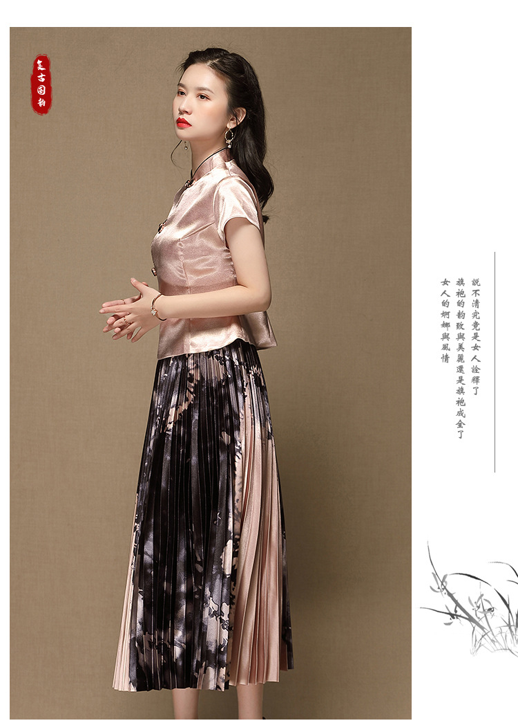上海旗袍厂AYK-QF-200315水墨压褶长款半身裙国风改良短袖唐装上衣女2021夏时尚国潮套装女