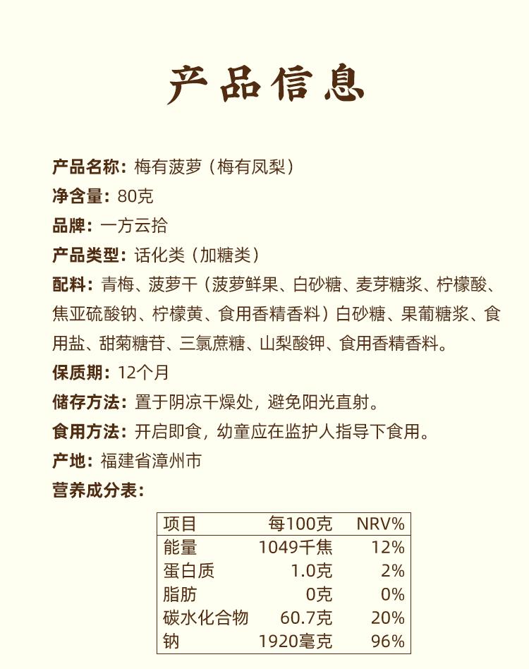 酸甜咸香 无核解腻 | 一方云拾梅有菠萝/梅有芒果/青梅夹厚切凤梨干 果干蜜饯果脯零食 80g*2袋/3袋/4袋