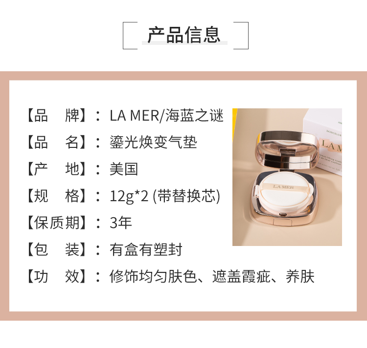 【专柜1120】 Lamer海蓝之谜贵妇鎏光焕变气垫BB霜1#3# 带替换装