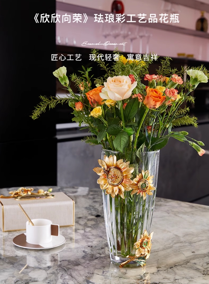 【彼达思】罗比罗丹《欣欣向荣》花瓶珐琅彩工艺创意现代轻奢茶几插花摆件