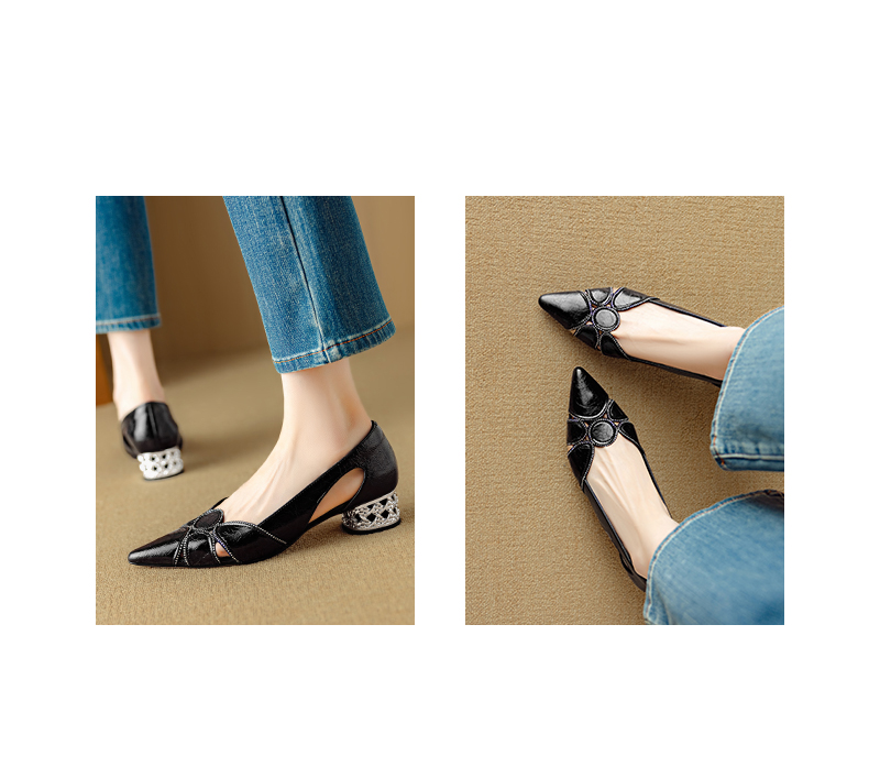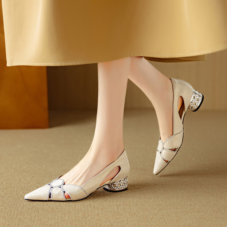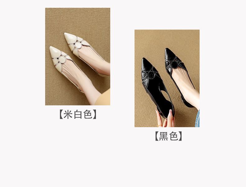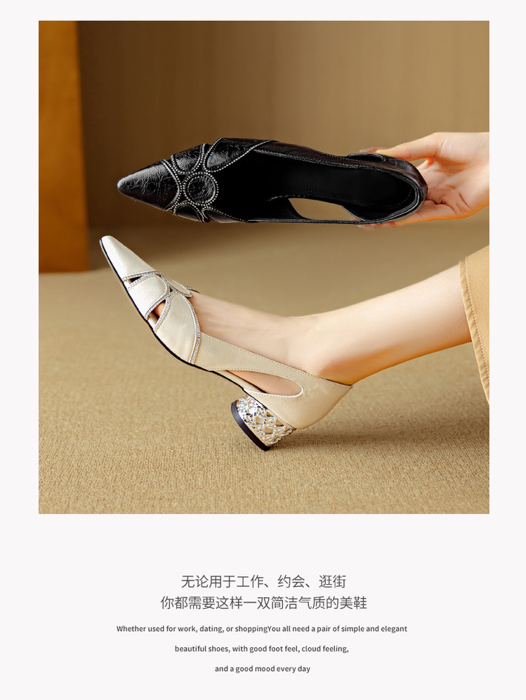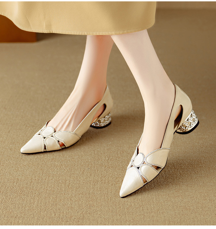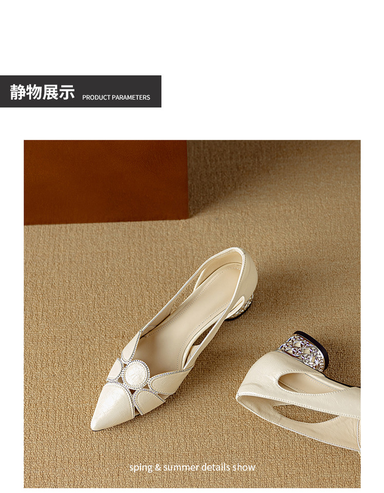 【预售5天】法式优雅镂空透气中跟单鞋女新款夏真皮尖头侧空凉鞋通勤瓢鞋DB&M6372