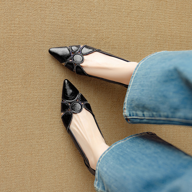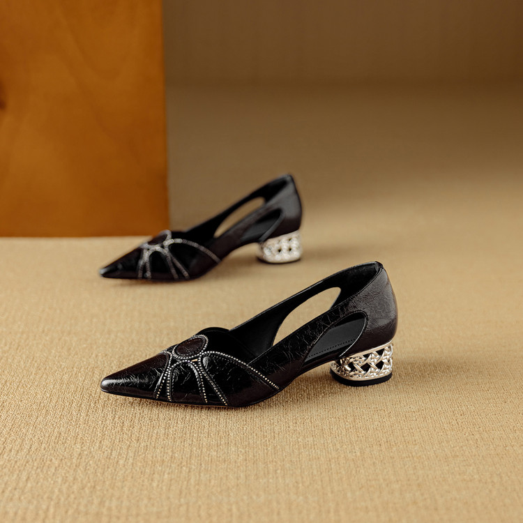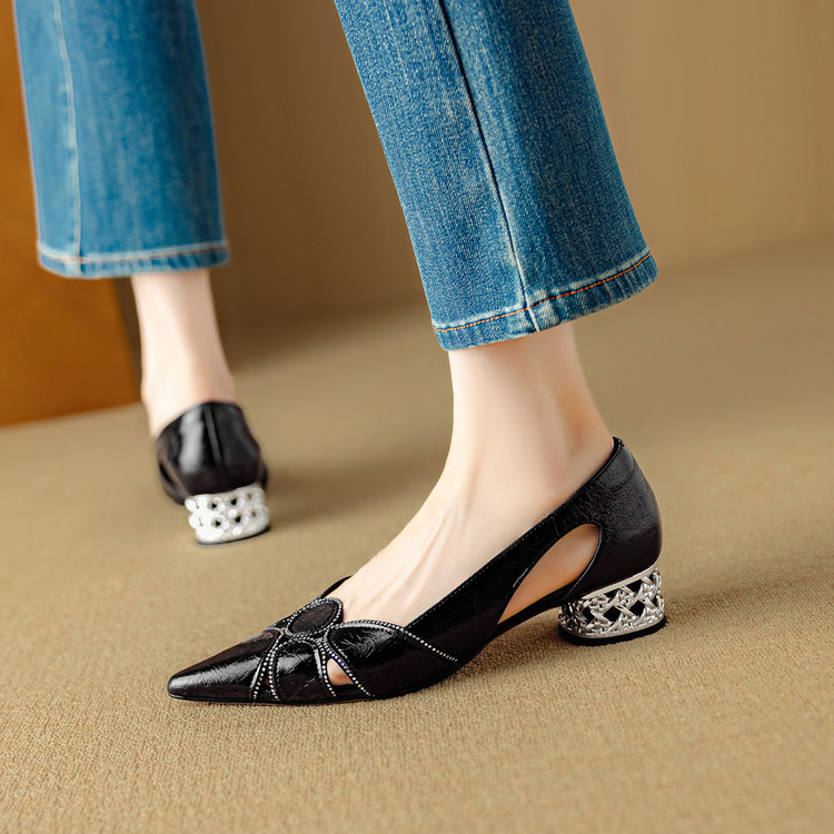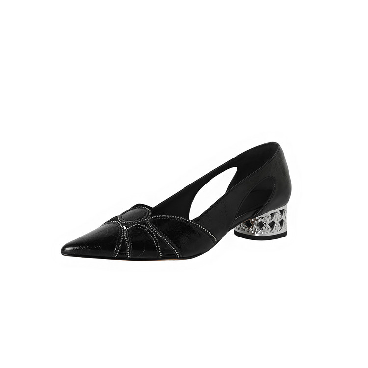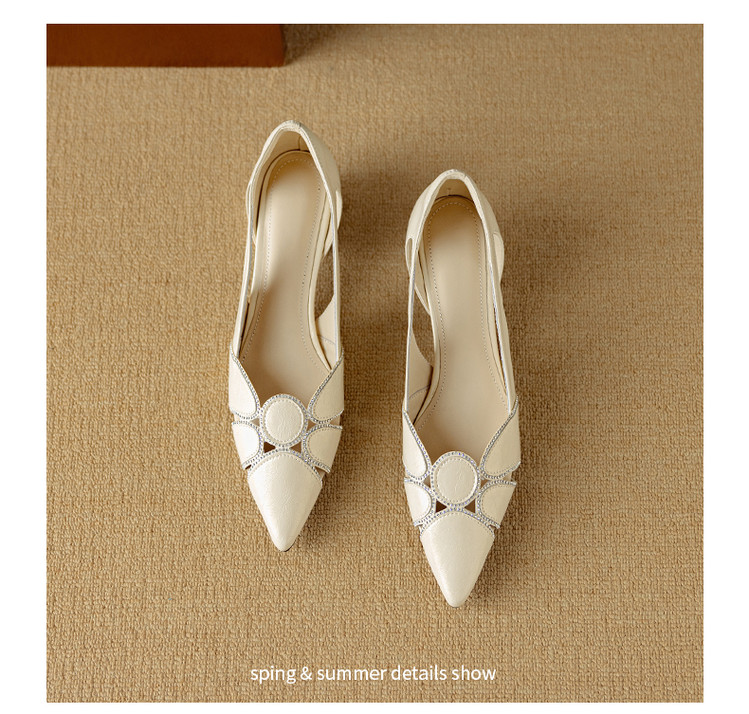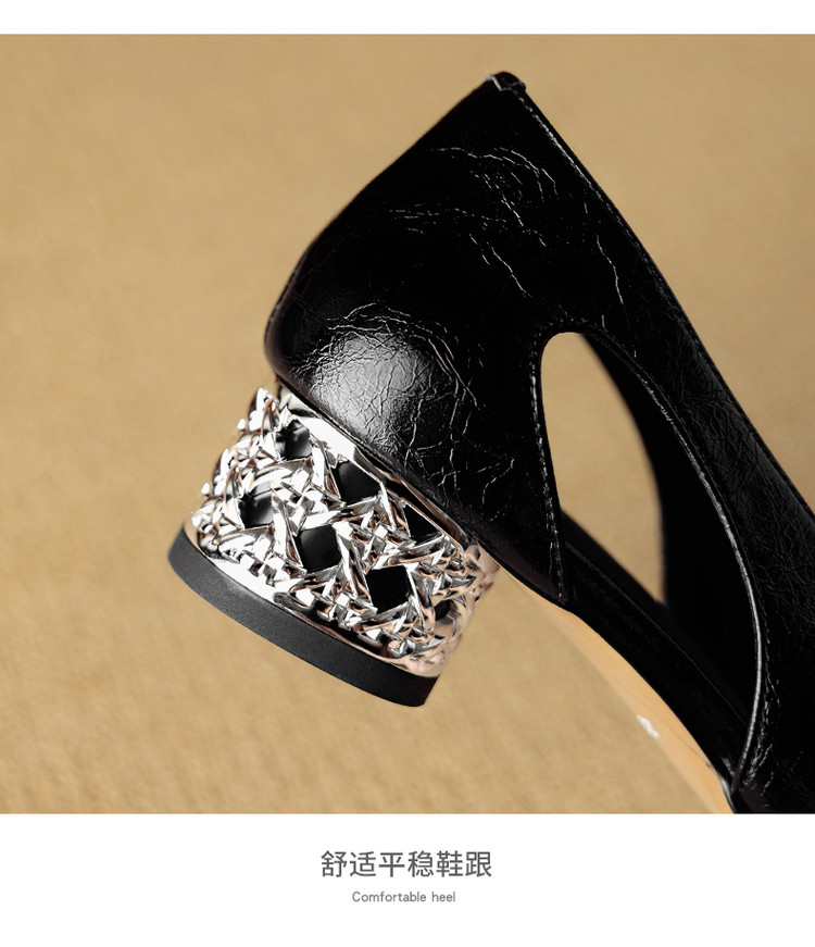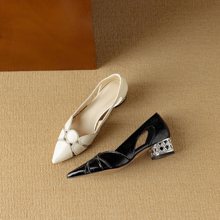 【预售5天】法式优雅镂空透气中跟单鞋女新款夏真皮尖头侧空凉鞋通勤瓢鞋DB&M6372