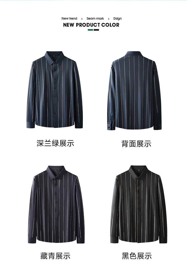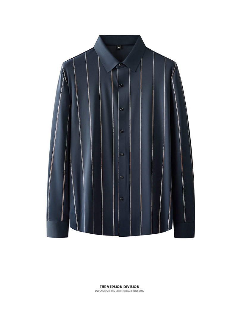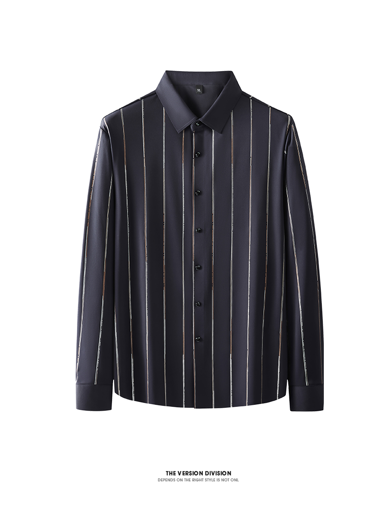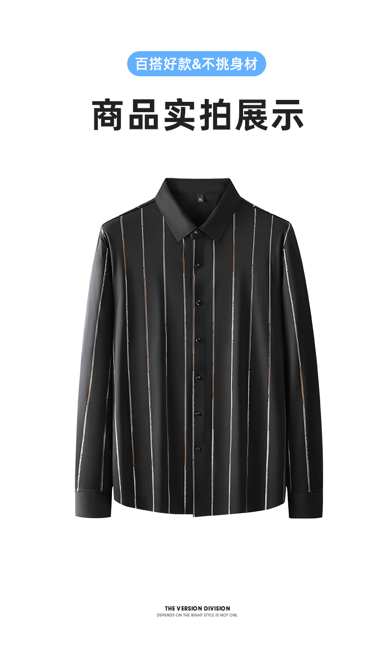 【新款DK】 大依优型条纹高弹长袖衬衫加肥加大男装弹力免烫大号大码衬衣男士