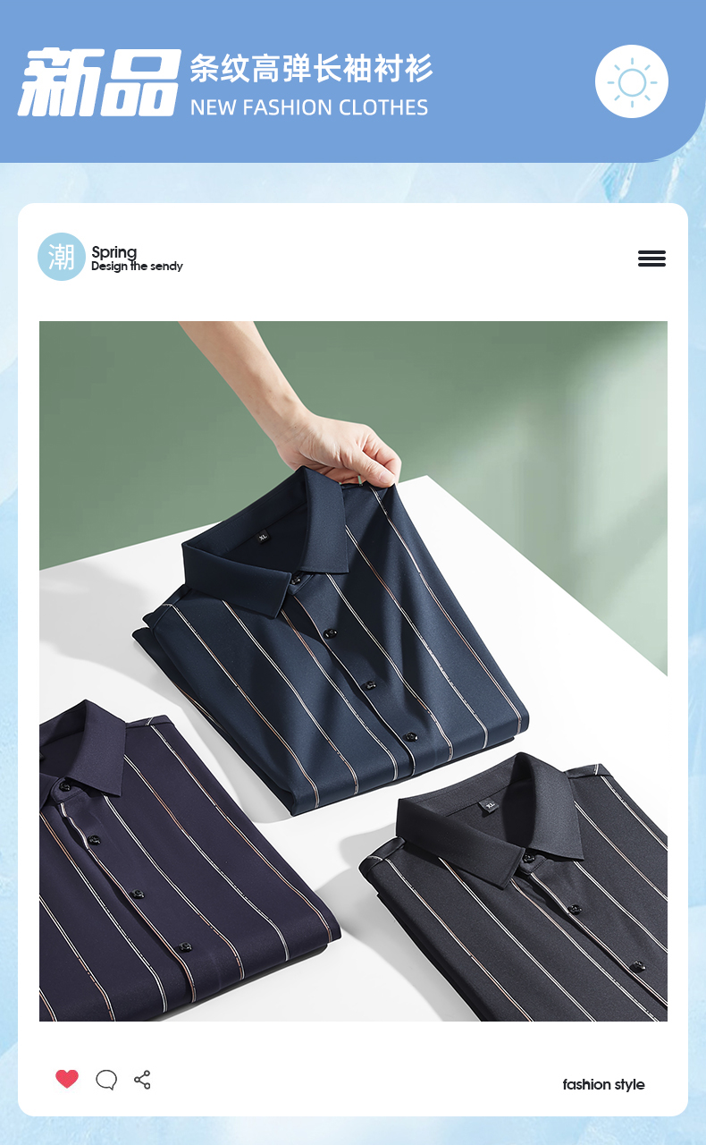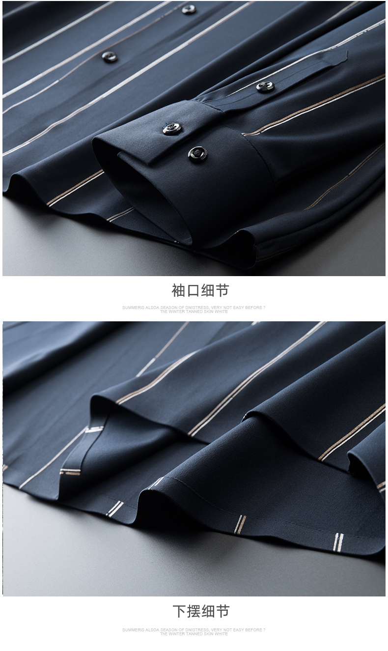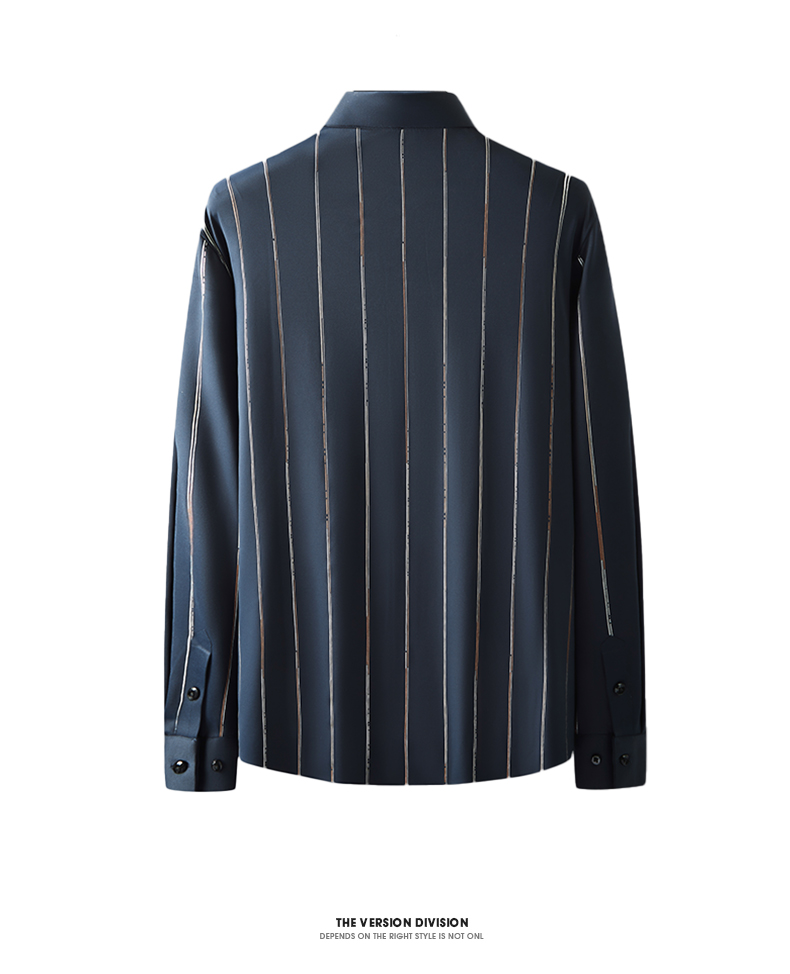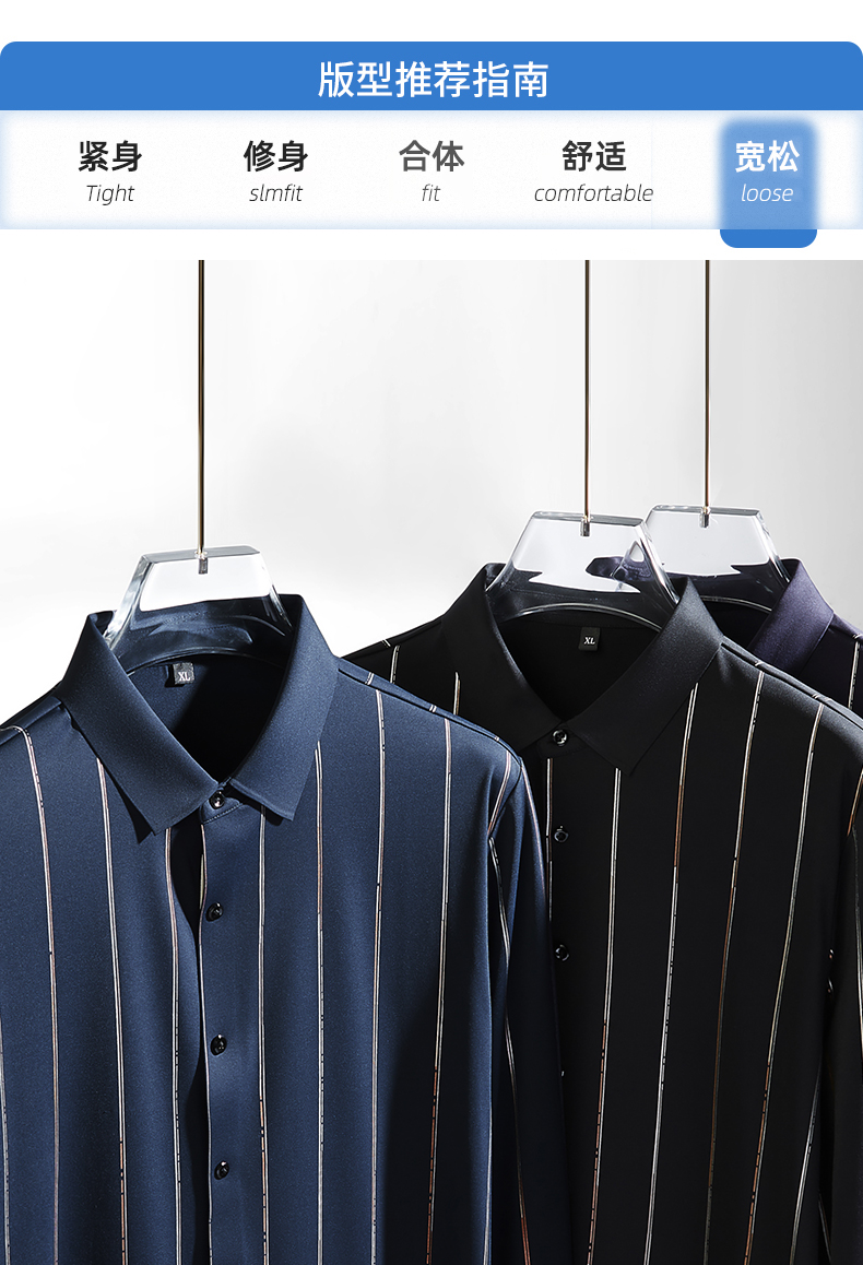 【新款DK】 大依优型条纹高弹长袖衬衫加肥加大男装弹力免烫大号大码衬衣男士