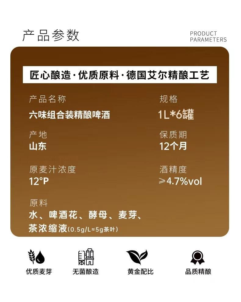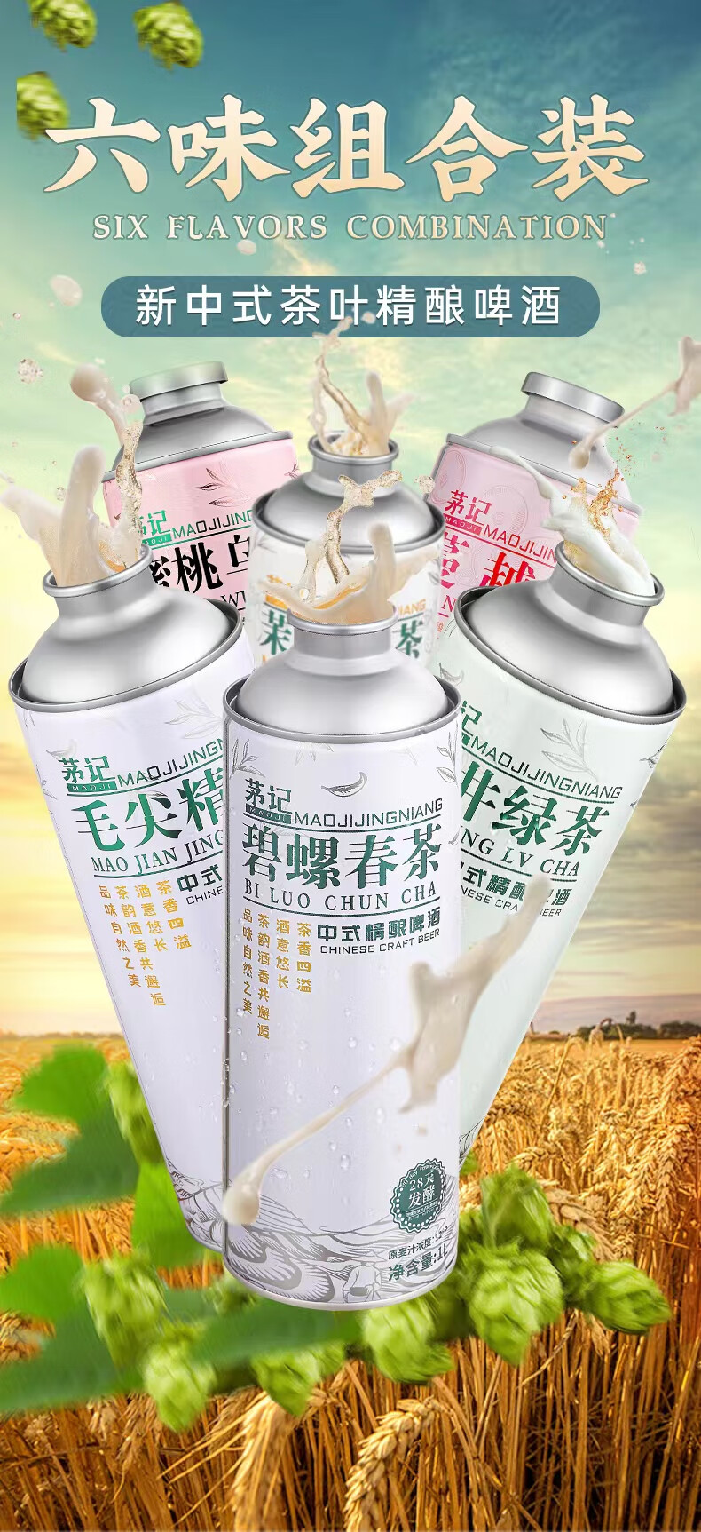 【会员秒杀】茅记 新中式 精酿啤酒 六种口味组合装 1L*6罐整箱