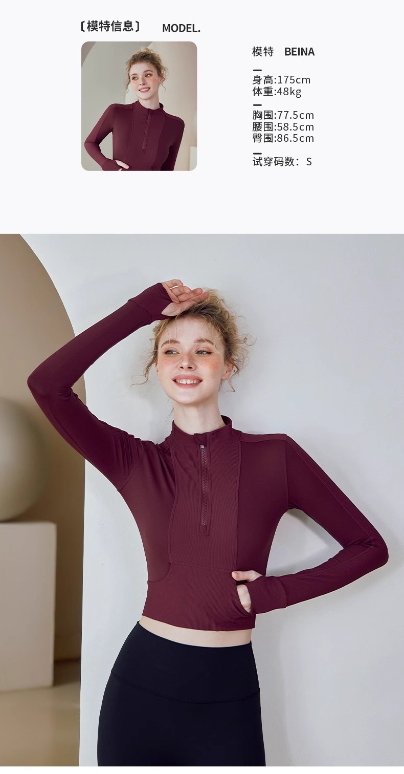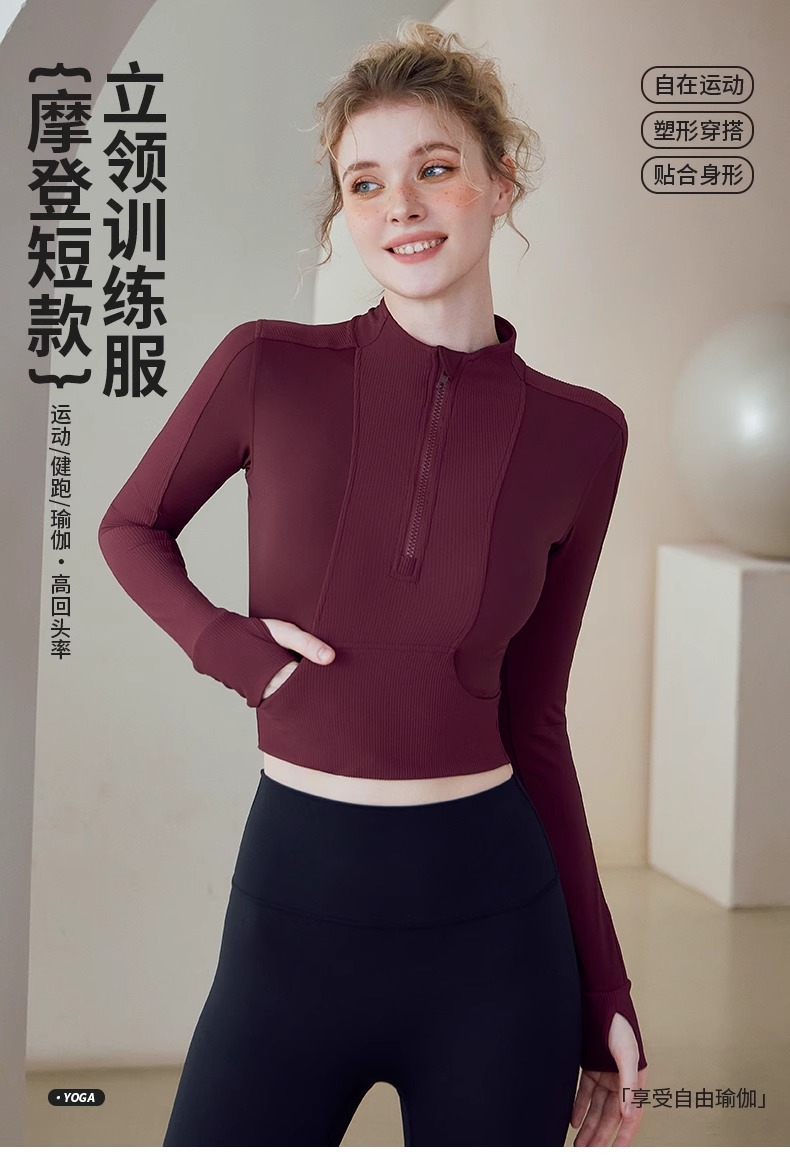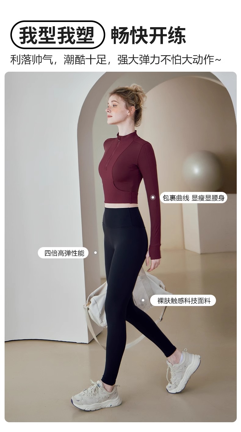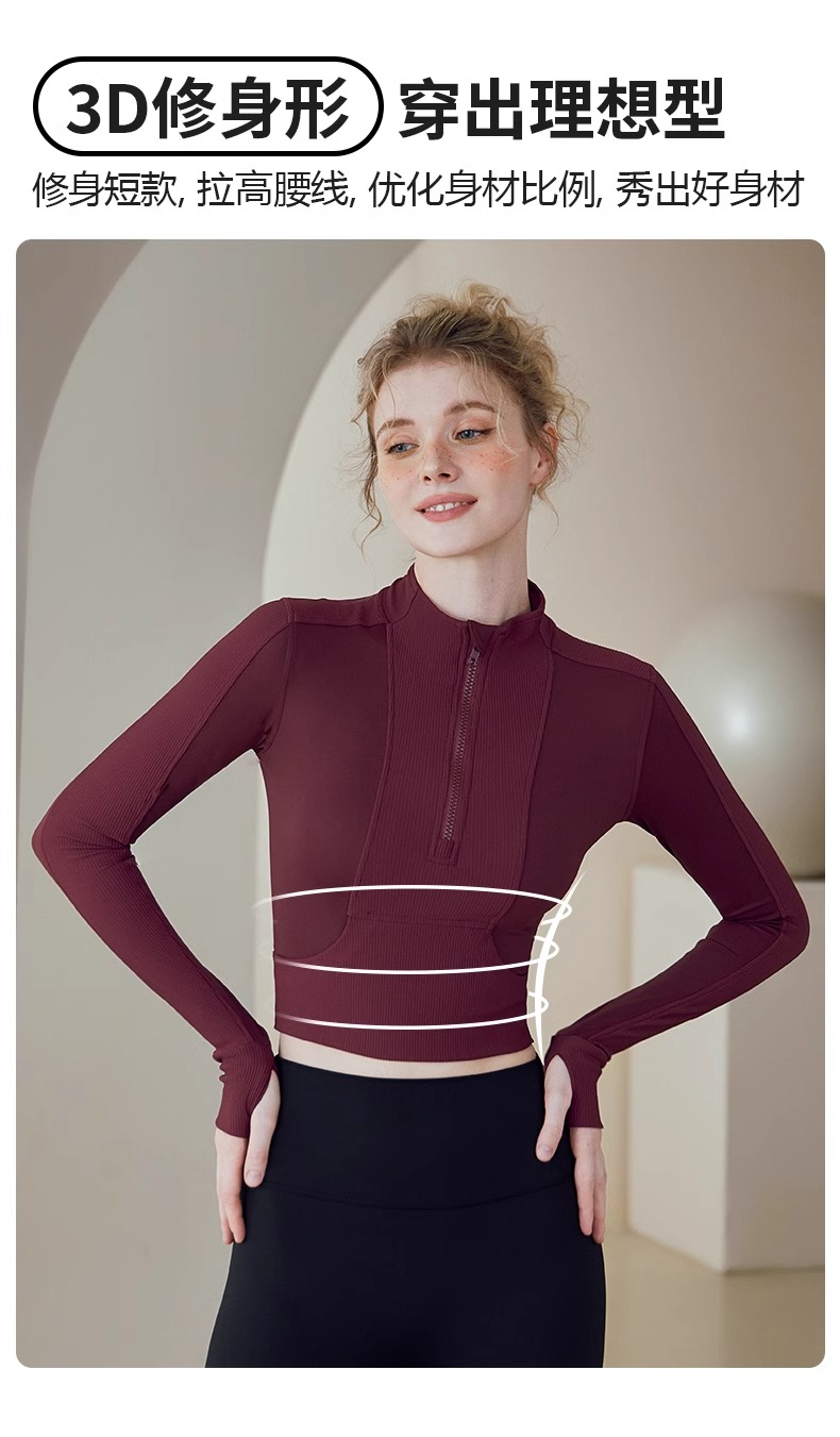 跃牌【健舞健美】系列 晨跑瑜伽服女新款修身显瘦长袖运动露脐夹克上衣8658