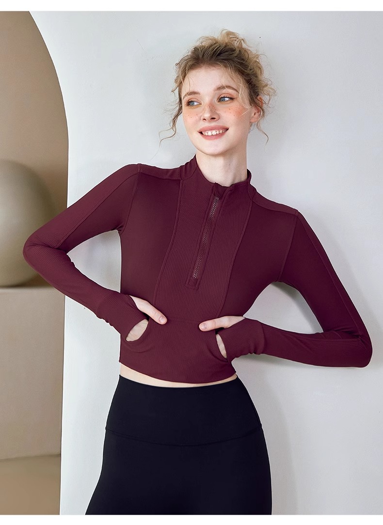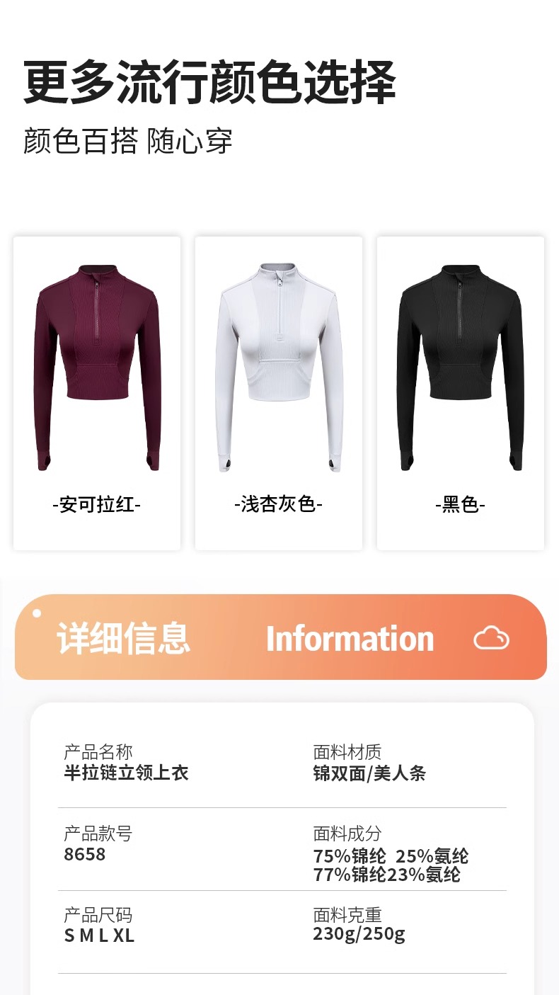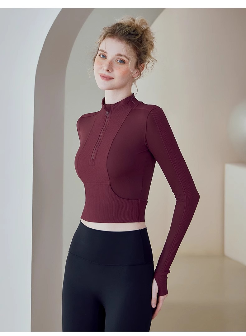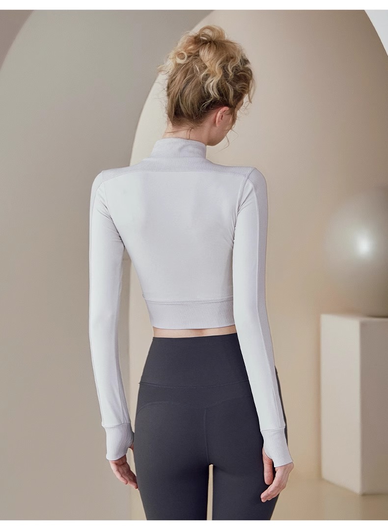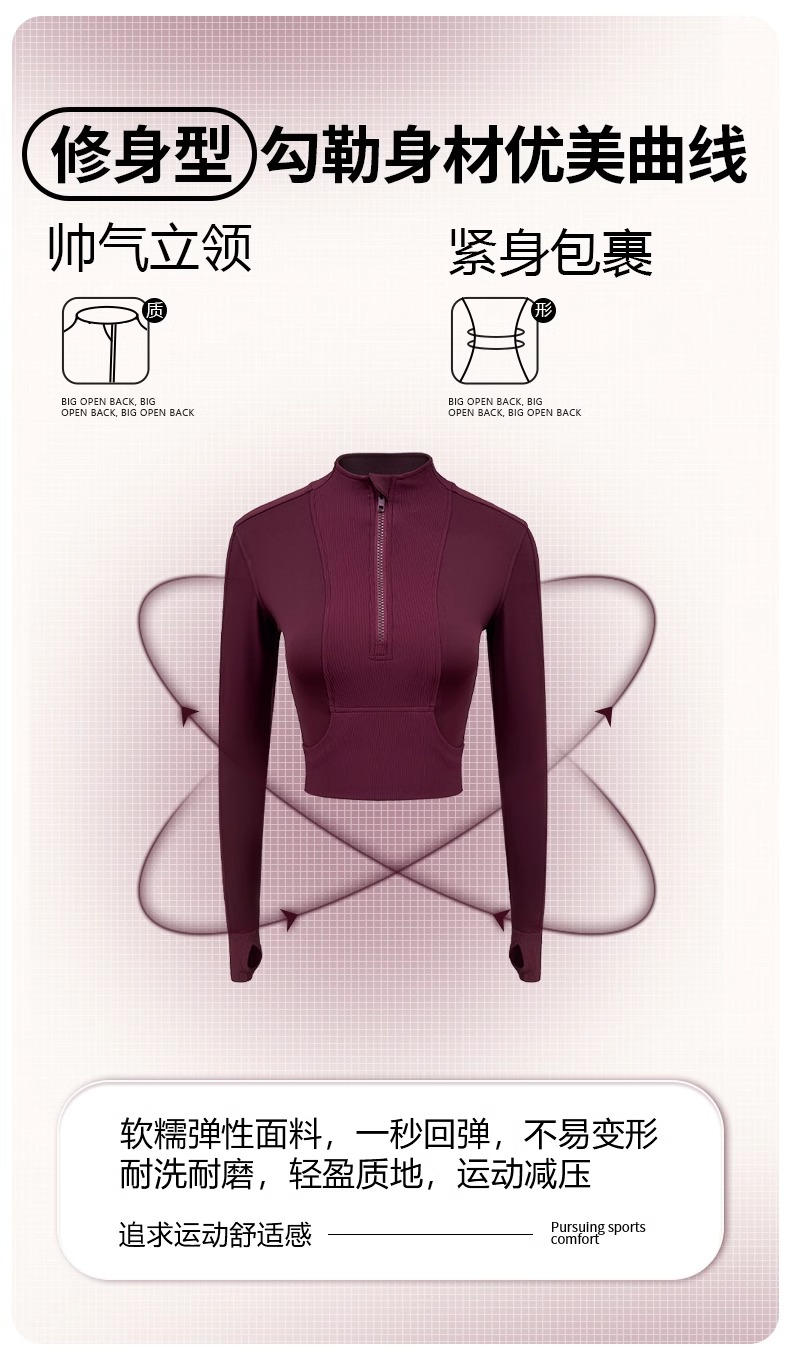 跃牌【健舞健美】系列 晨跑瑜伽服女新款修身显瘦长袖运动露脐夹克上衣8658