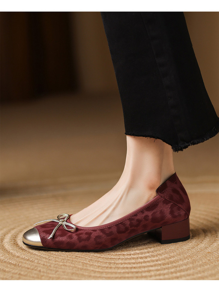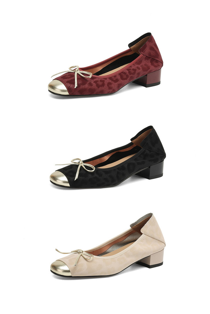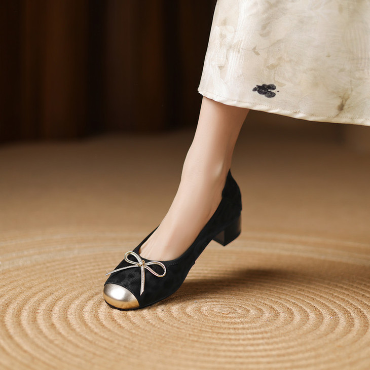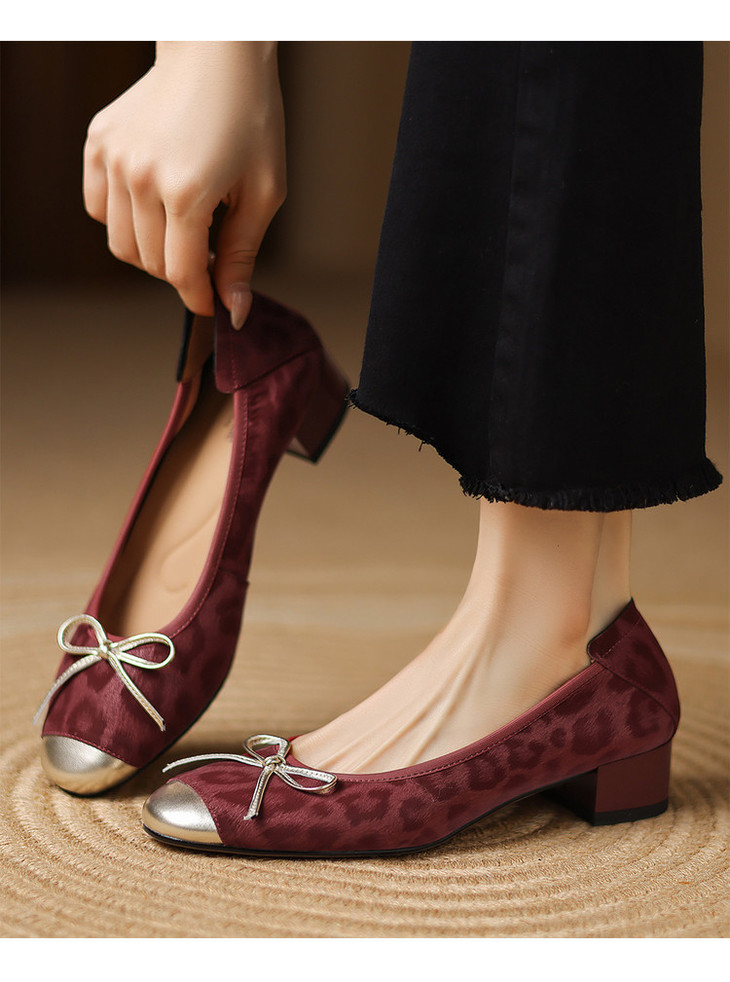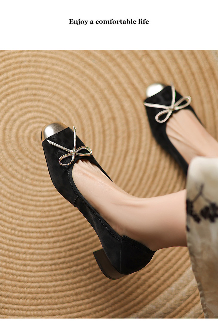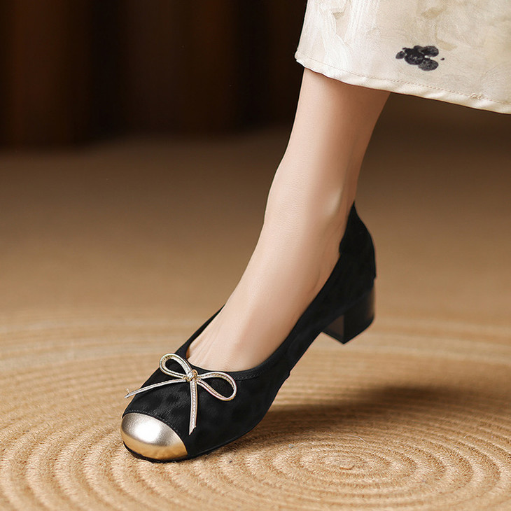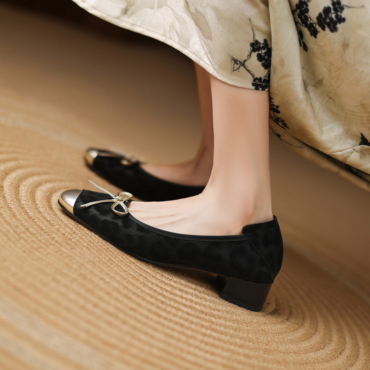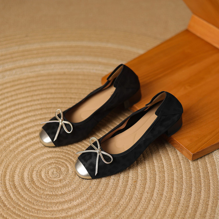 【预售5天】春季拼色真皮蝴蝶结软底女鞋法式复古国风粗跟单鞋女LD&7258
