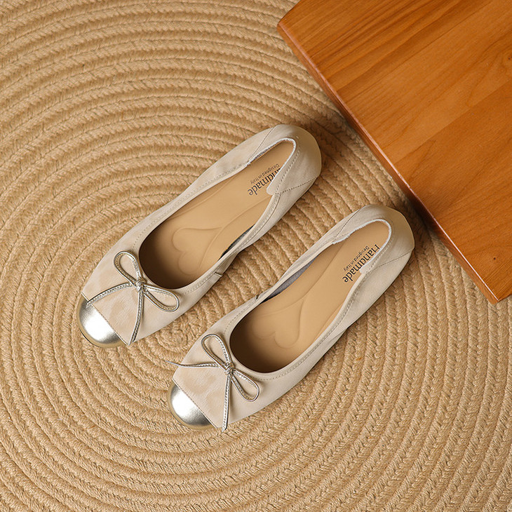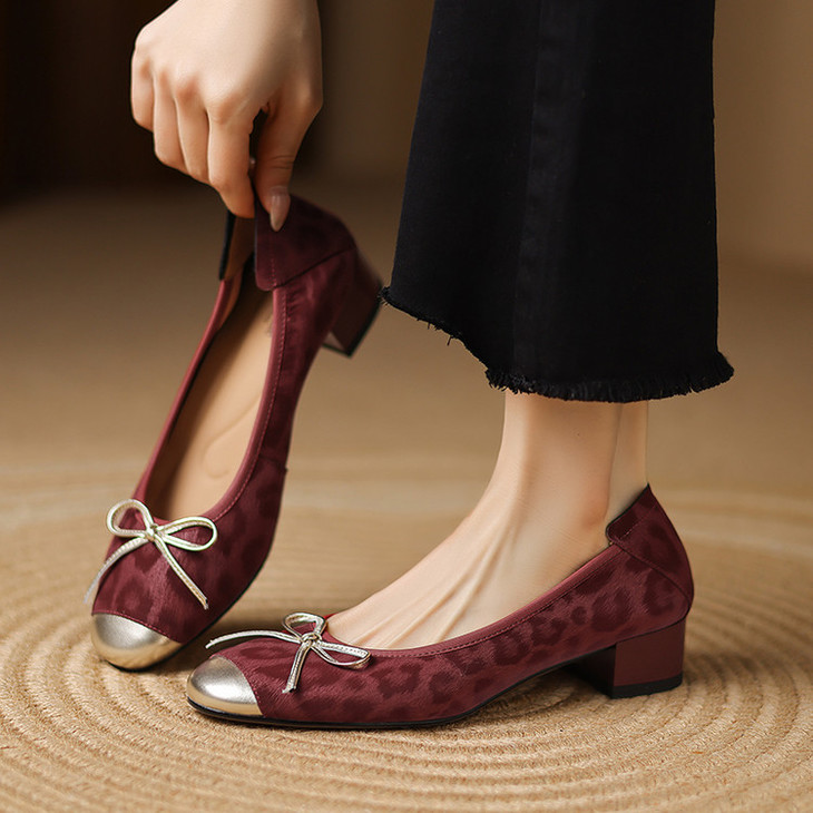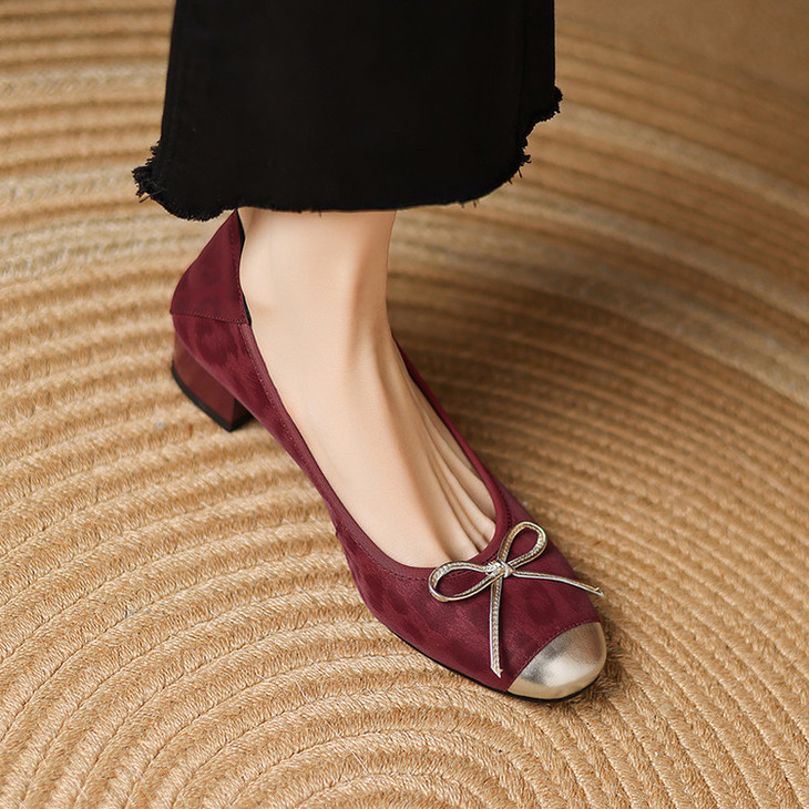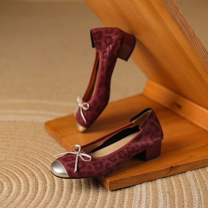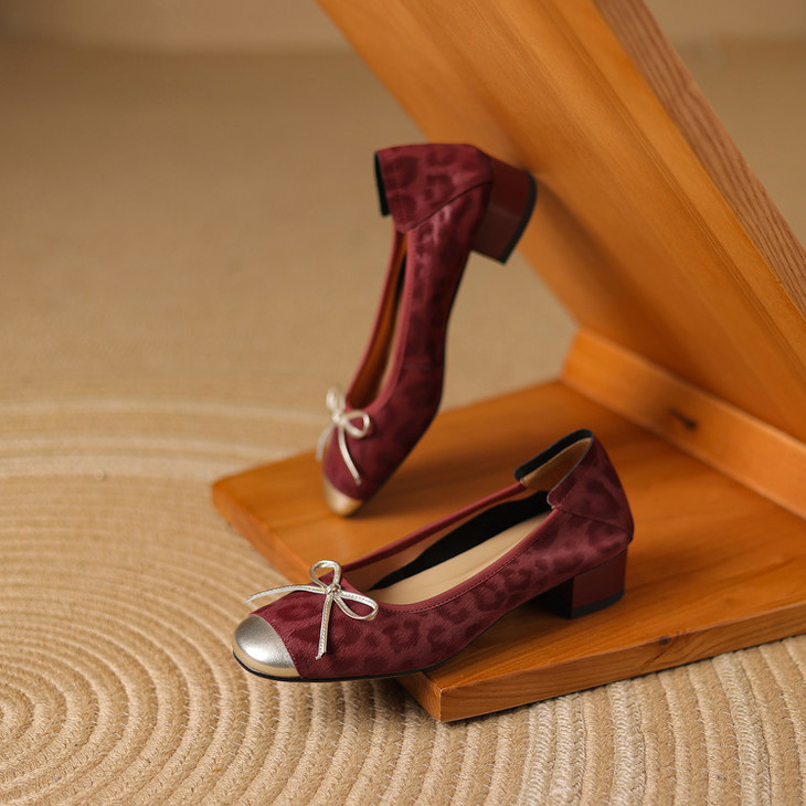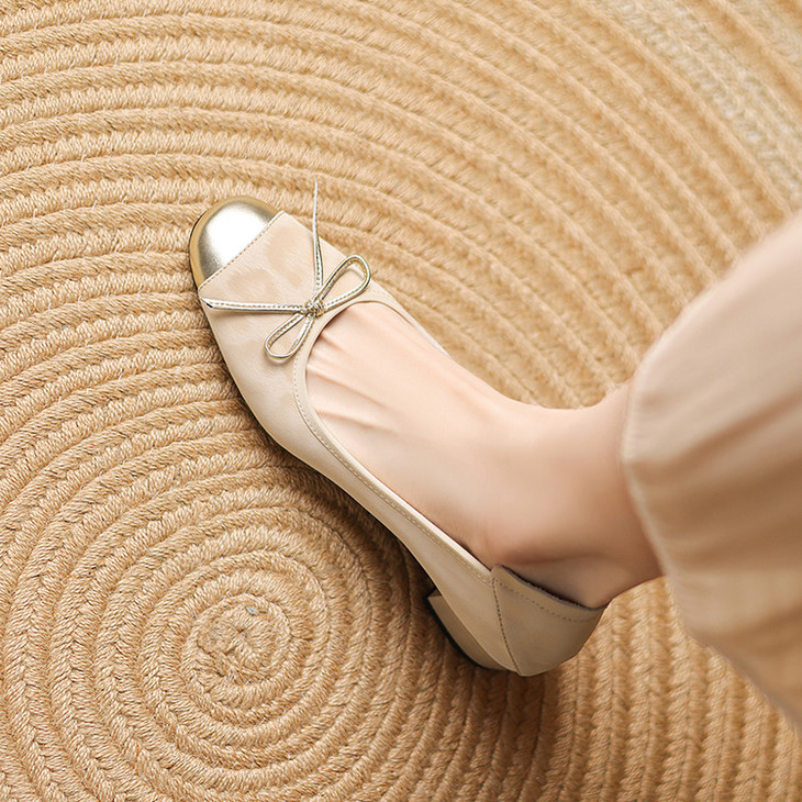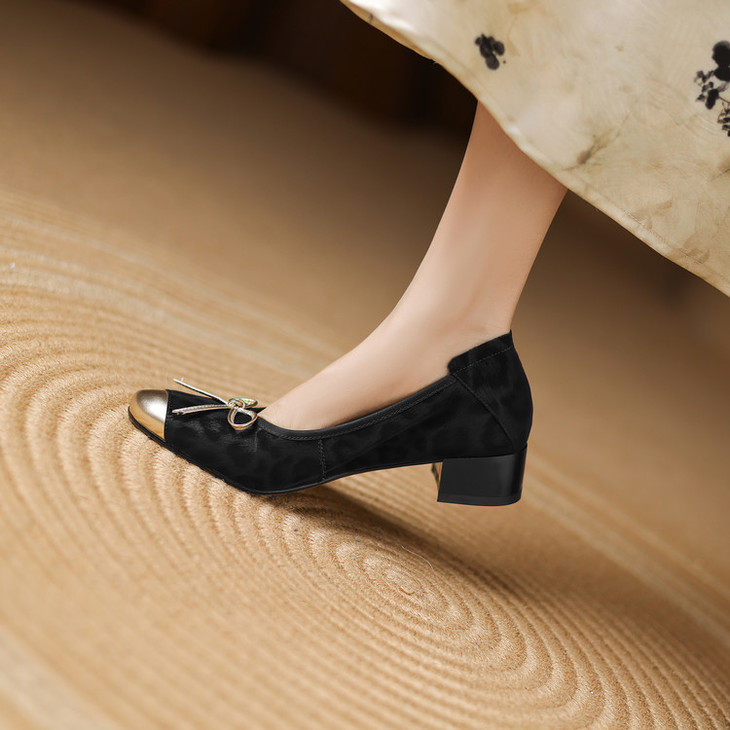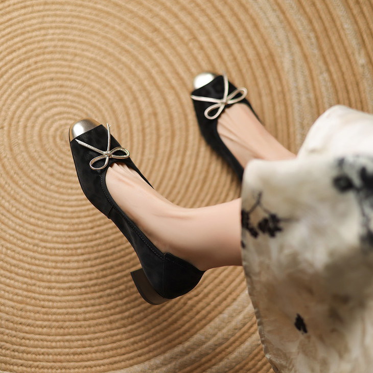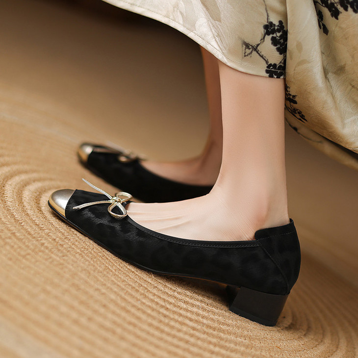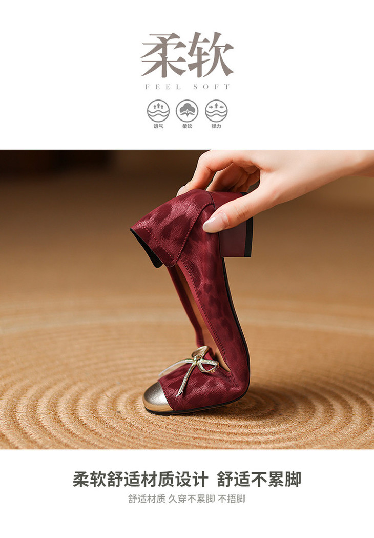 【预售5天】春季拼色真皮蝴蝶结软底女鞋法式复古国风粗跟单鞋女LD&7258