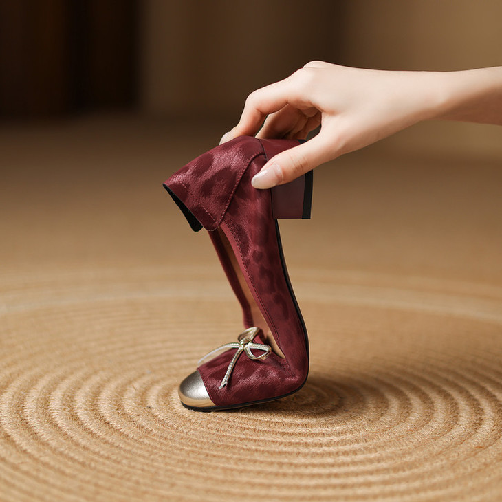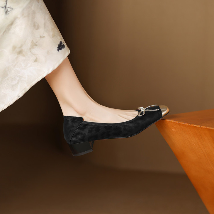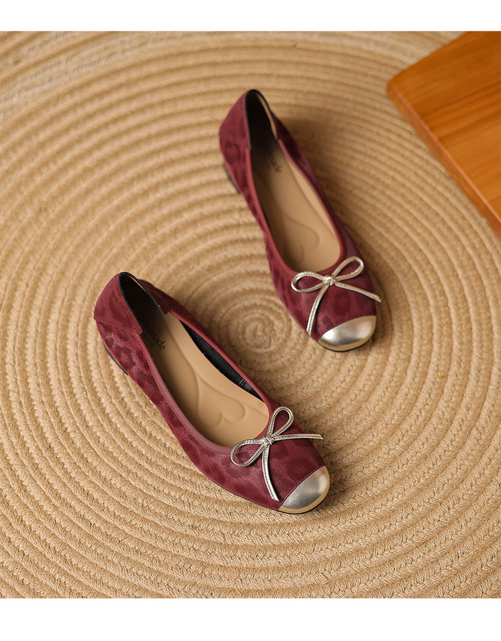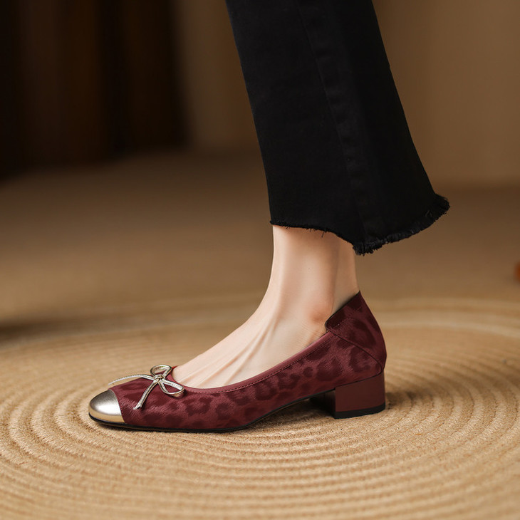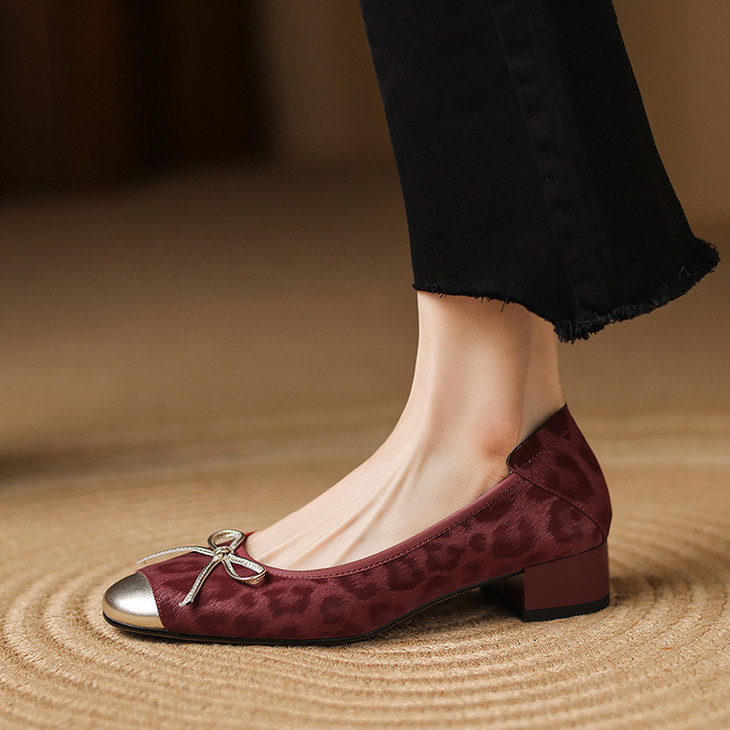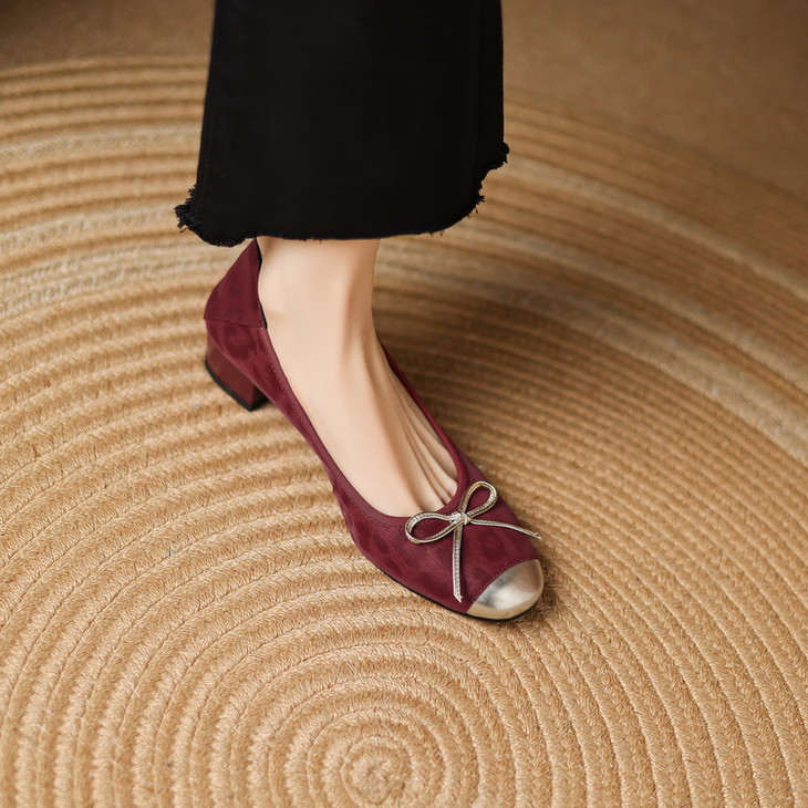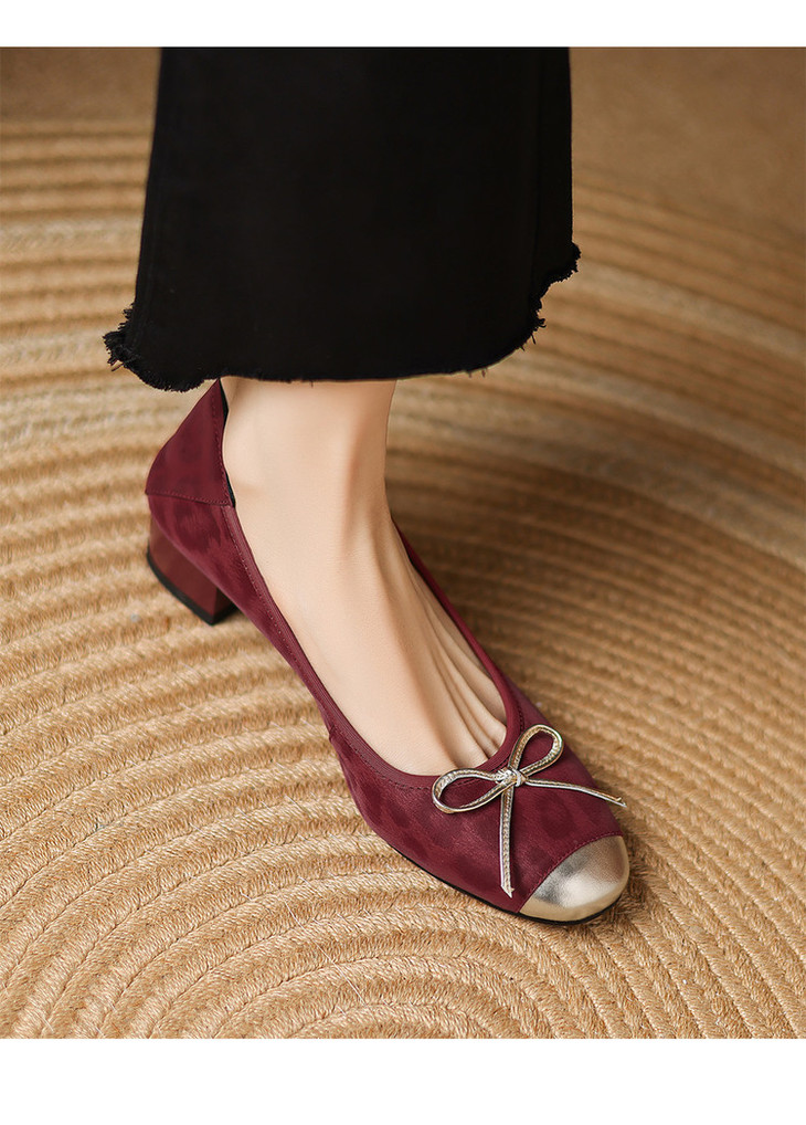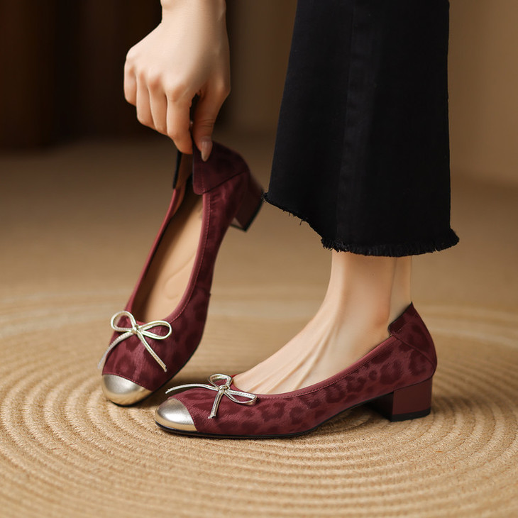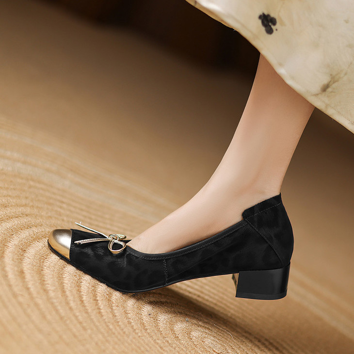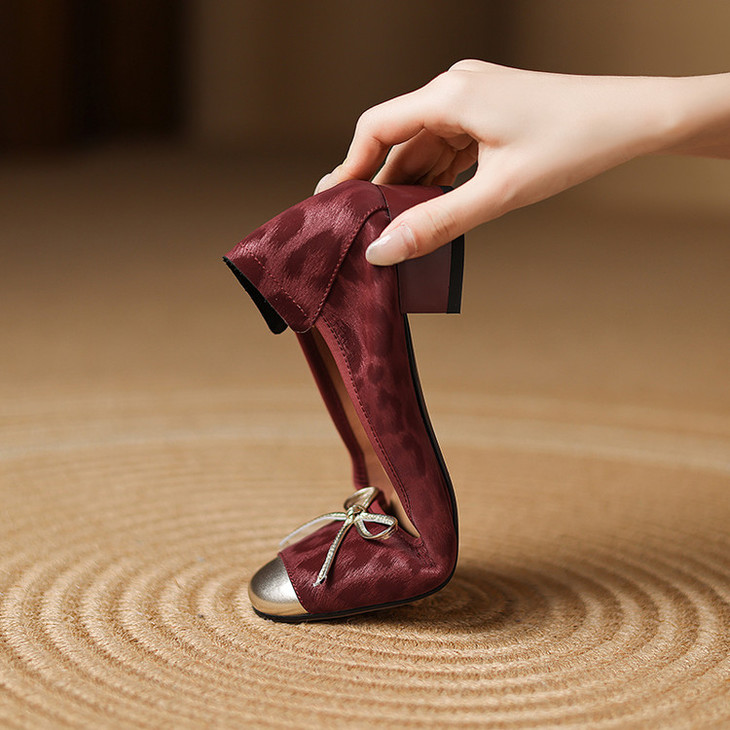 【预售5天】春季拼色真皮蝴蝶结软底女鞋法式复古国风粗跟单鞋女LD&7258