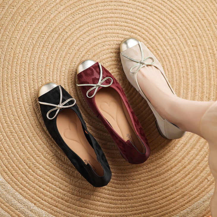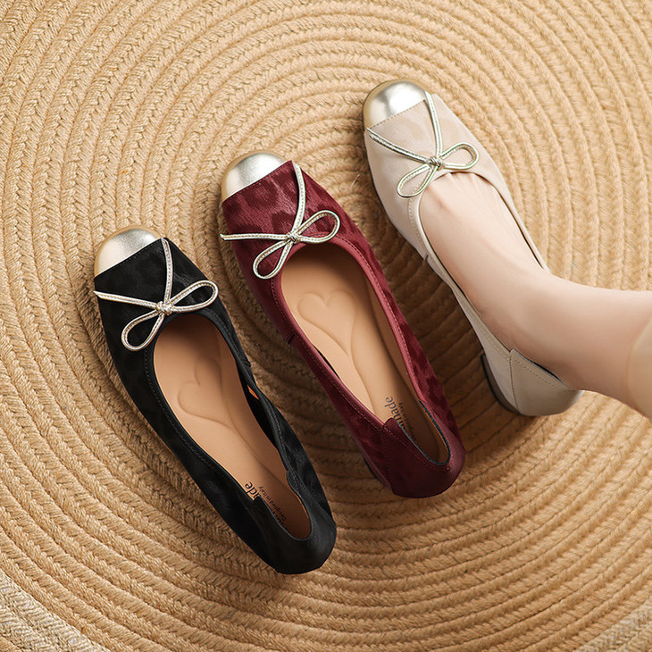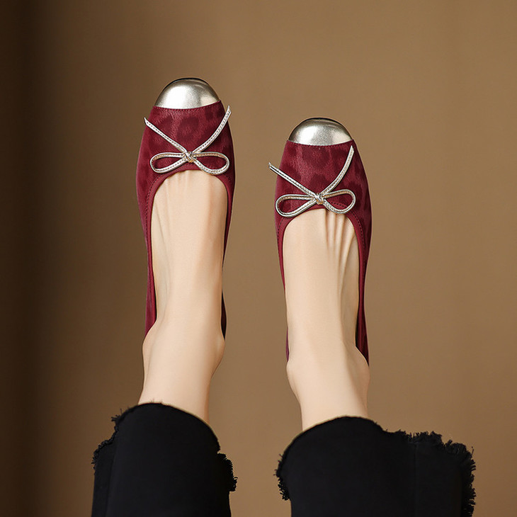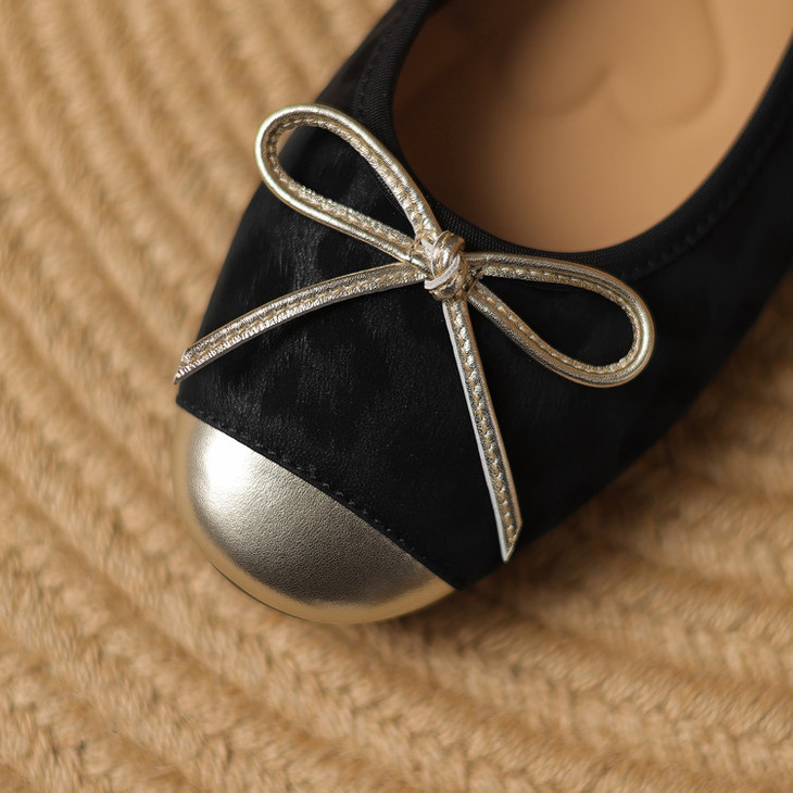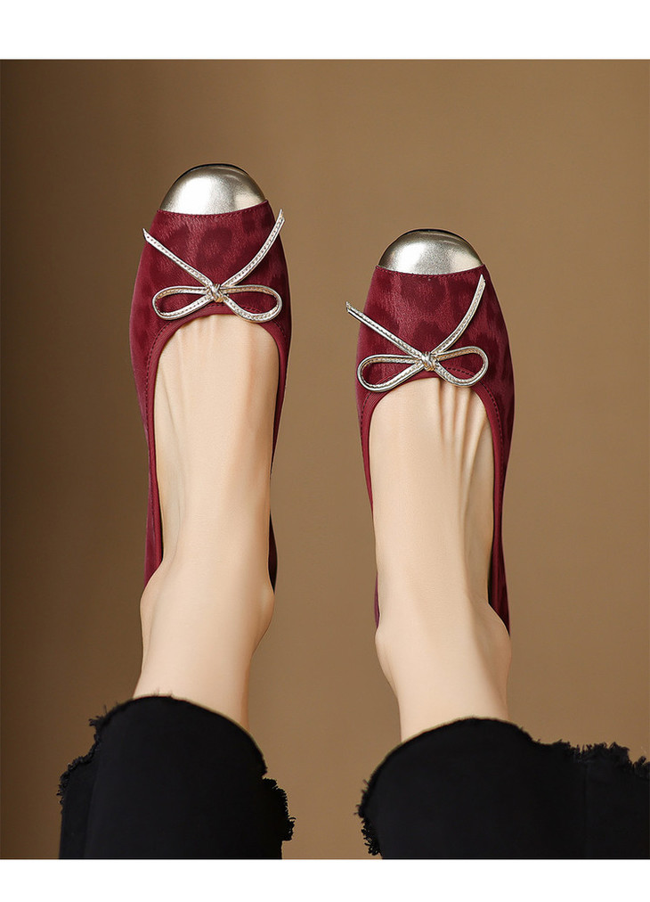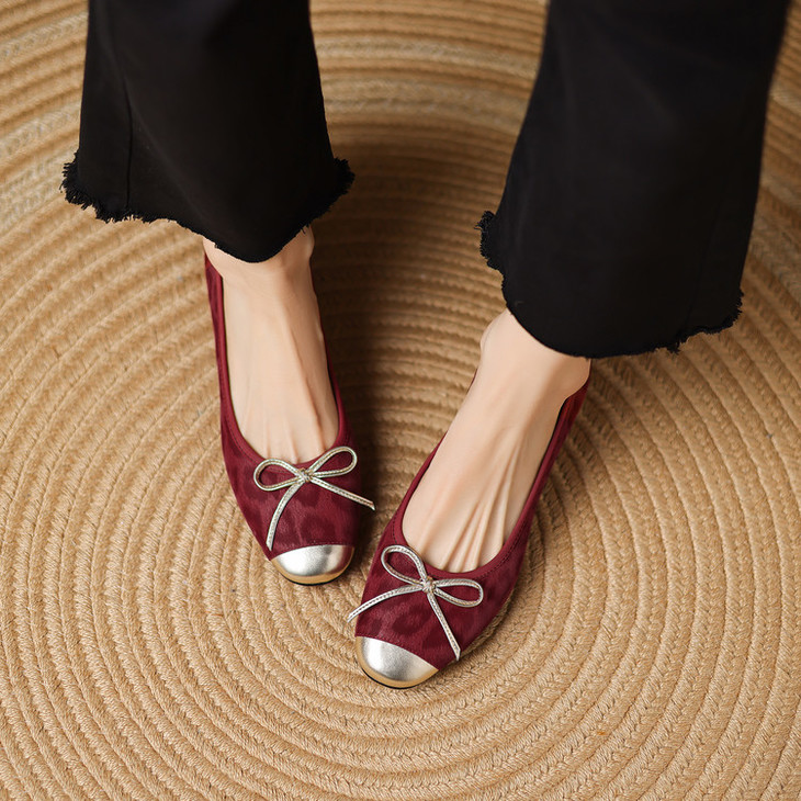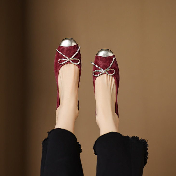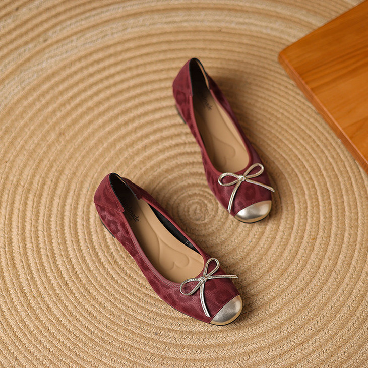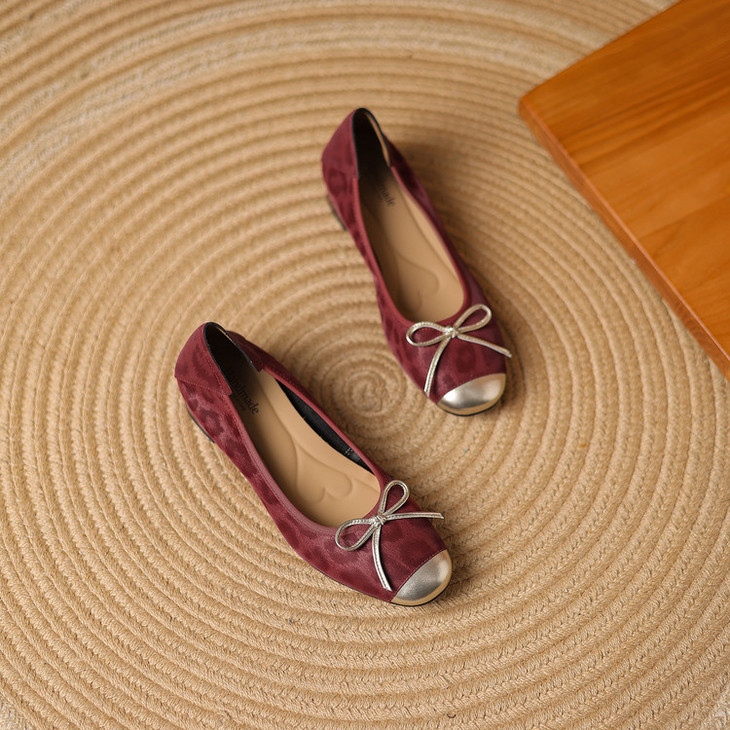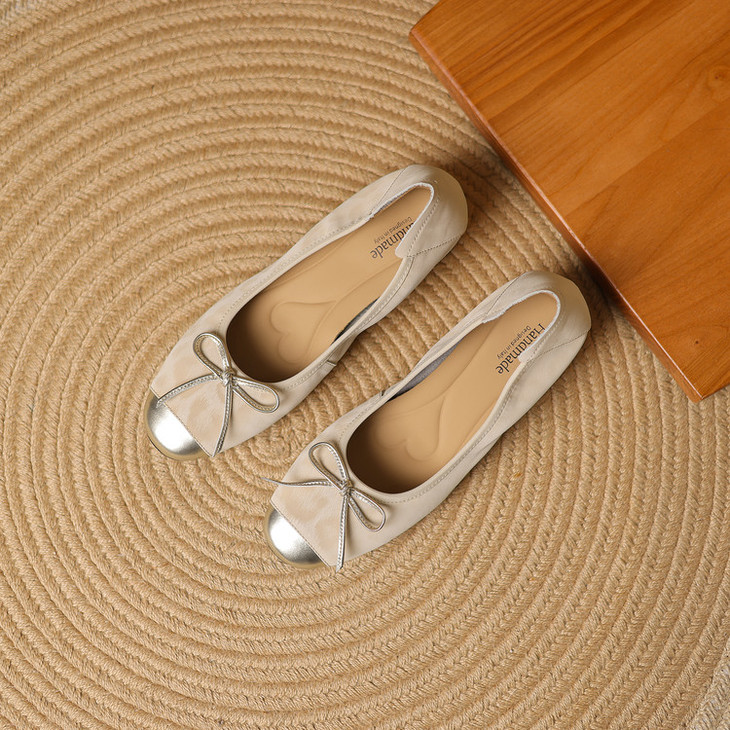 【预售5天】春季拼色真皮蝴蝶结软底女鞋法式复古国风粗跟单鞋女LD&7258