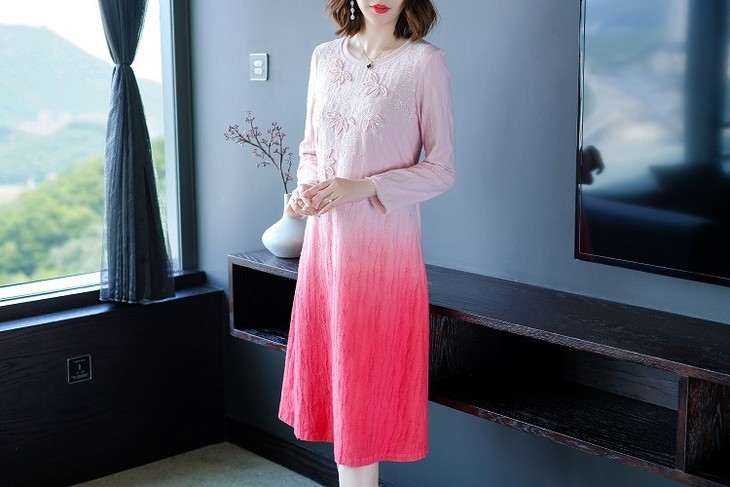 【碧空如洗】韩国水晶麻,渐变色刺绣连衣裙TQ-6347