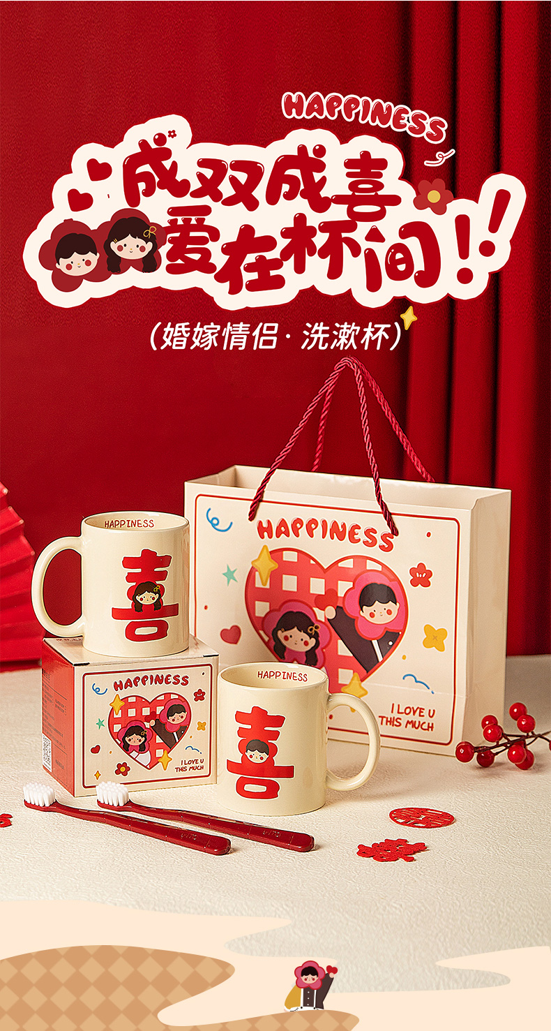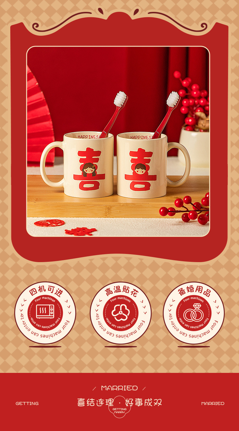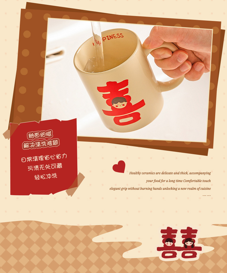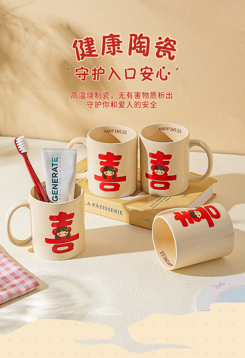 摩登主妇漱口杯家用情侣一对陶瓷洗漱杯套装新婚礼物结婚陪嫁送礼