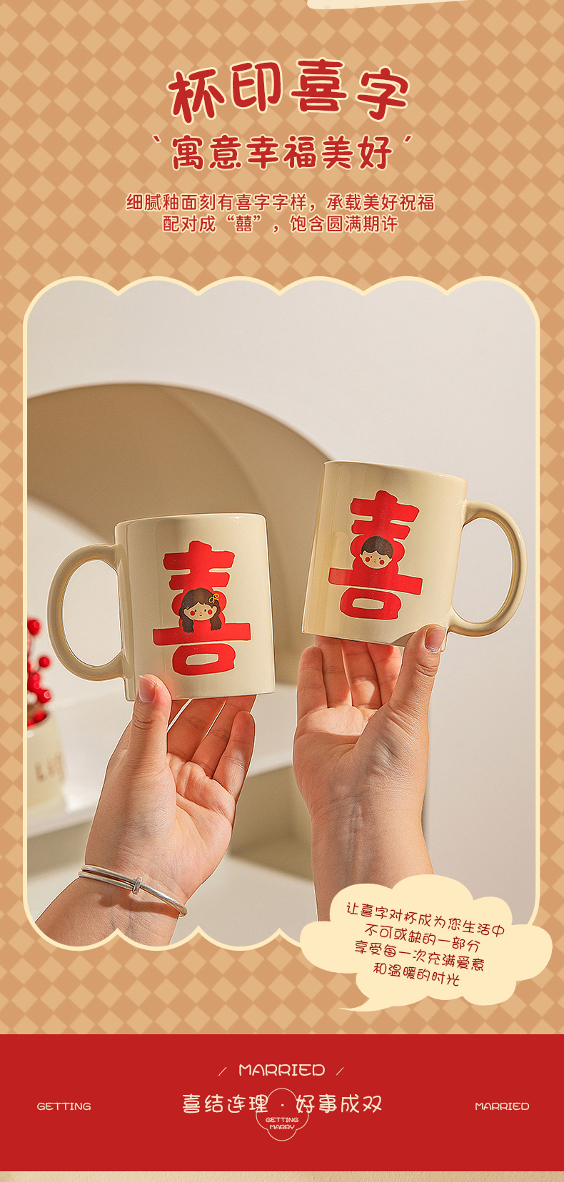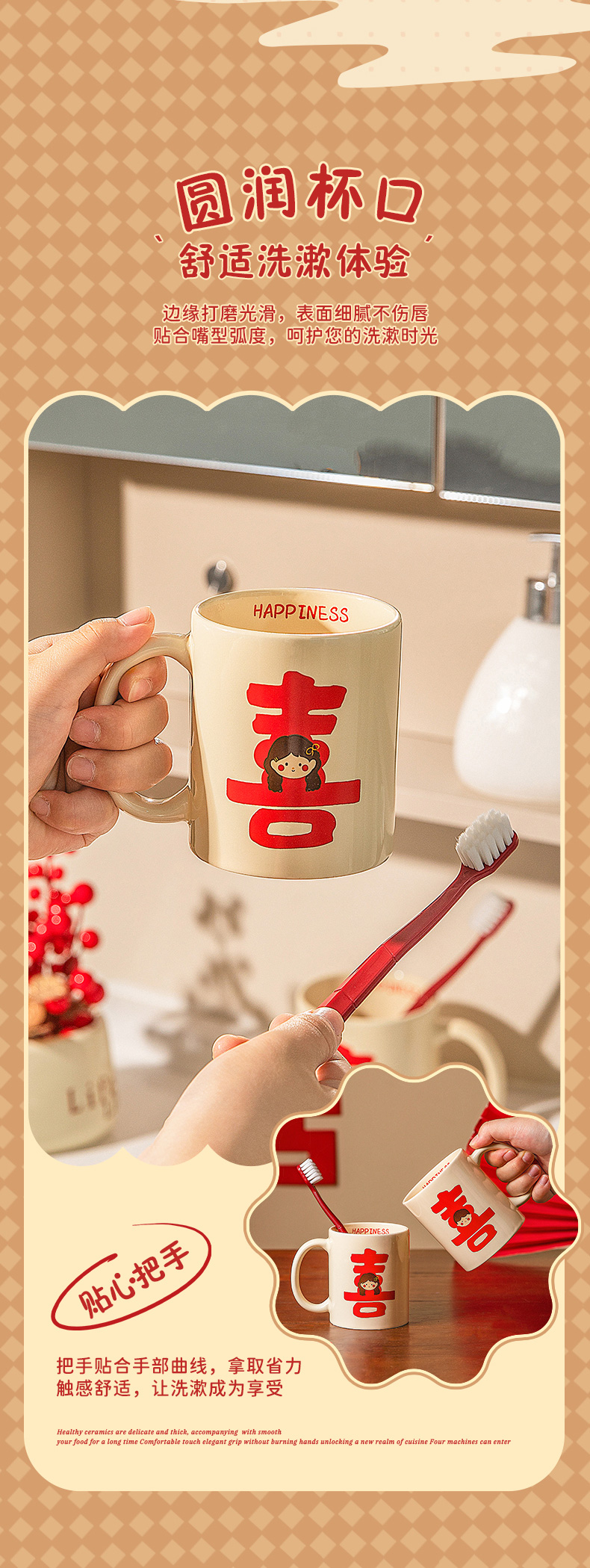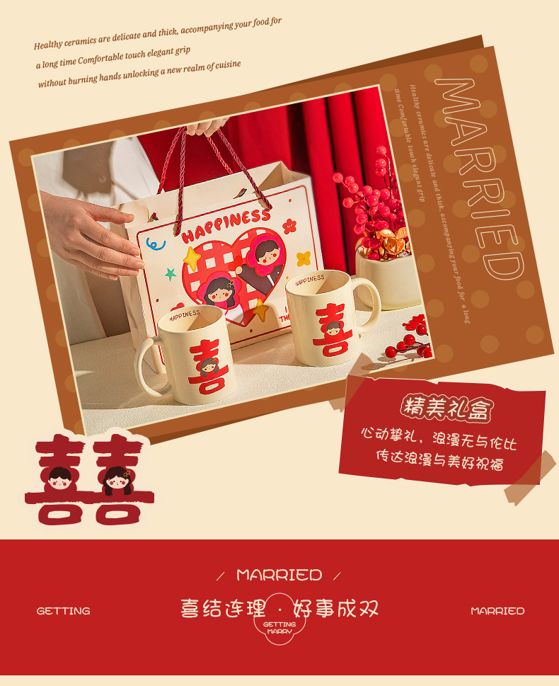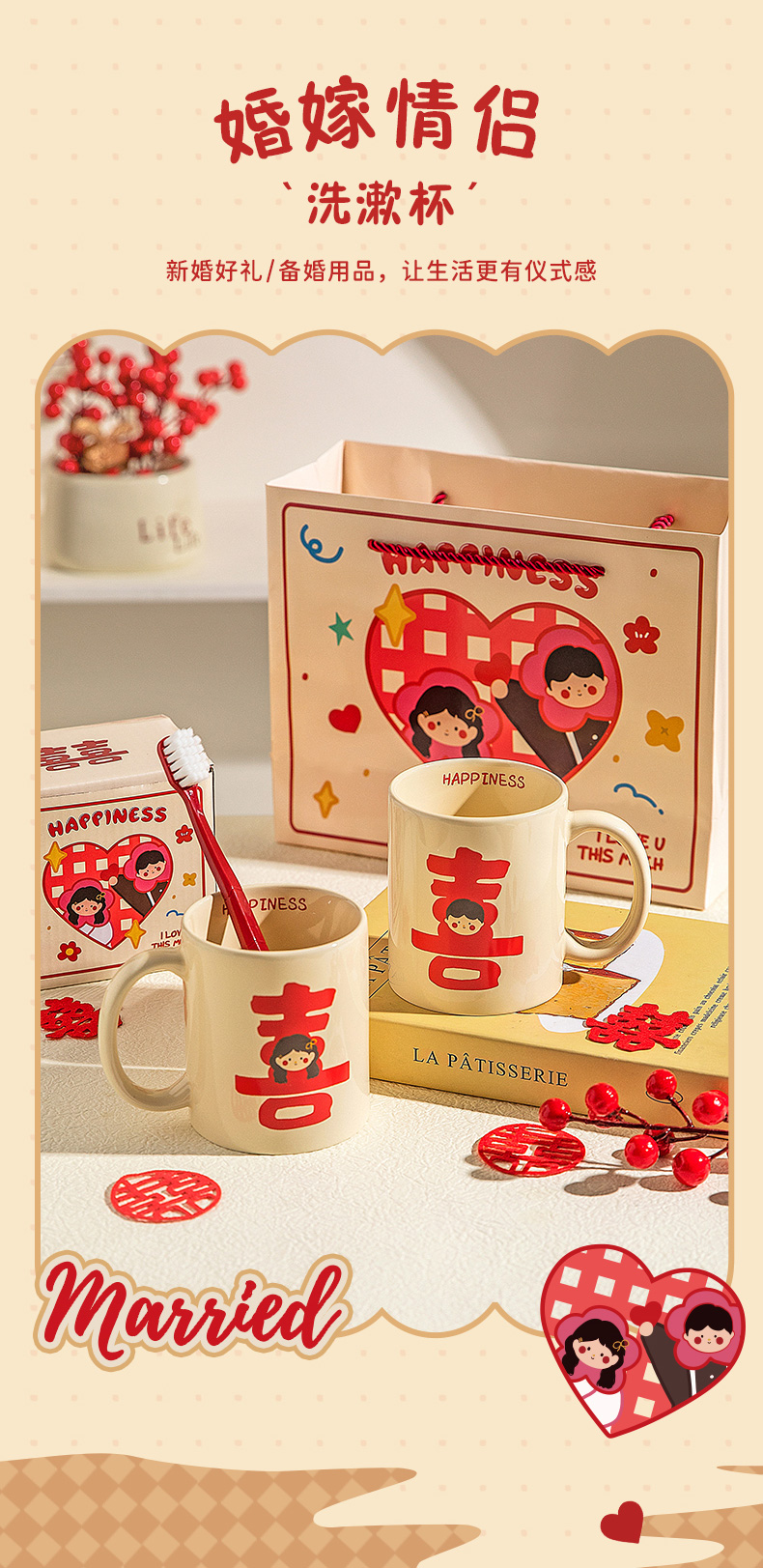 摩登主妇漱口杯家用情侣一对陶瓷洗漱杯套装新婚礼物结婚陪嫁送礼