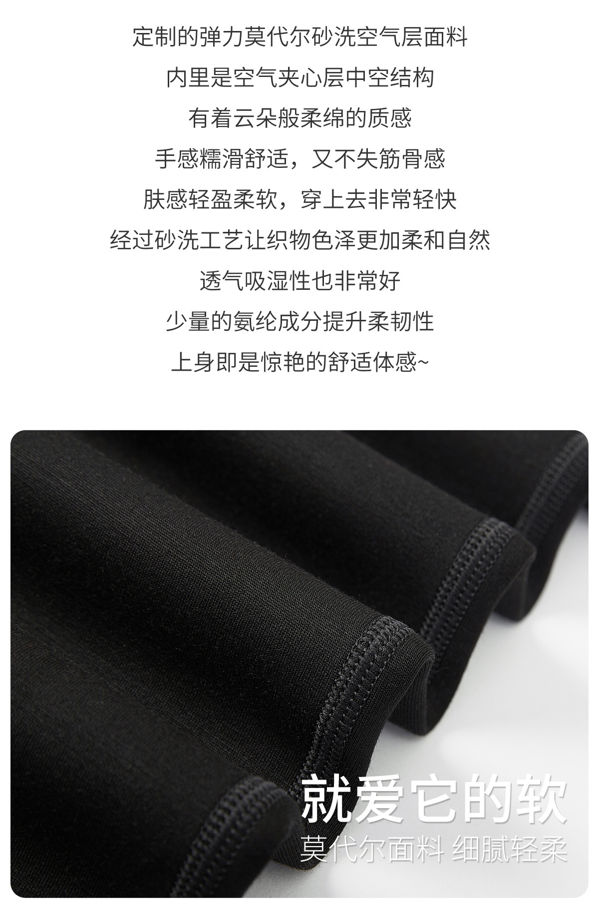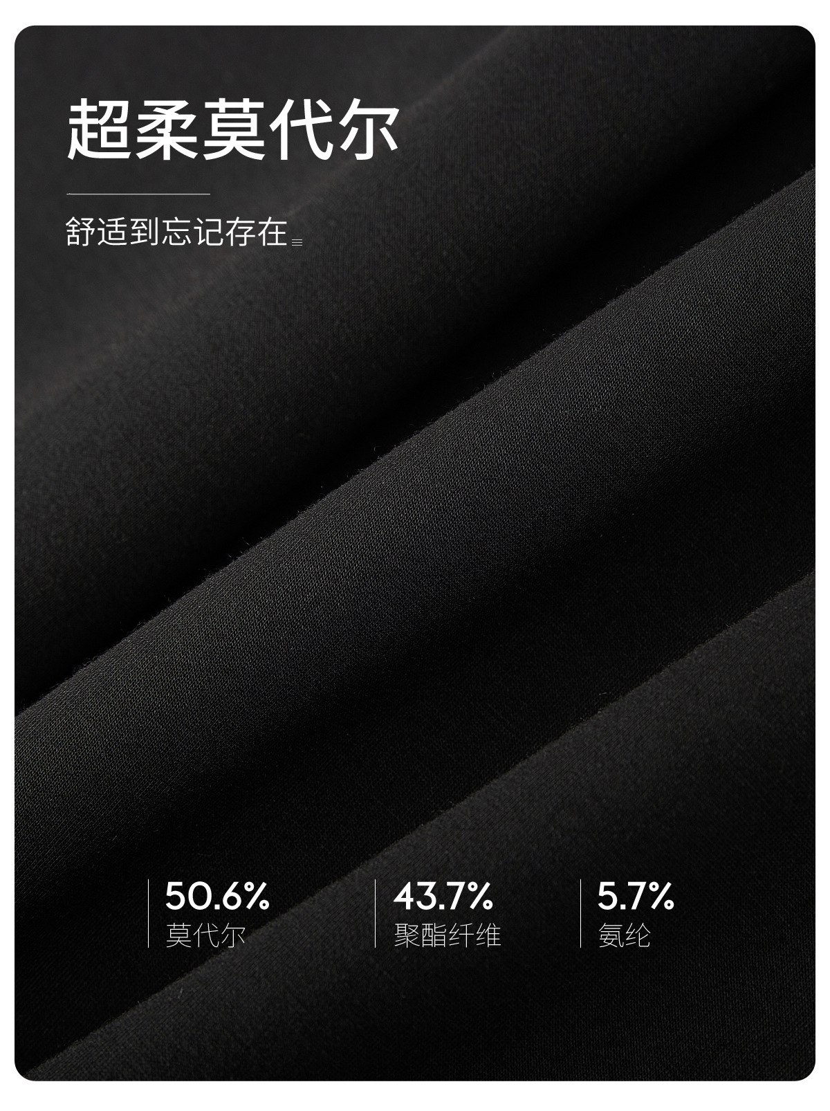 面料:莫代尔50.6%,聚酯纤维43.7%,氨纶5.7%