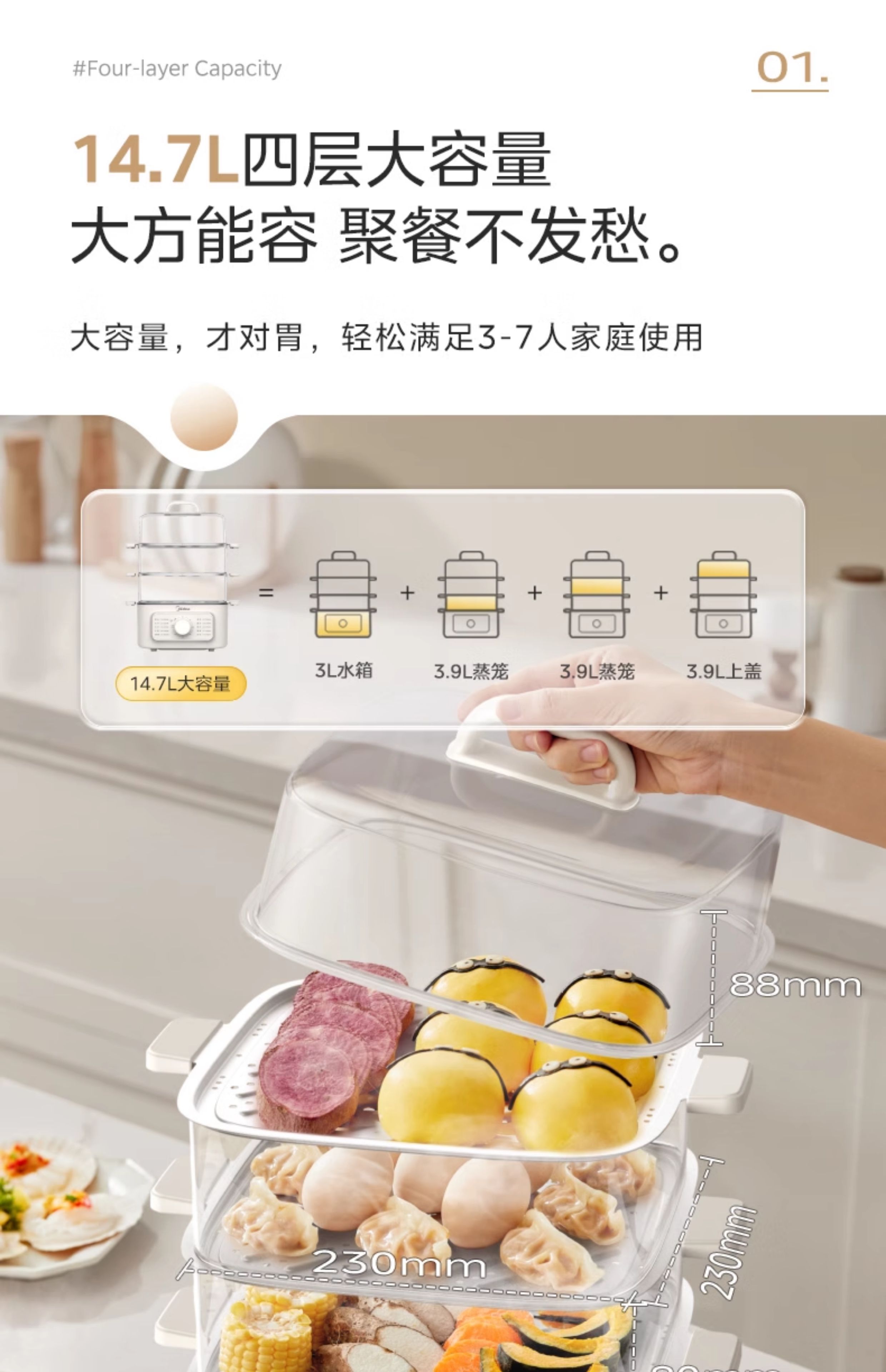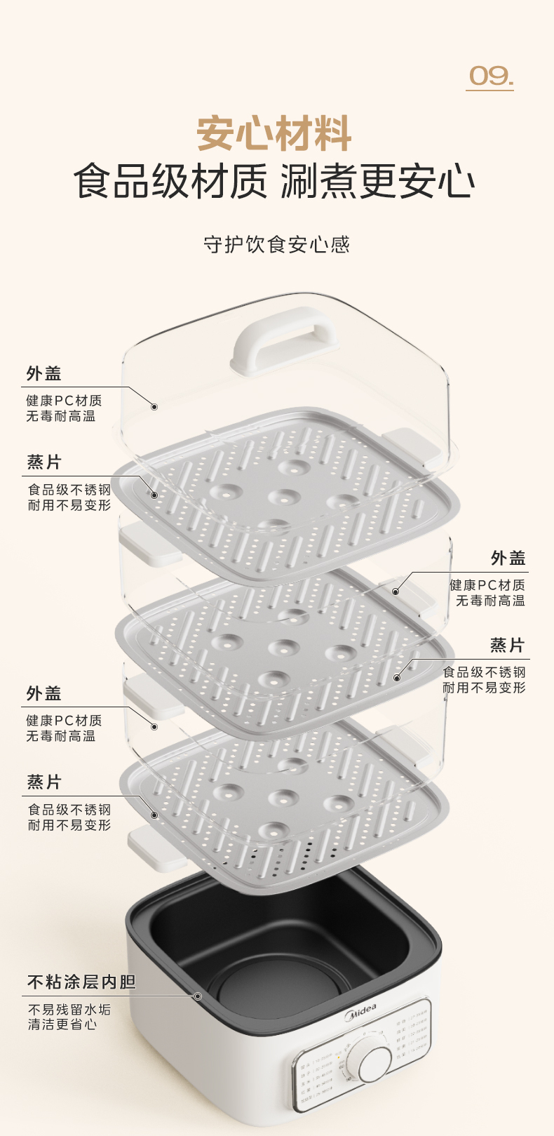 【美的 MZ-ZGE2323Z03X电蒸锅】14.7升炖蒸煮一体蒸箱电煮锅电火锅家用多功能锅