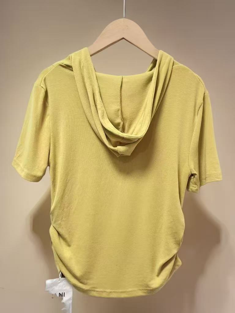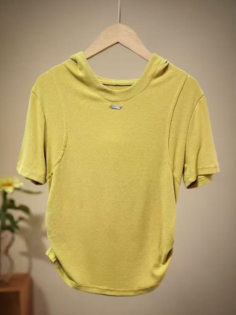 【孤品捡漏】G50浅黄连帽莫代尔短袖T恤-喜出