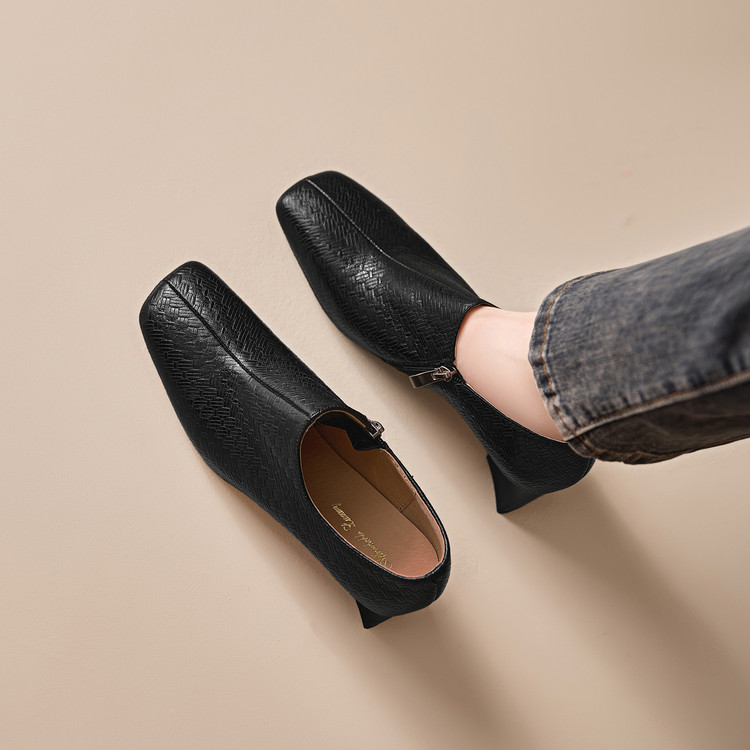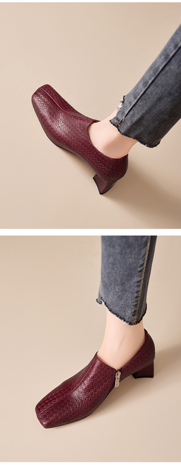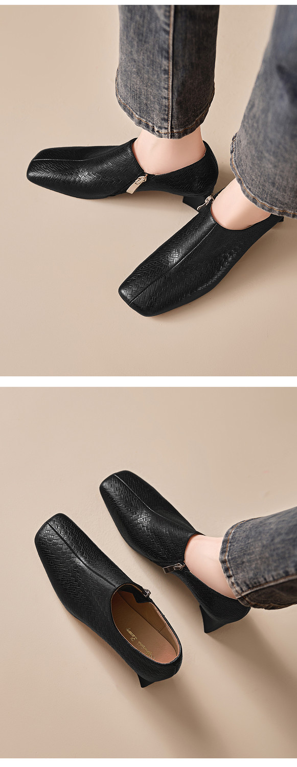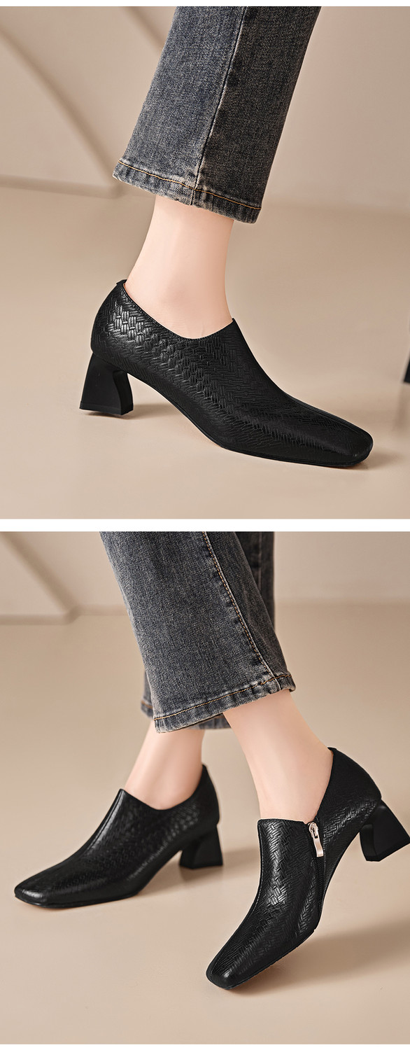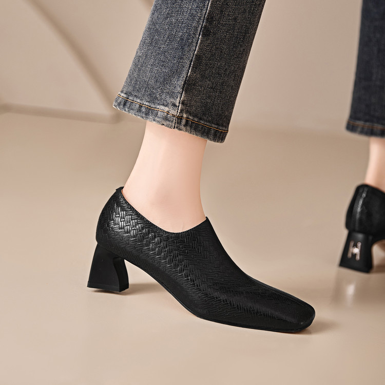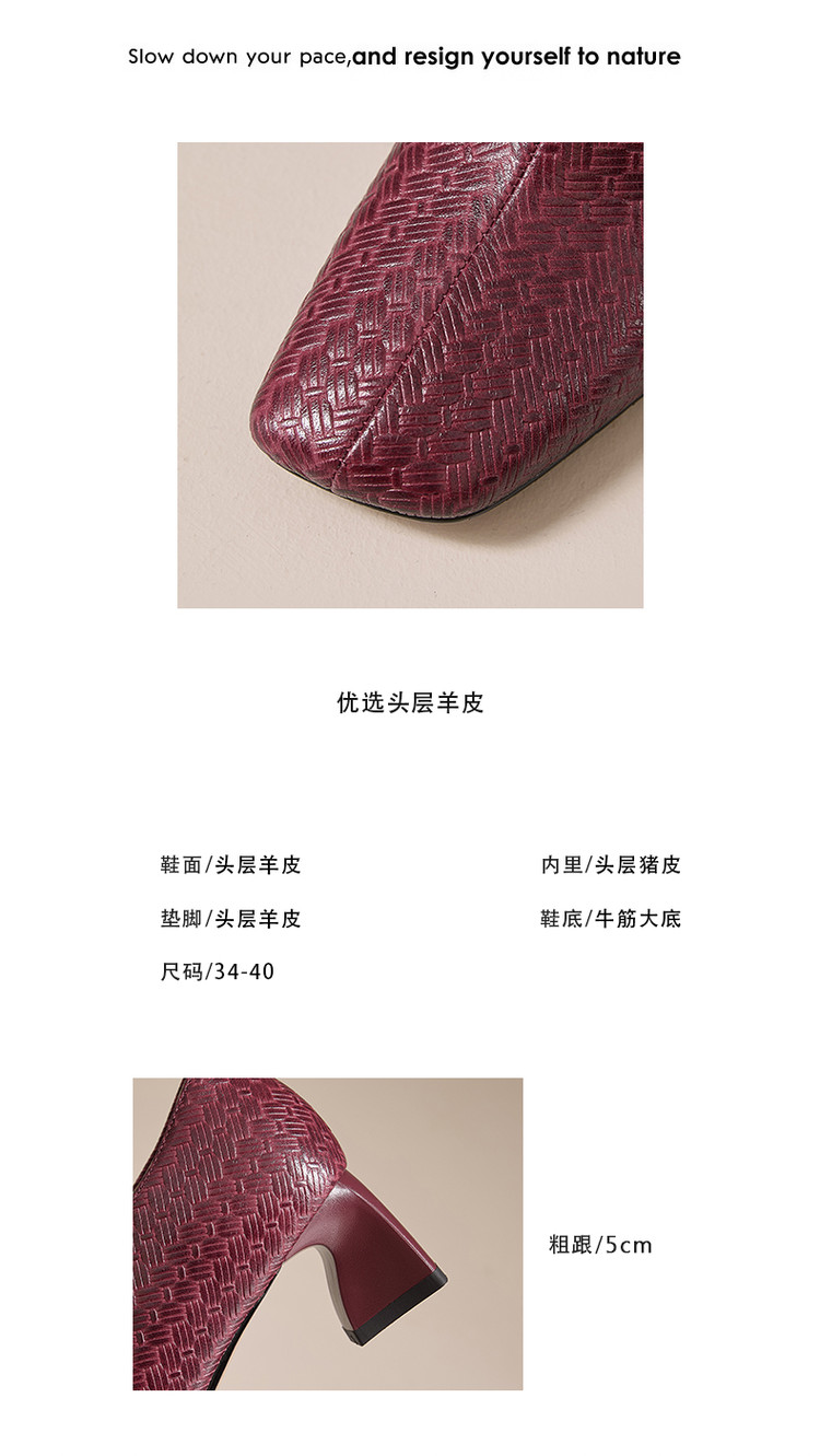 【预售5天】巨好穿法式深口单鞋女春秋方头中跟粗跟真皮高跟鞋乐福鞋及踝靴女MBJR&6948